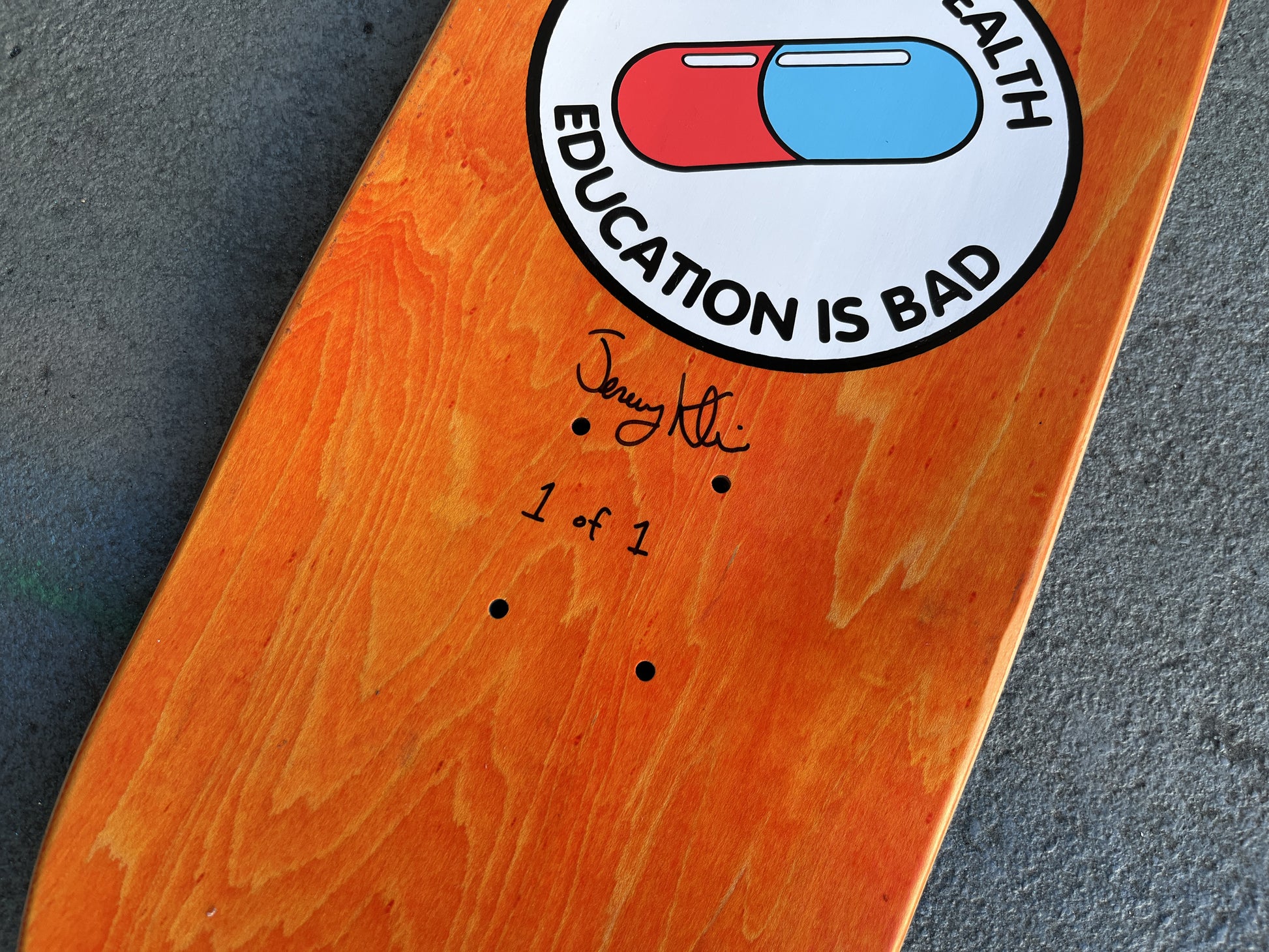 there is only one of these , hand spray painted health logo on bottom.