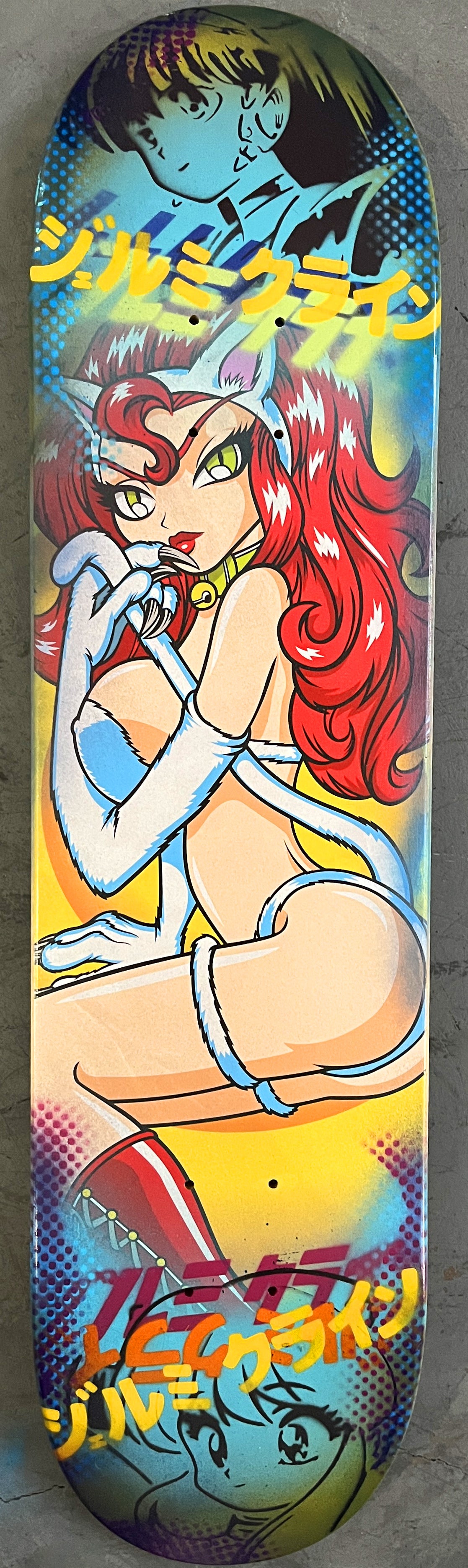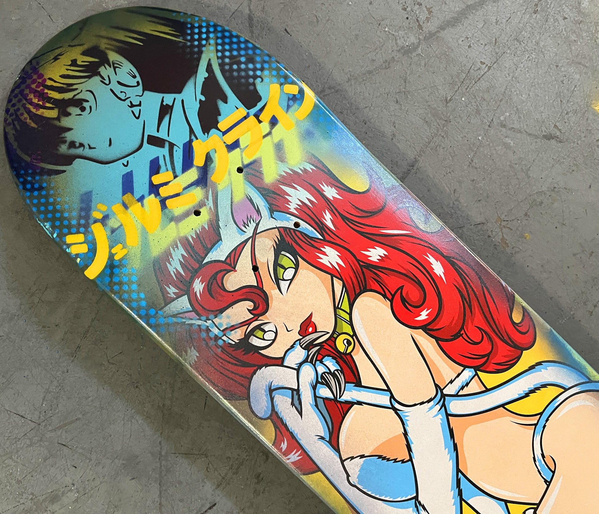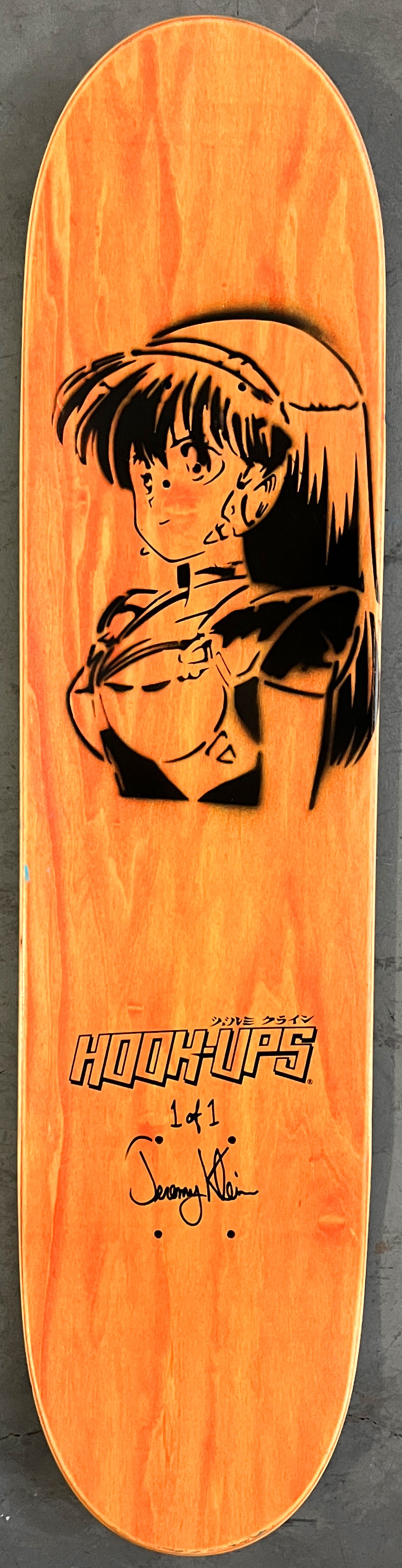 akiko III 7.88 X 31.75 BLUE/PURPLE MIXED PROCESS SIGNED 1 of 1, heat transfer with hand spray paint, and signed on top. 1 of 1