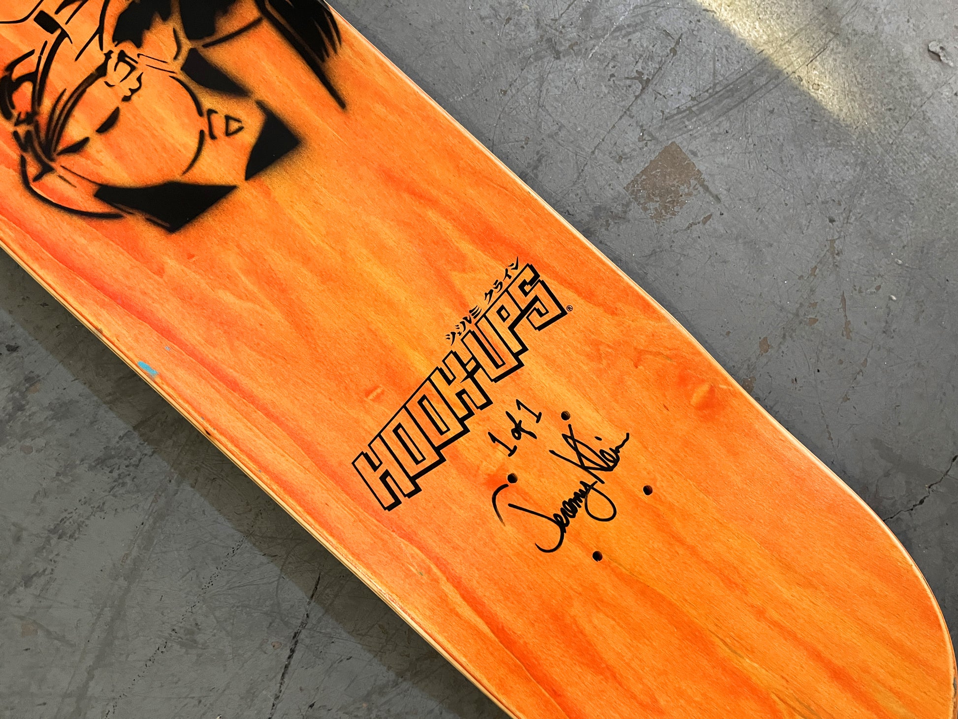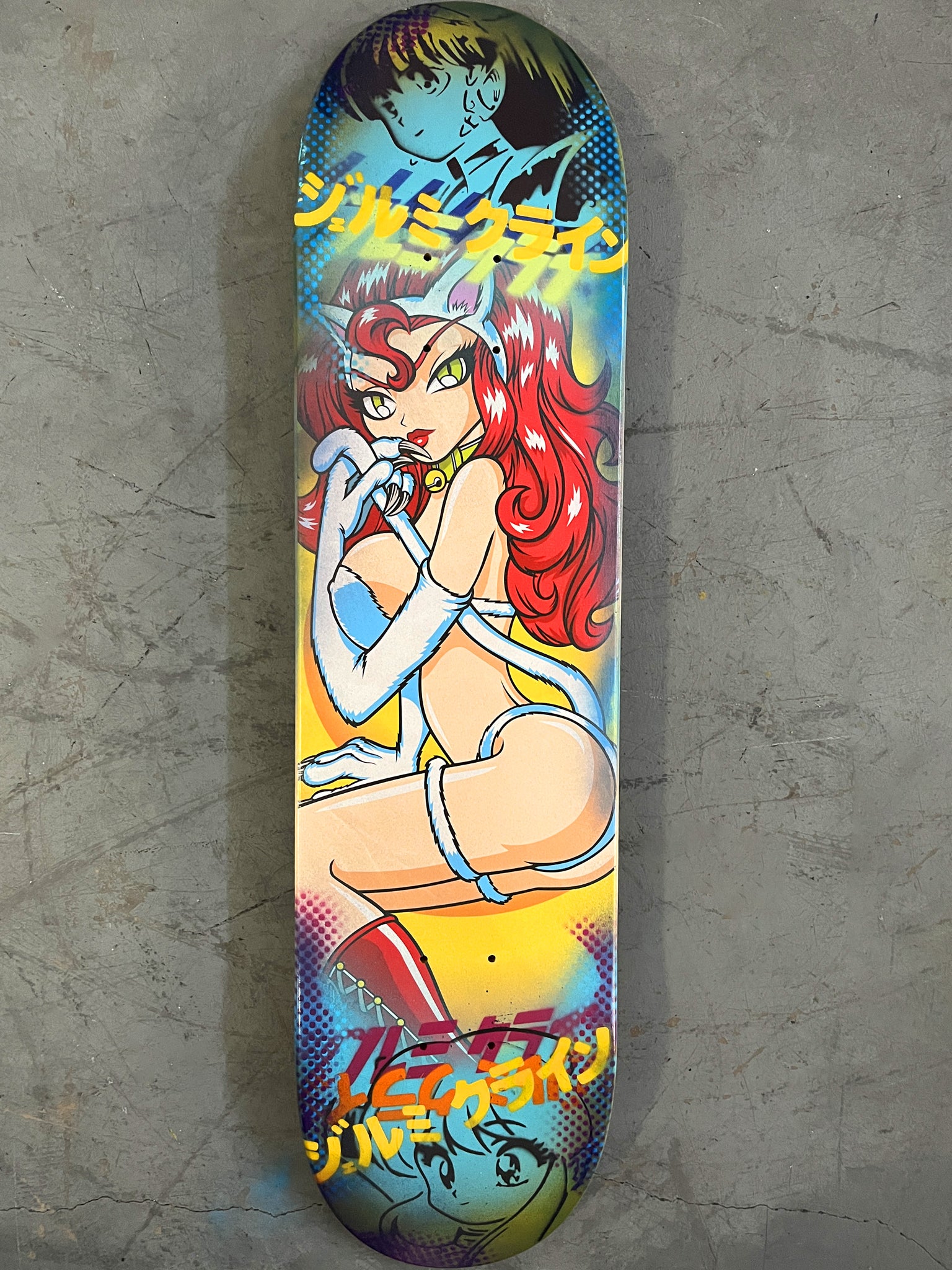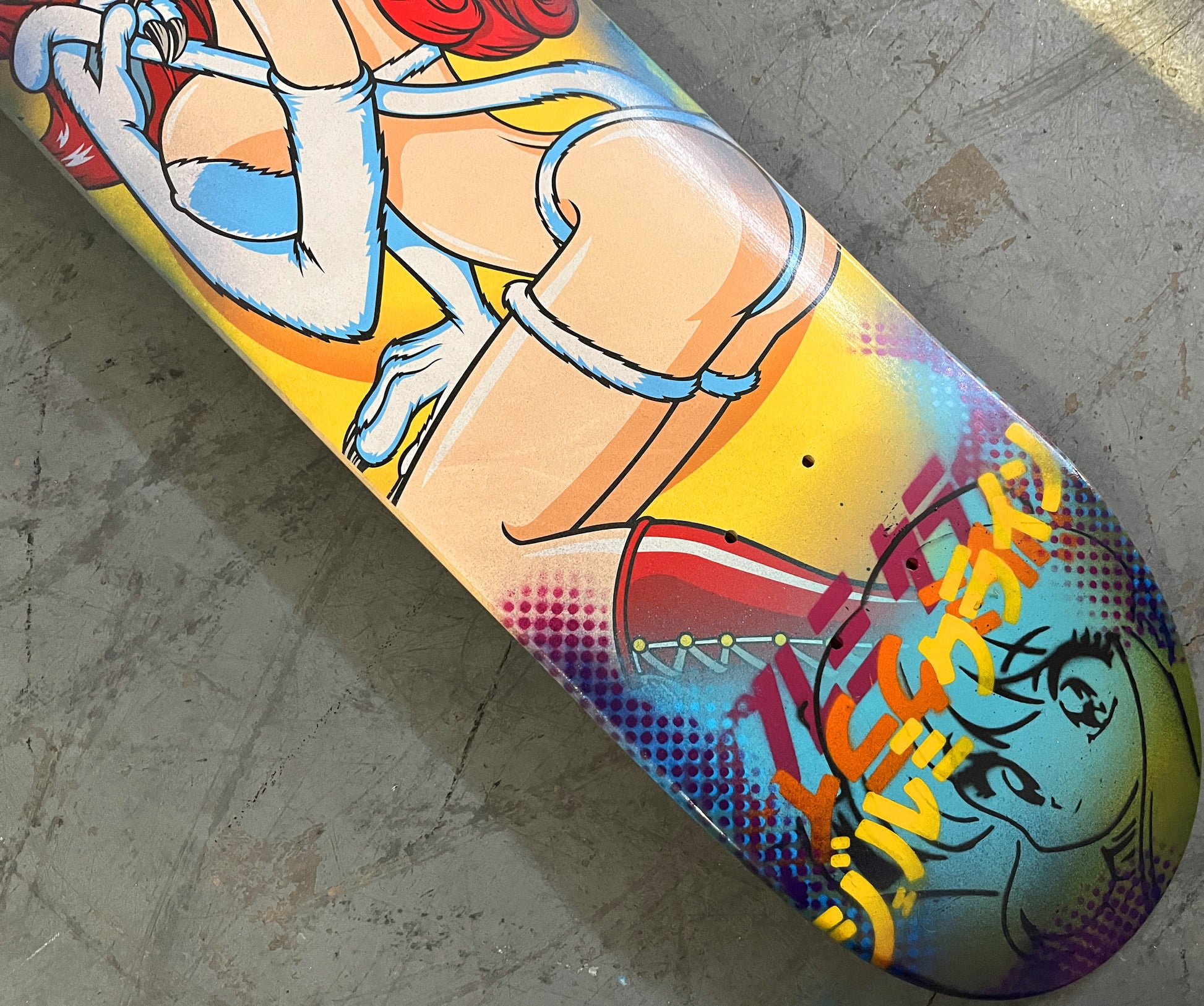 akiko III 7.88 X 31.75 BLUE/PURPLE MIXED PROCESS SIGNED 1 of 1, heat transfer with hand spray paint, and signed on top. 1 of 1
