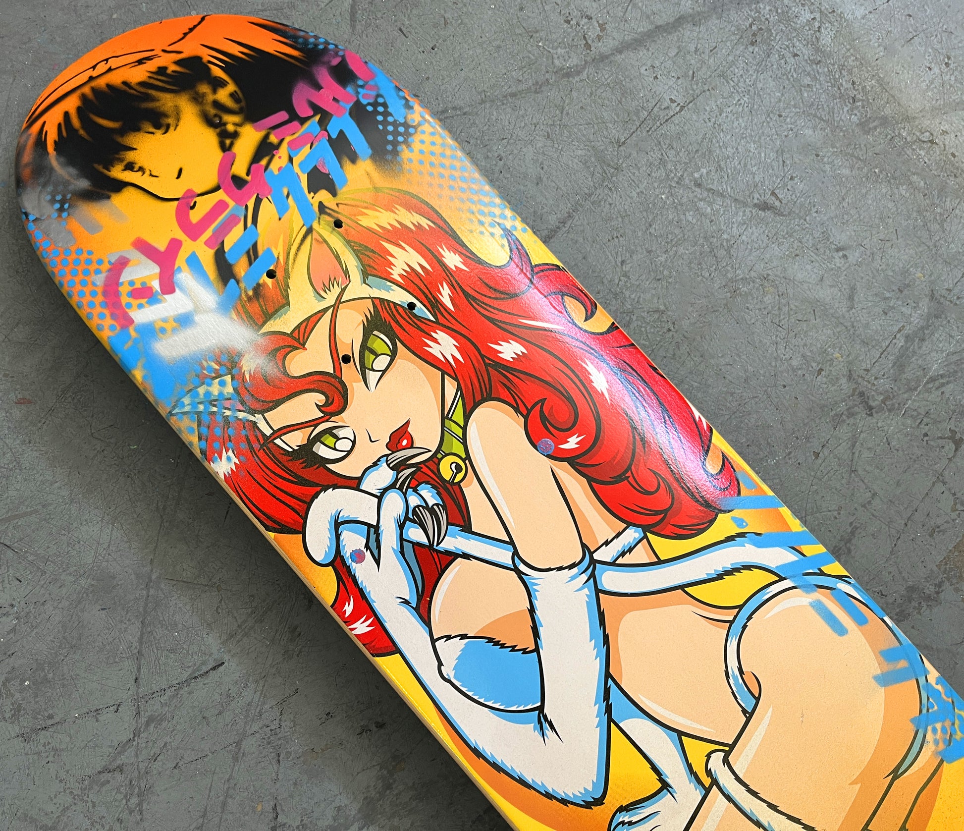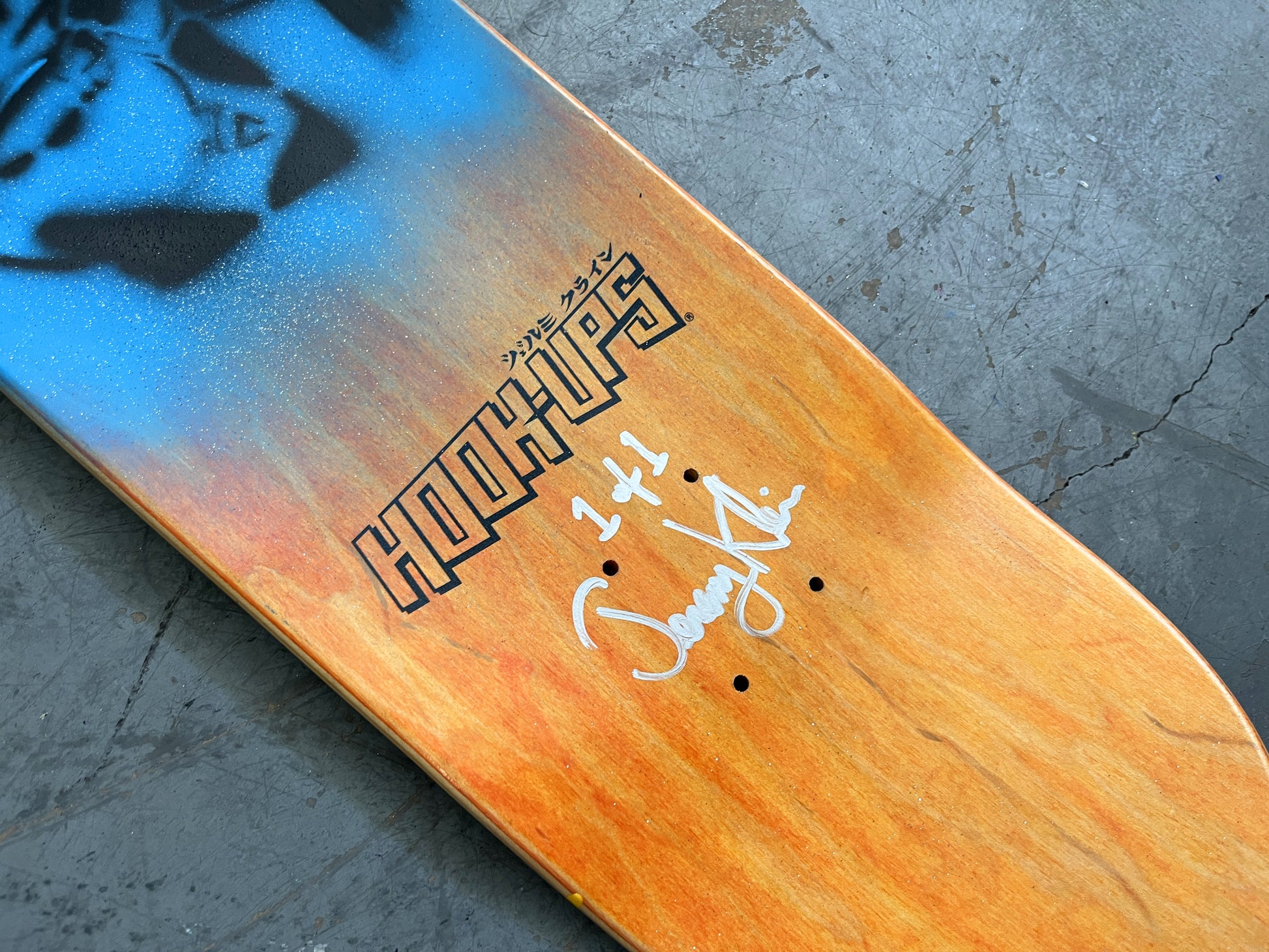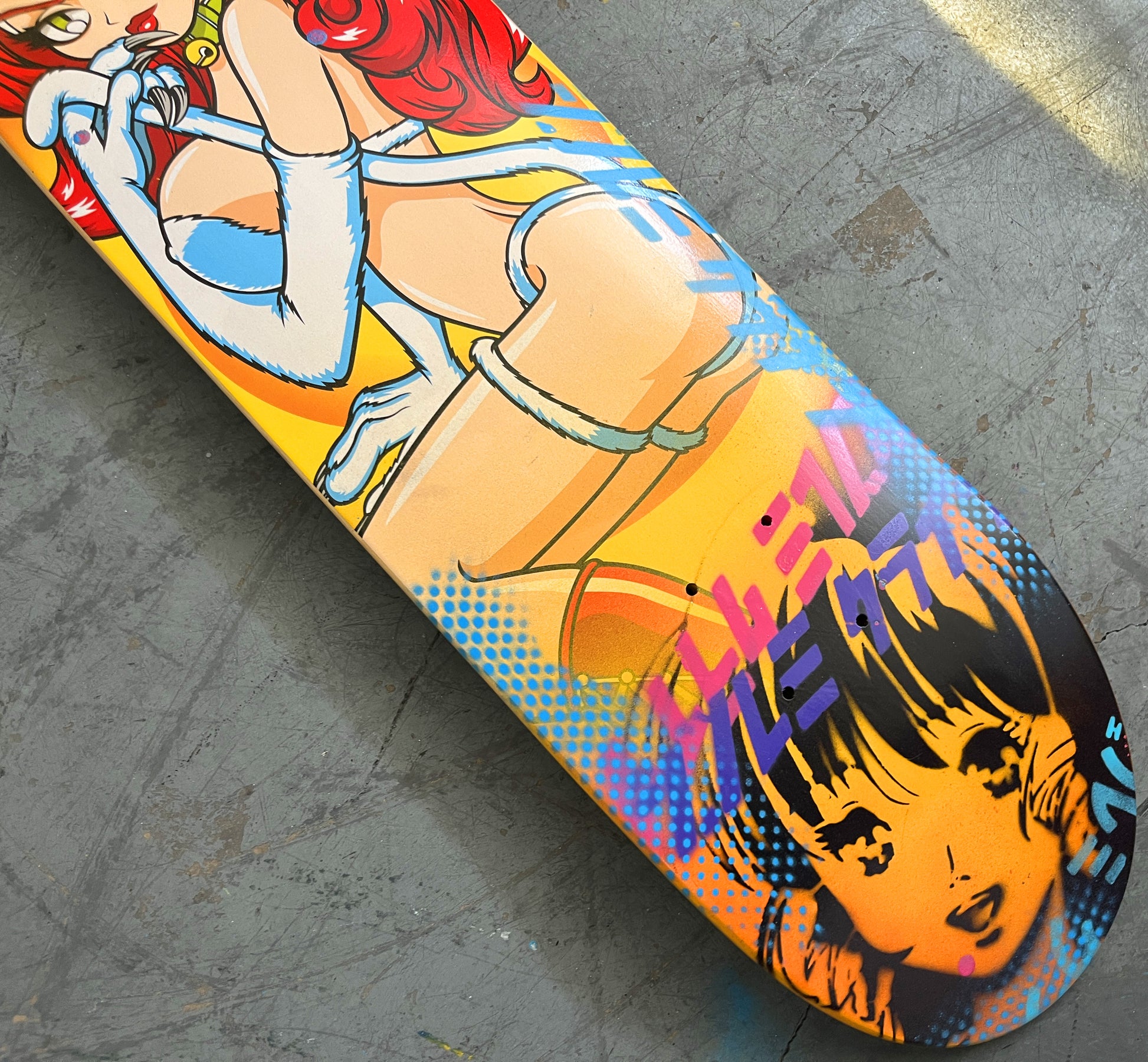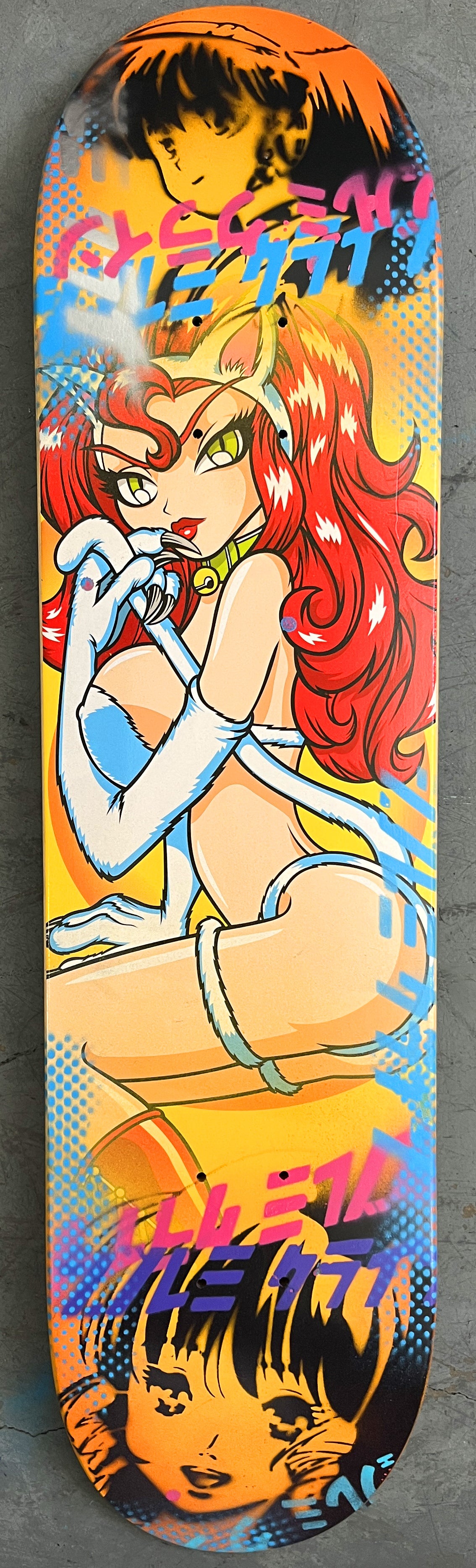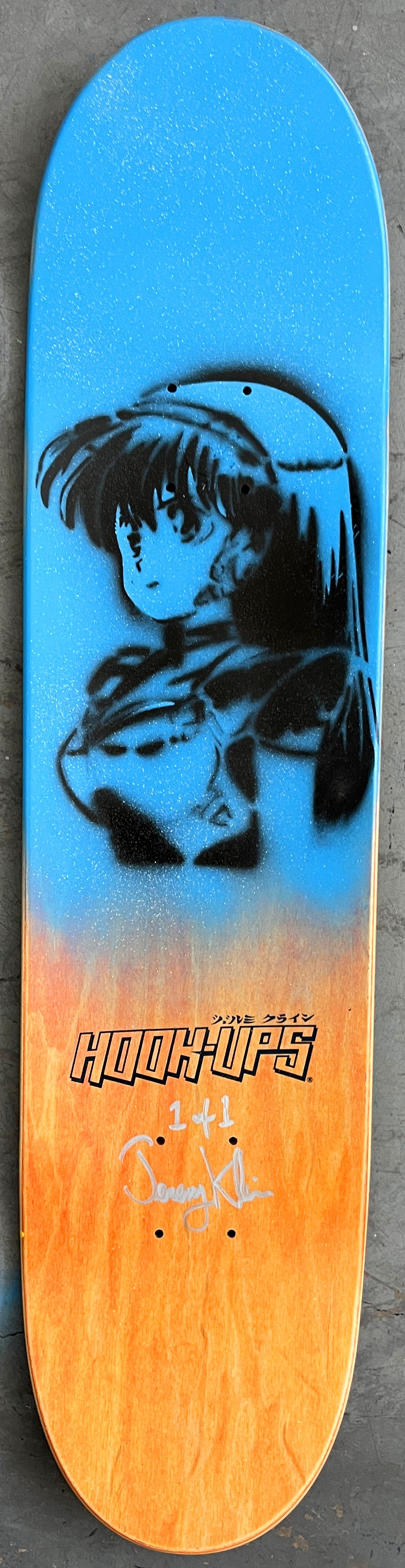 akiko III 7.88 X 31.75 YELLOW/ORANGE MIXED PROCESS SIGNED 1 of 1, heat transfer with hand spray paint, and signed on top. 1 of 1