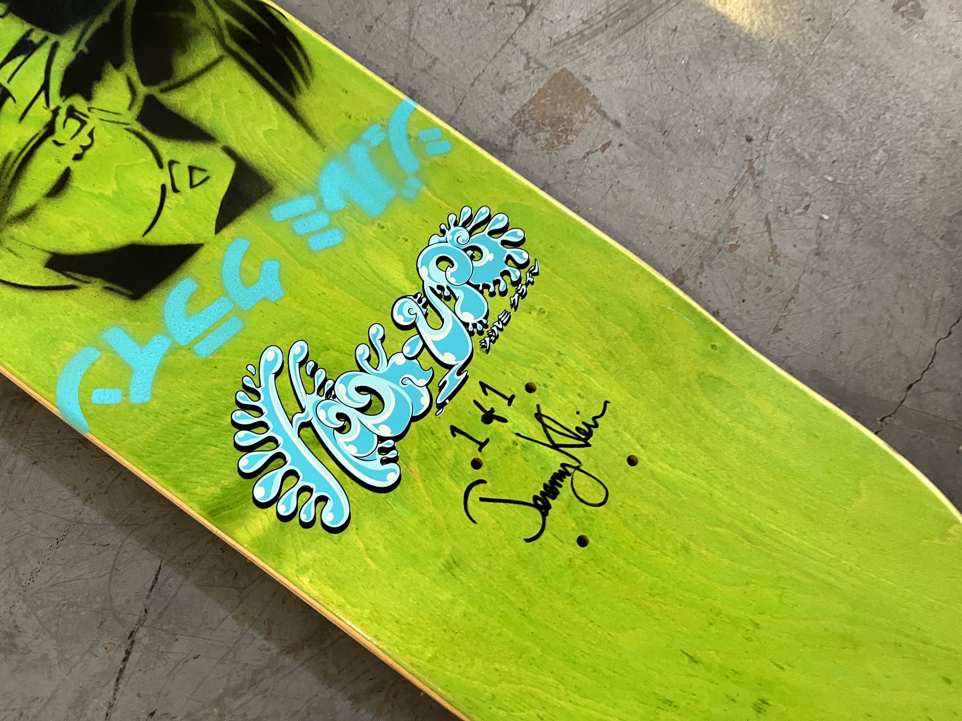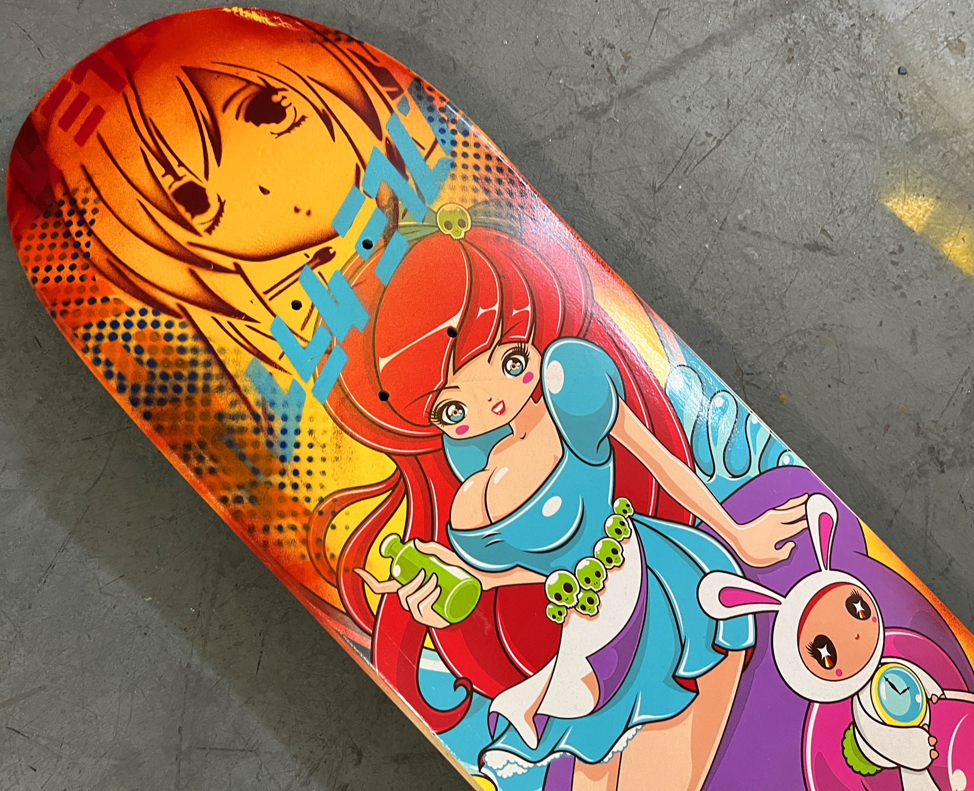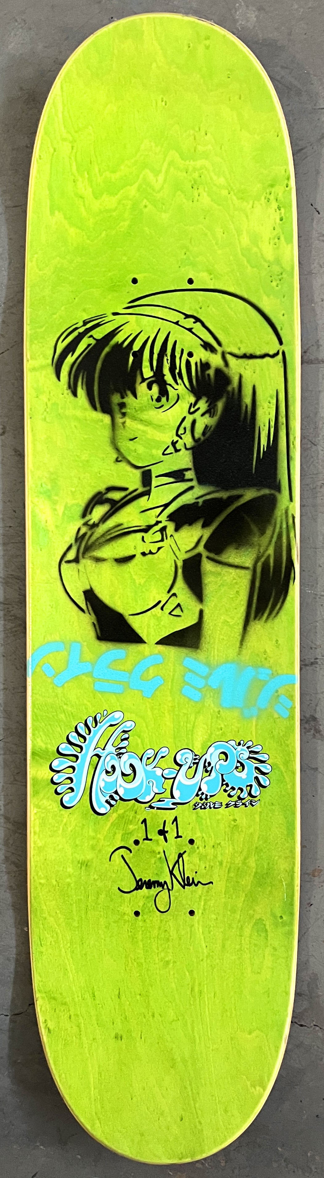 Alice 7.88 X 31.75 YELLOW/RED ANODIZED MIXED PROCESS SIGNED 1 of 1, heat transfer with hand spray paint, and signed on top. 1 of 1