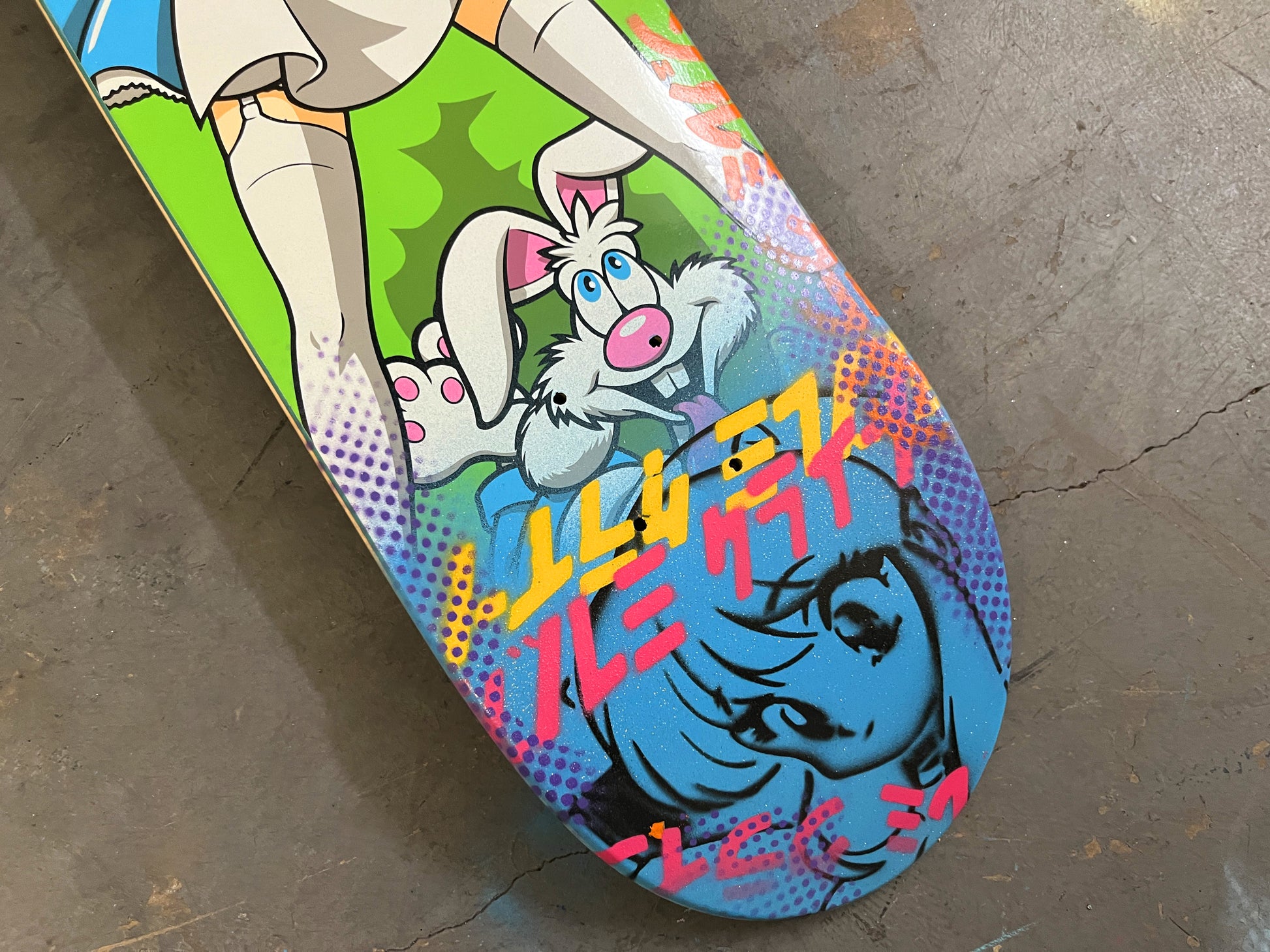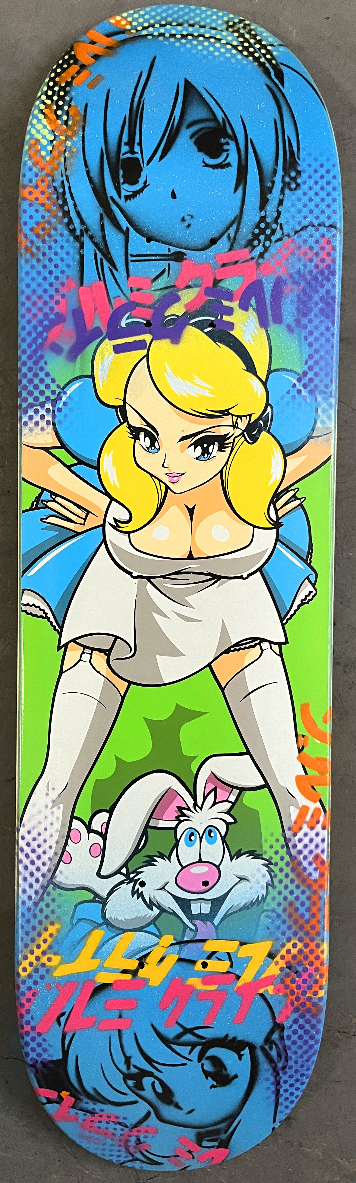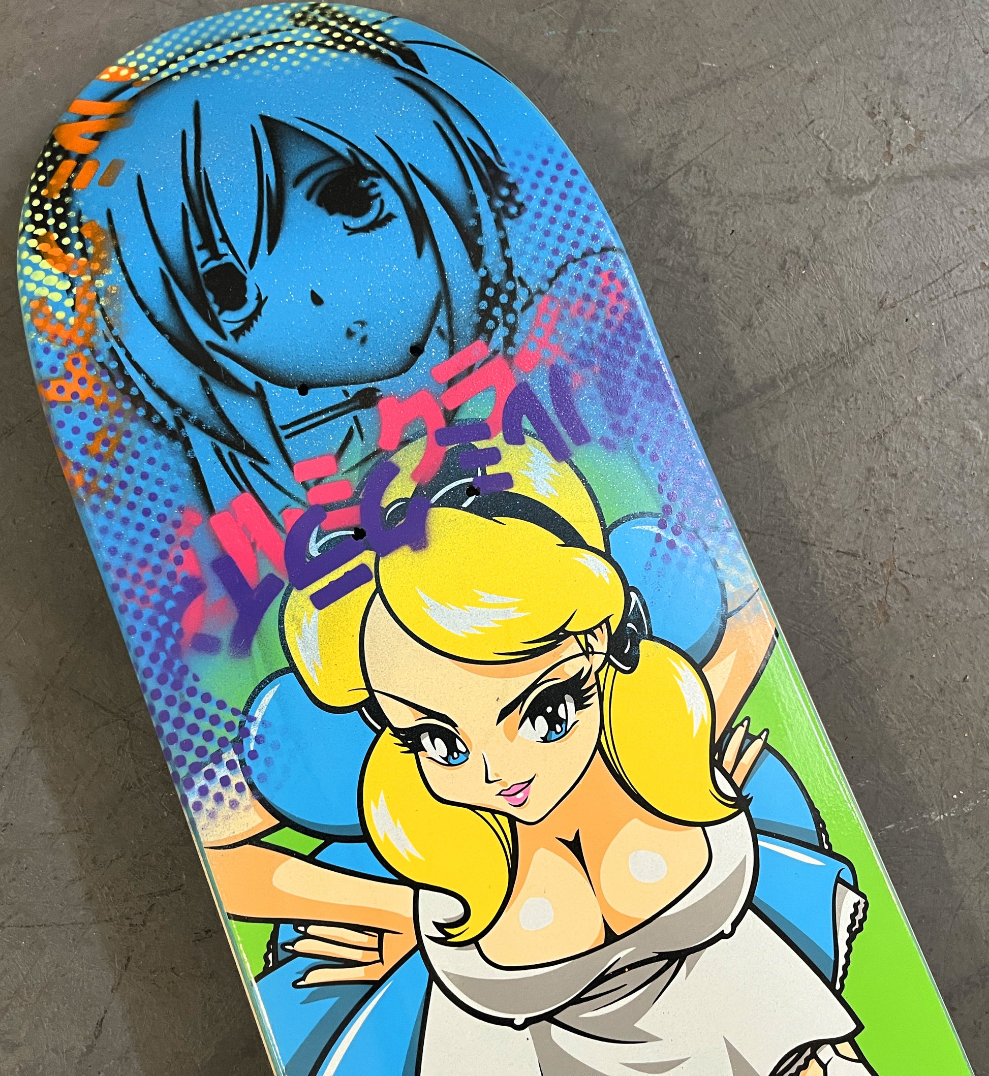 mai shiranui 8.25 X 32.25 ORANGE MIXED PROCESS SIGNED 1 of 1, heat transfer with hand spray paint, and signed on top. 1 of 1