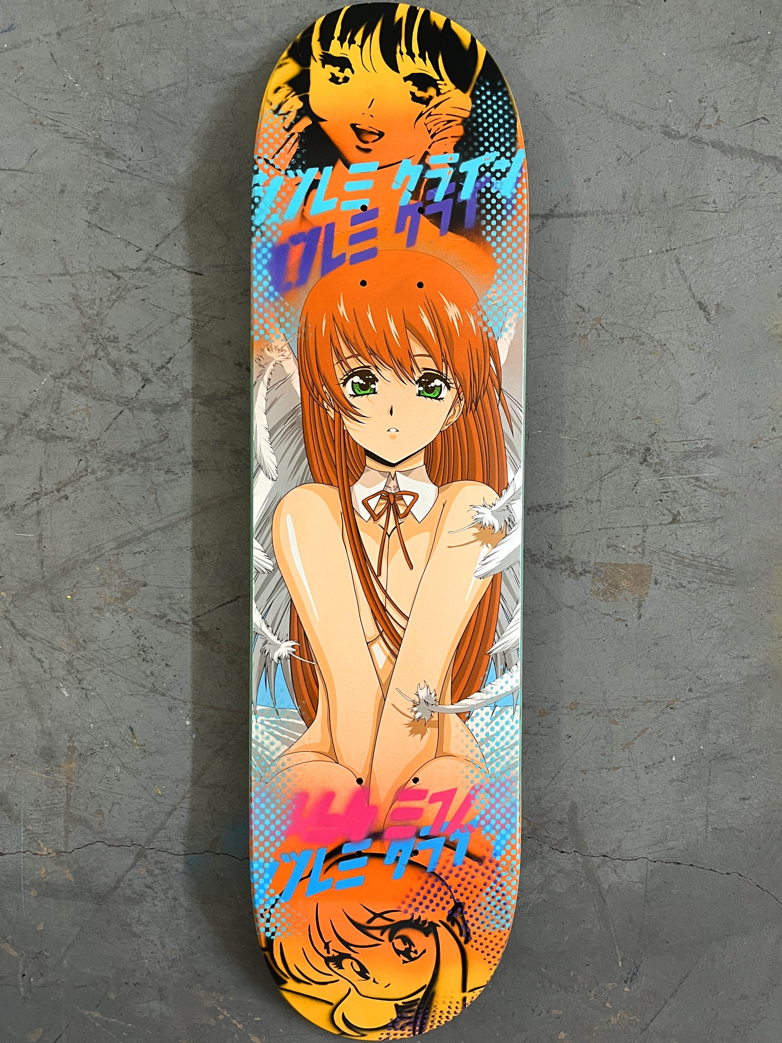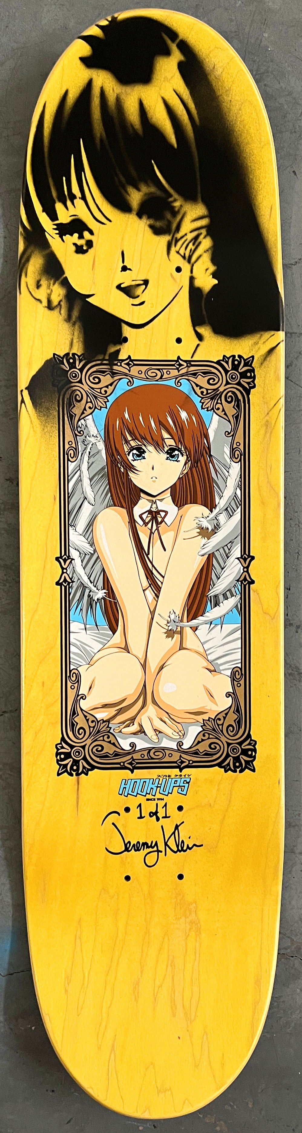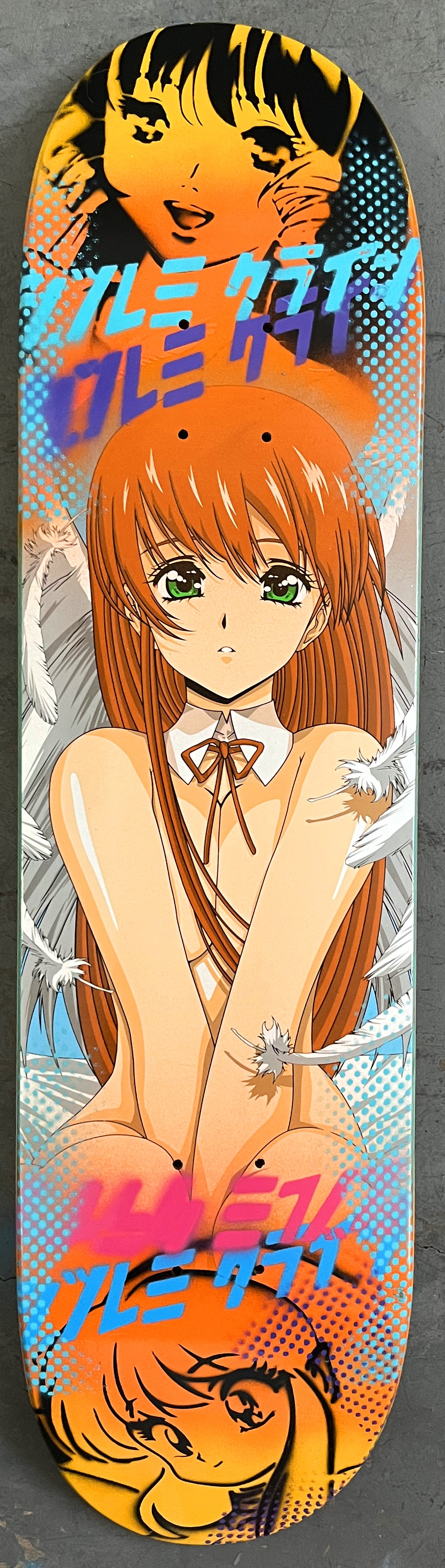 angel girl 8 X 31.75 YELLOW/ORANGE MIXED PROCESS SIGNED 1 of 1, heat transfer with hand spray paint, and signed on top. 1 of 1