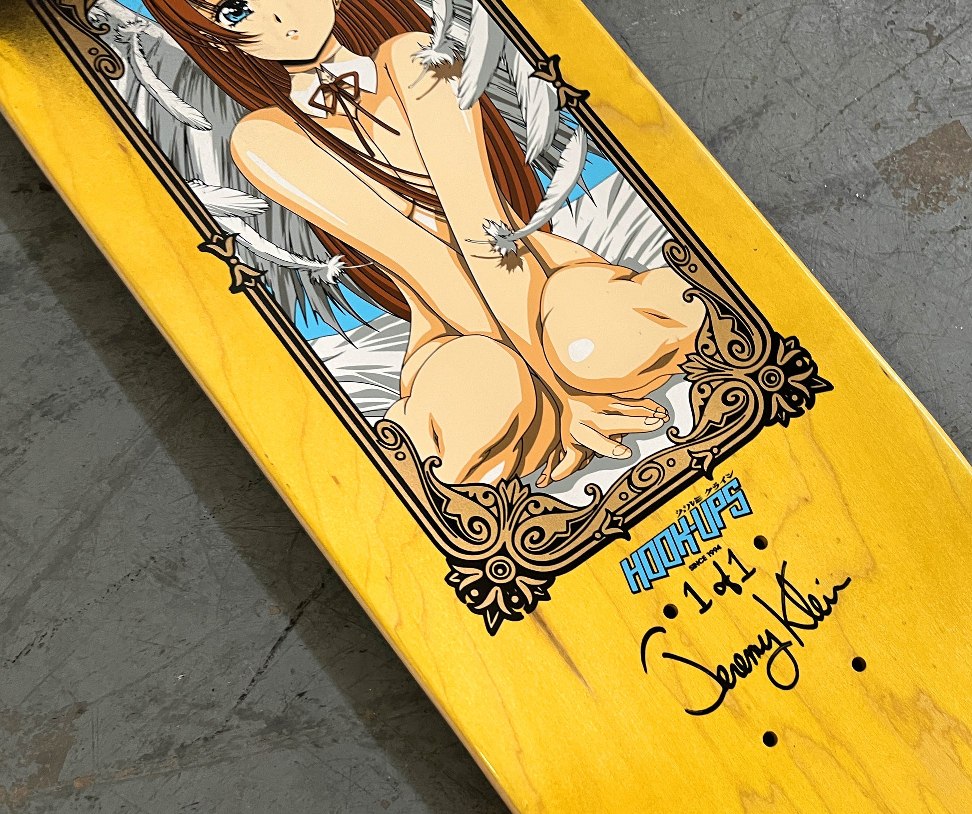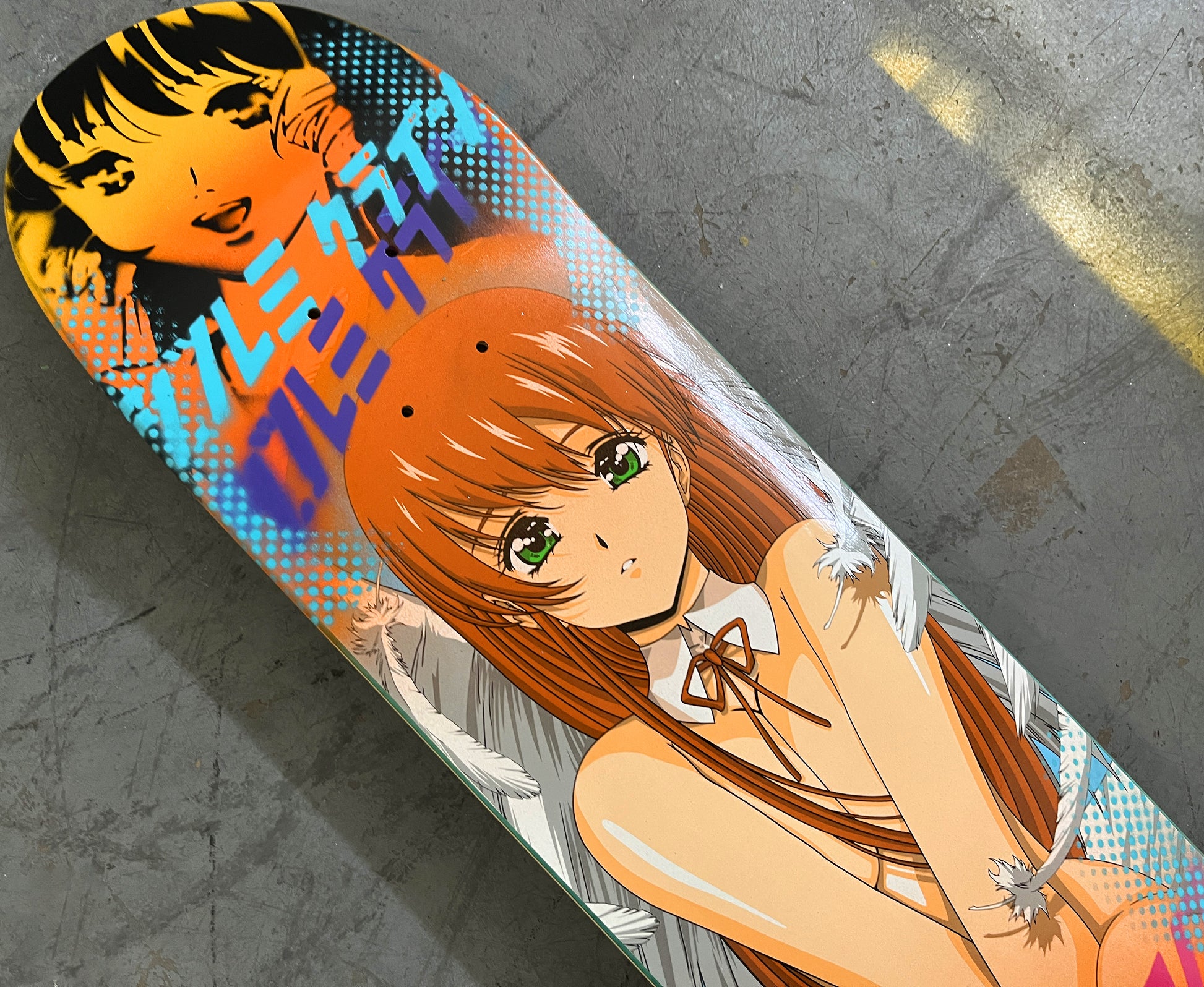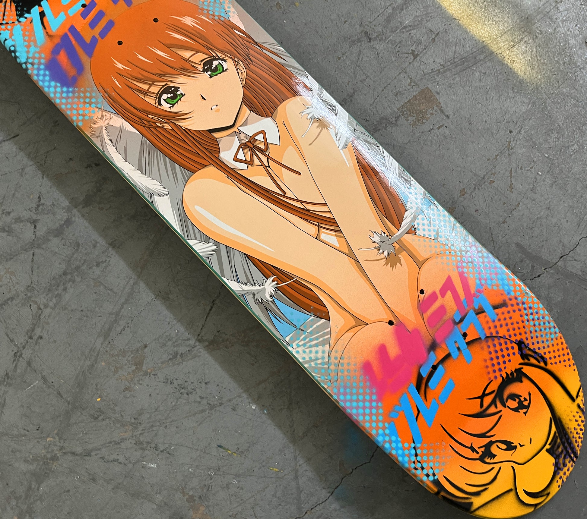 angel girl 8 X 31.75 YELLOW/ORANGE MIXED PROCESS SIGNED 1 of 1, heat transfer with hand spray paint, and signed on top. 1 of 1