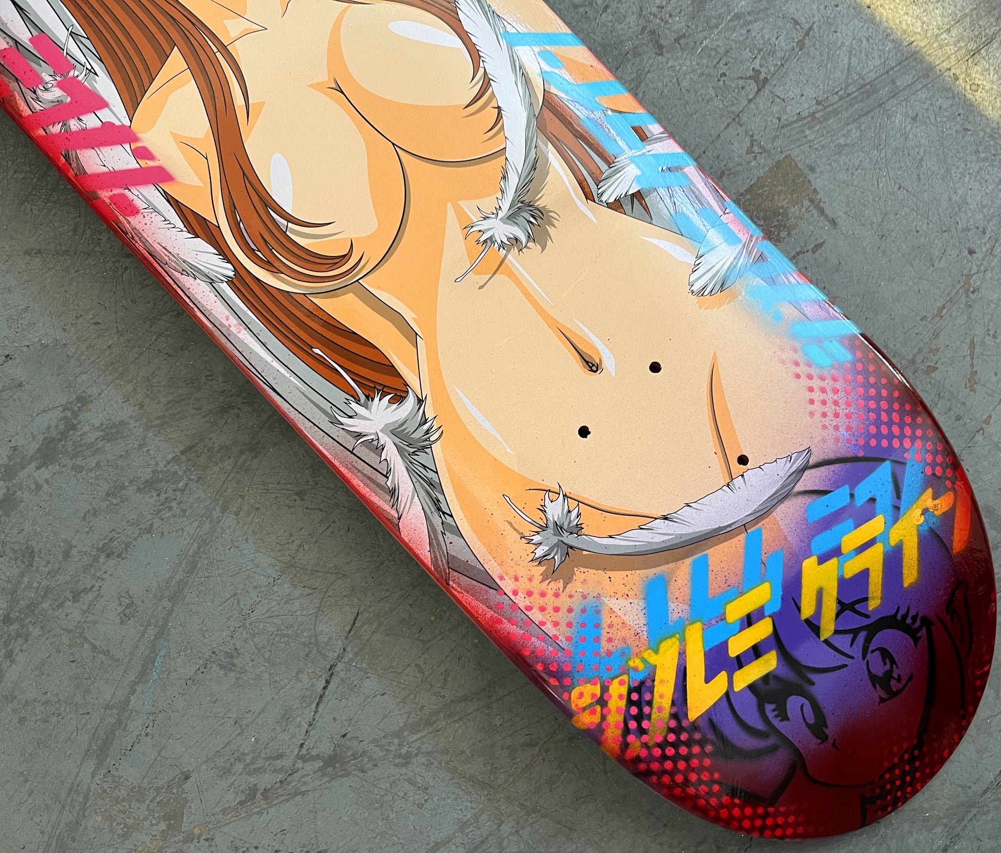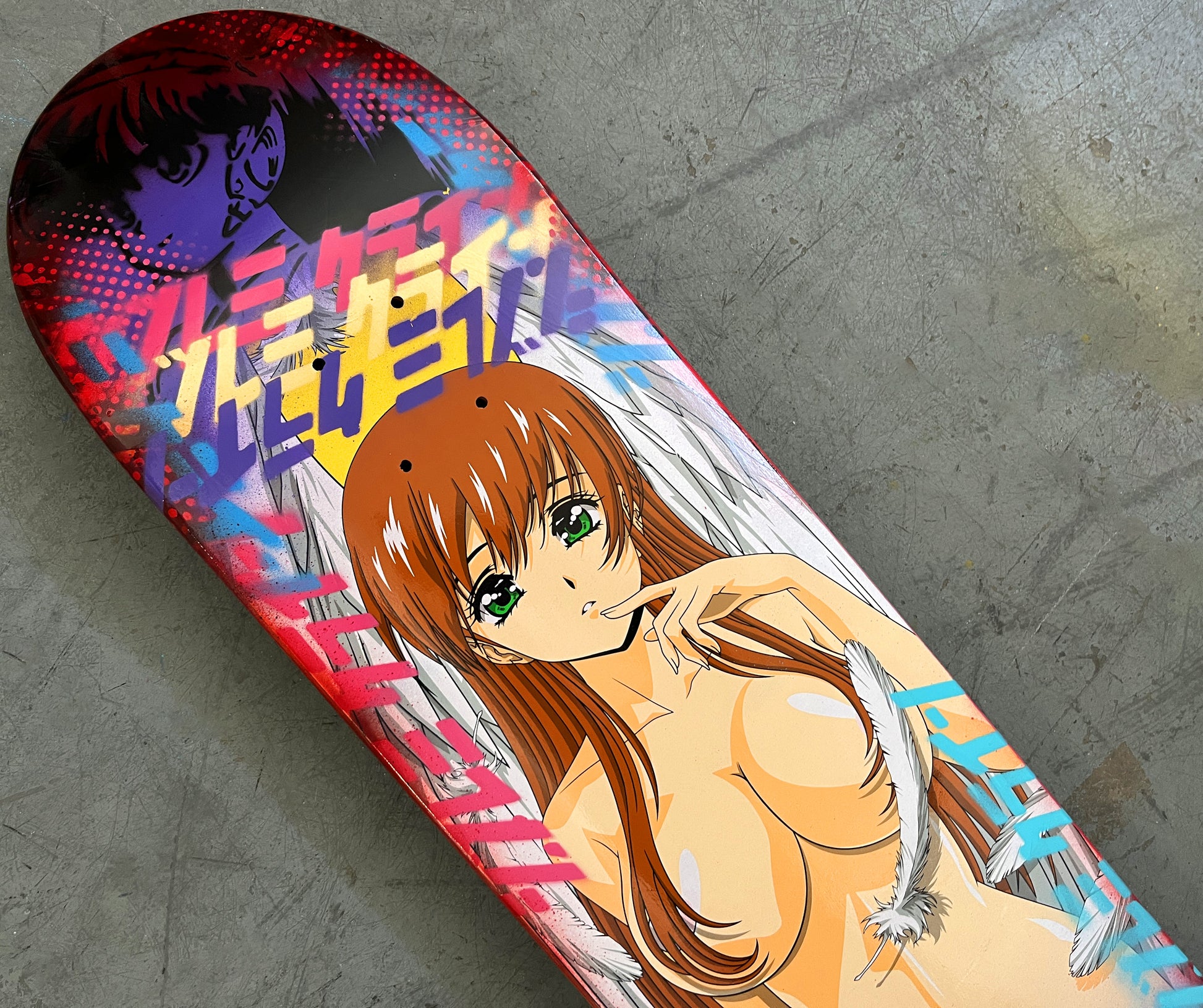 angel girl II 8.25 X 32.25 PURPLE/RED ANODIZED MIXED PROCESS SIGNED 1 of 1, hand screened with hand spray paint, and signed on top. 1 of 1