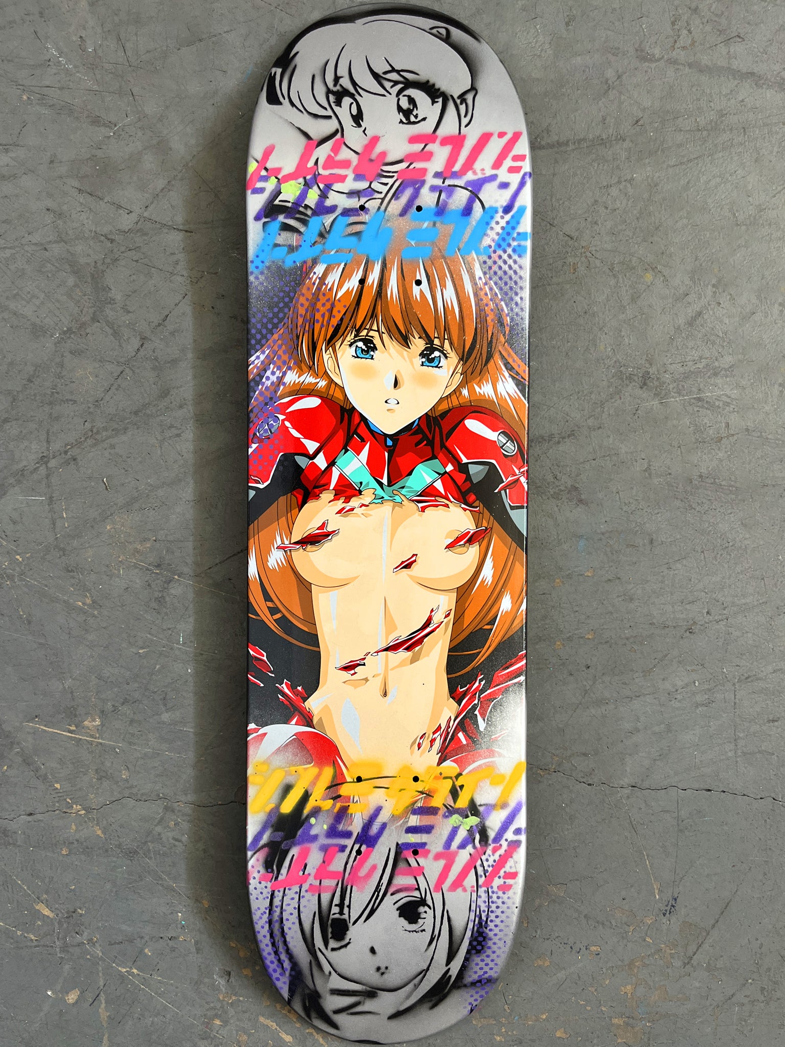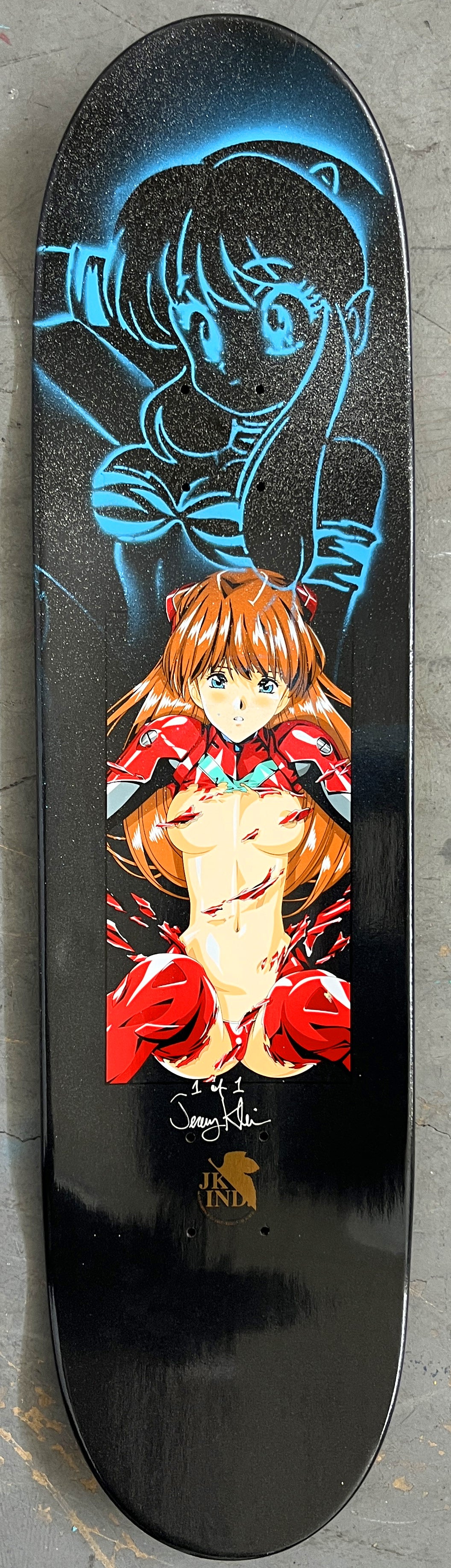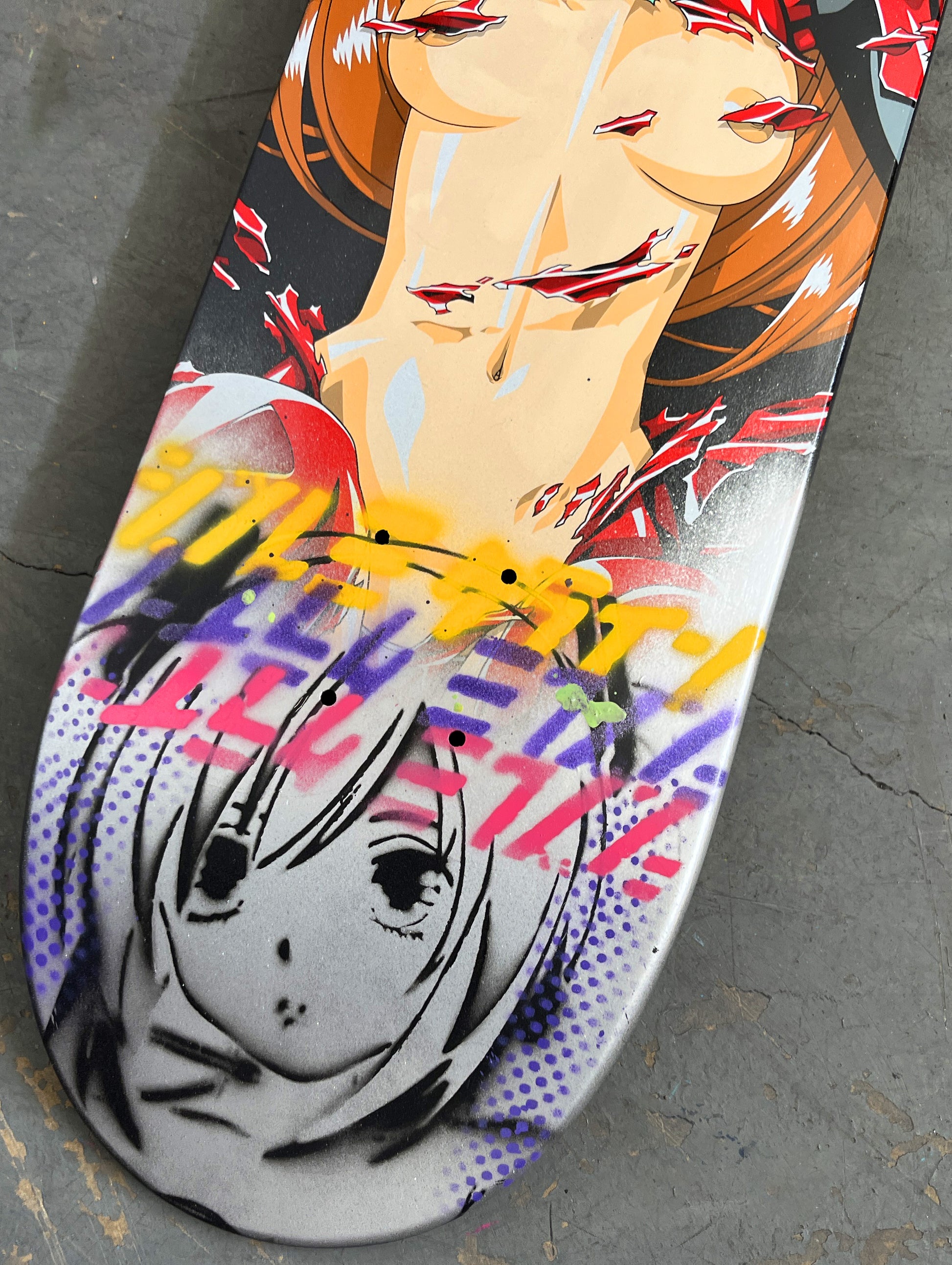 asuka 8.25 X 32.25 SILVER/BLACK MIXED PROCESS SIGNED 1 of 1, heat transfer with hand spray paint, and signed on top. 1 of 1