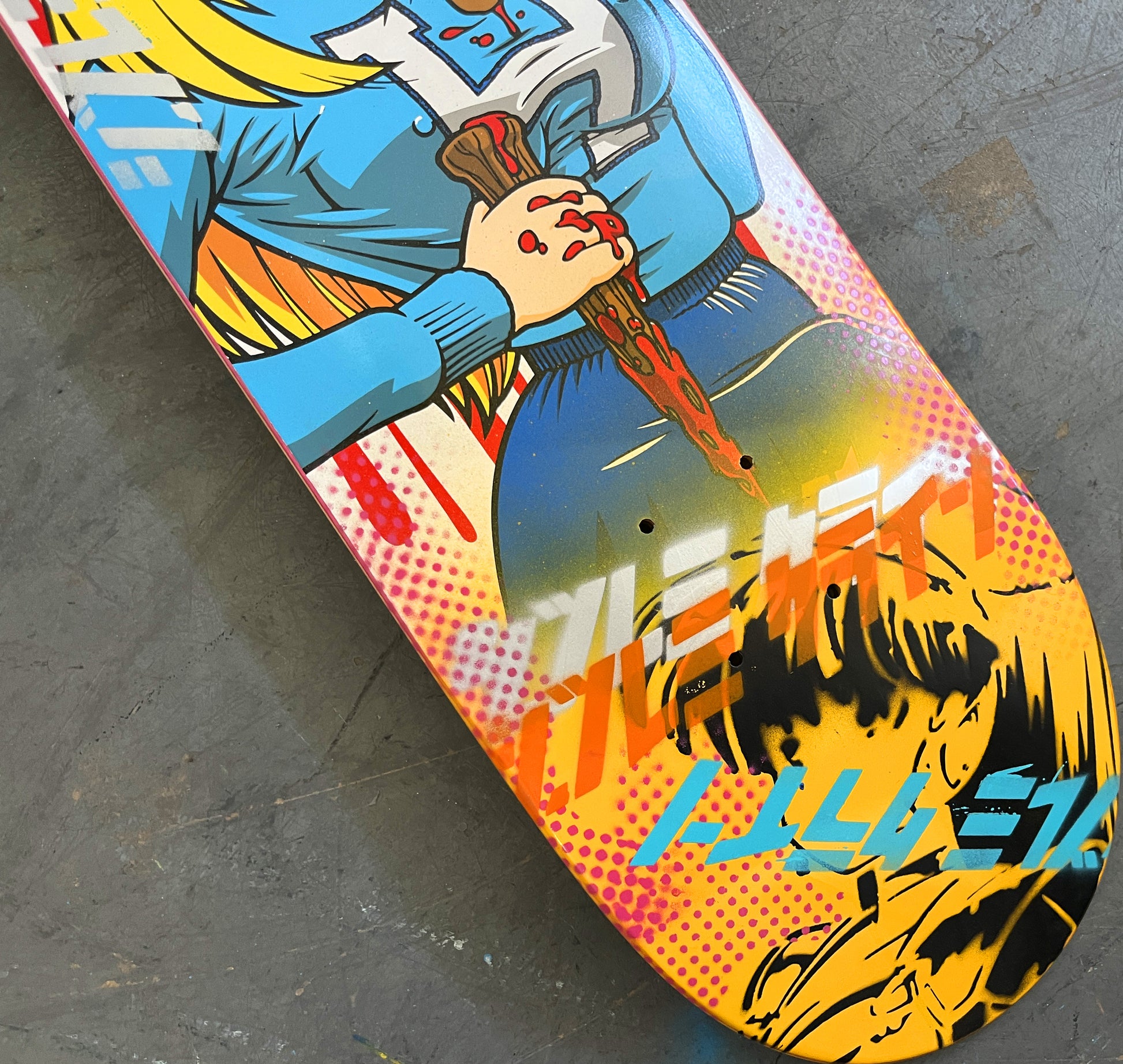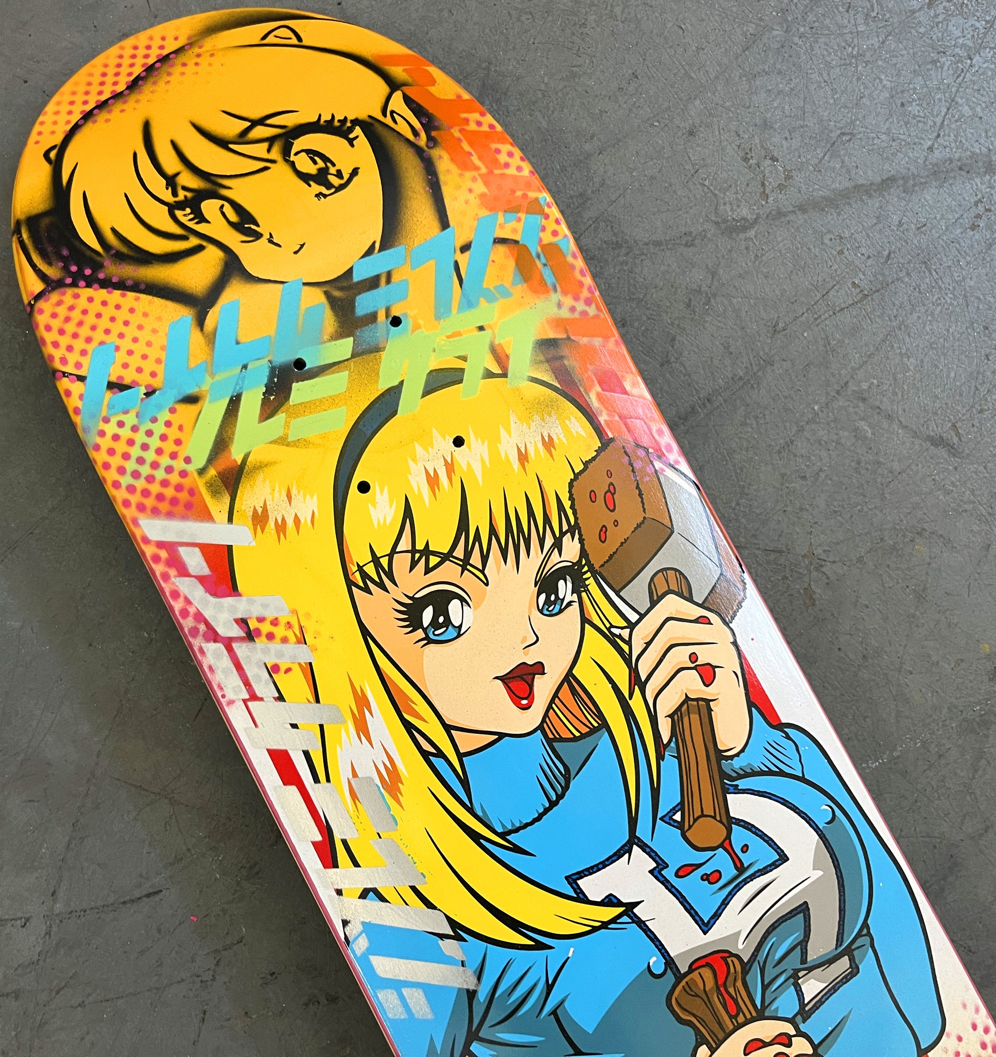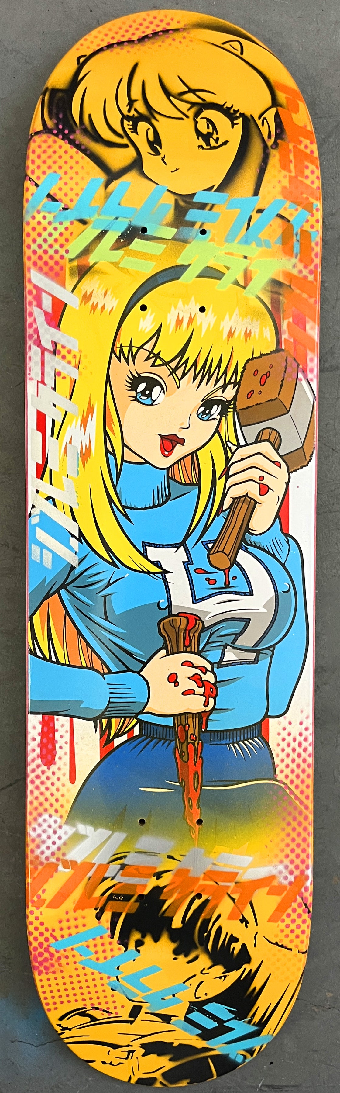 brittney 8.25 X 32.25 YELLOW MIXED PROCESS SIGNED 1 of 1, heat transfer with hand spray paint, and signed on top. 1 of 1