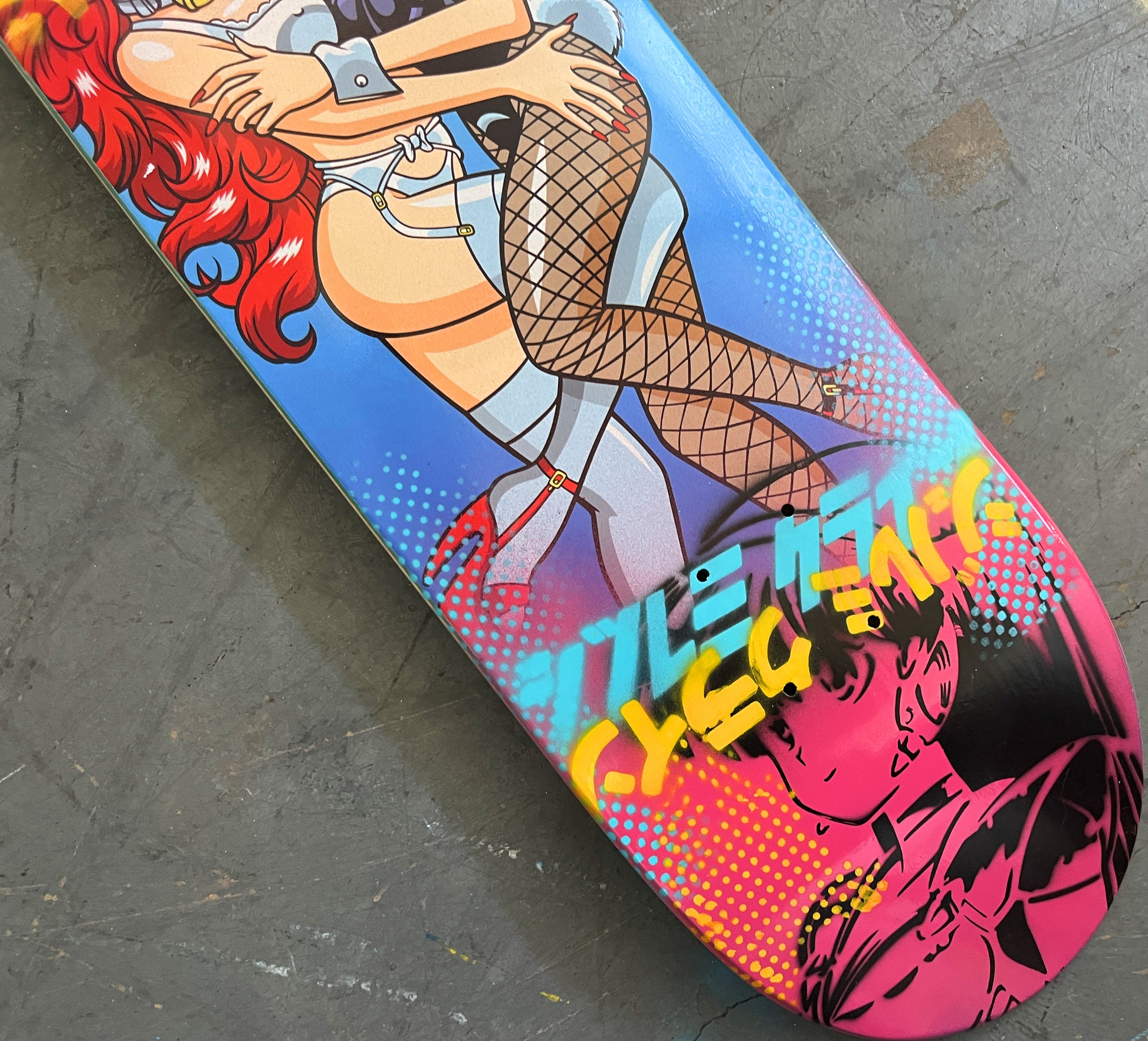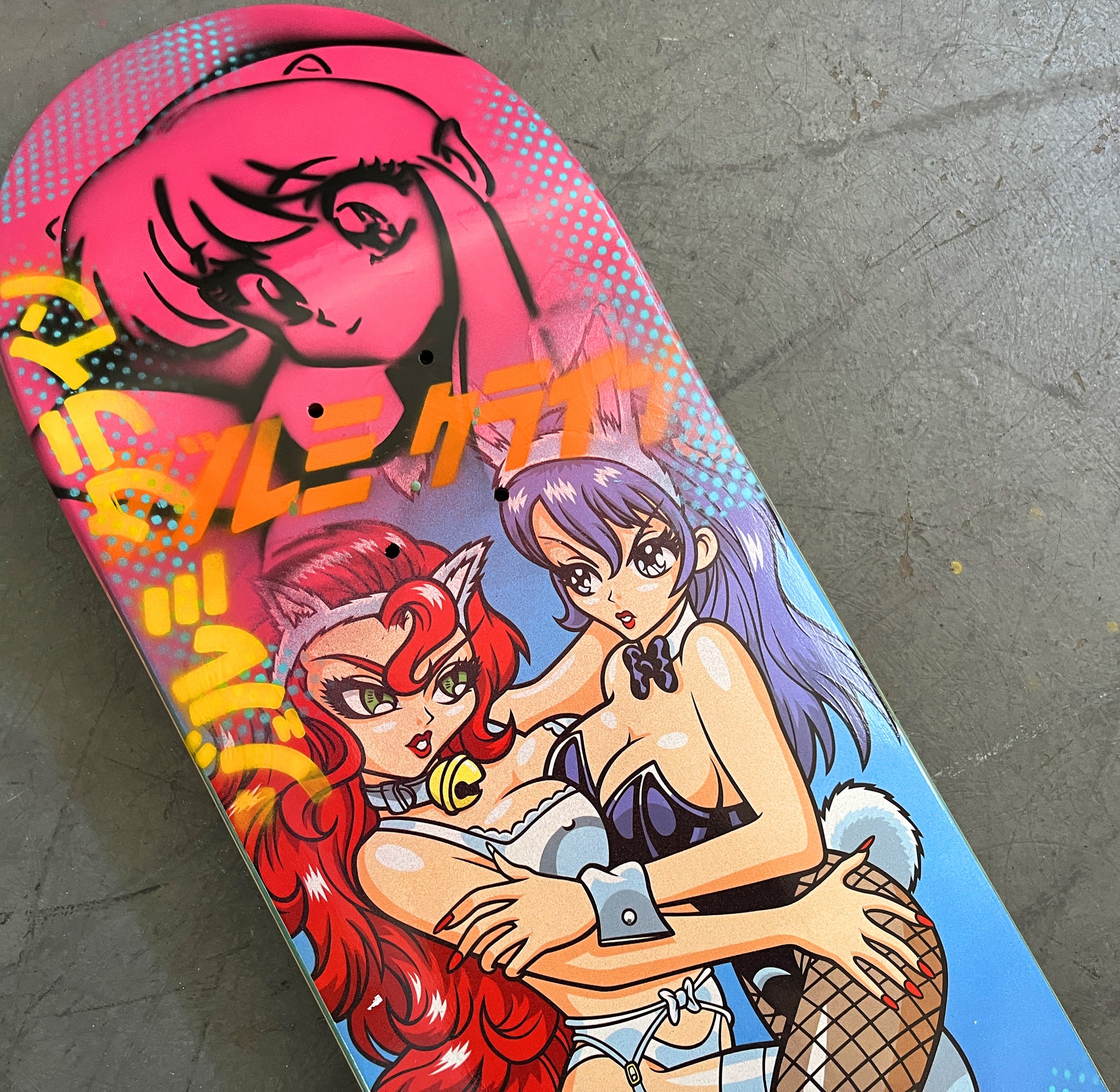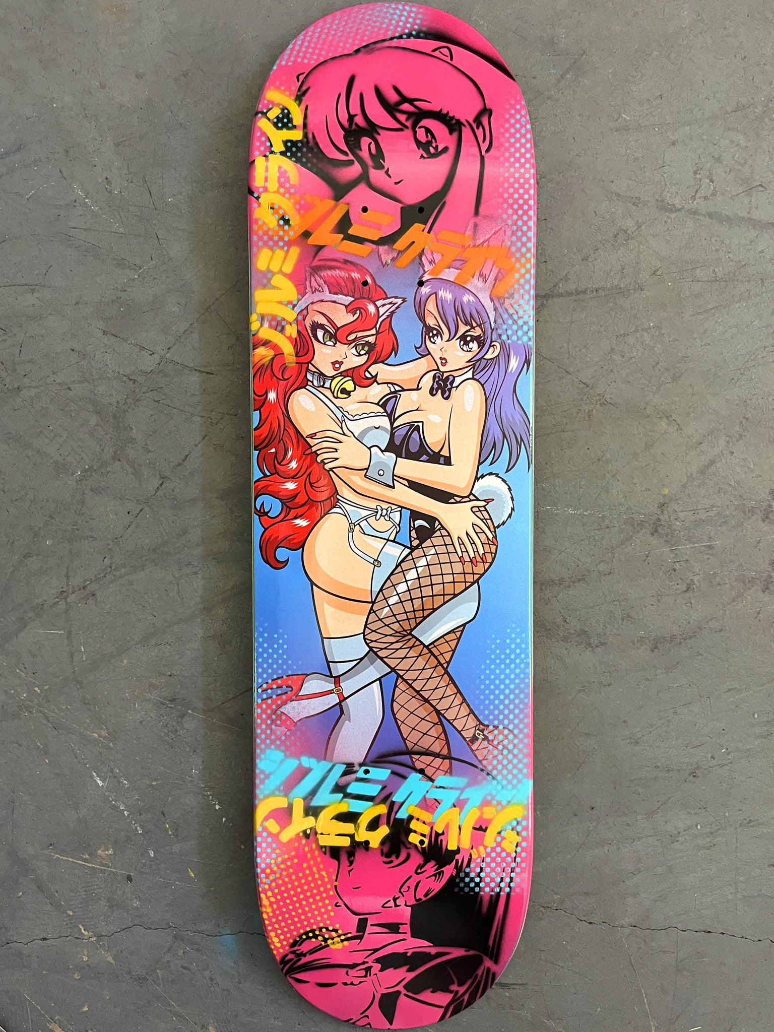 catfight 8.5 X 32.25 PINK MIXED PROCESS SIGNED 1 of 1, heat transfer with hand spray paint, and signed on top. 1 of 1