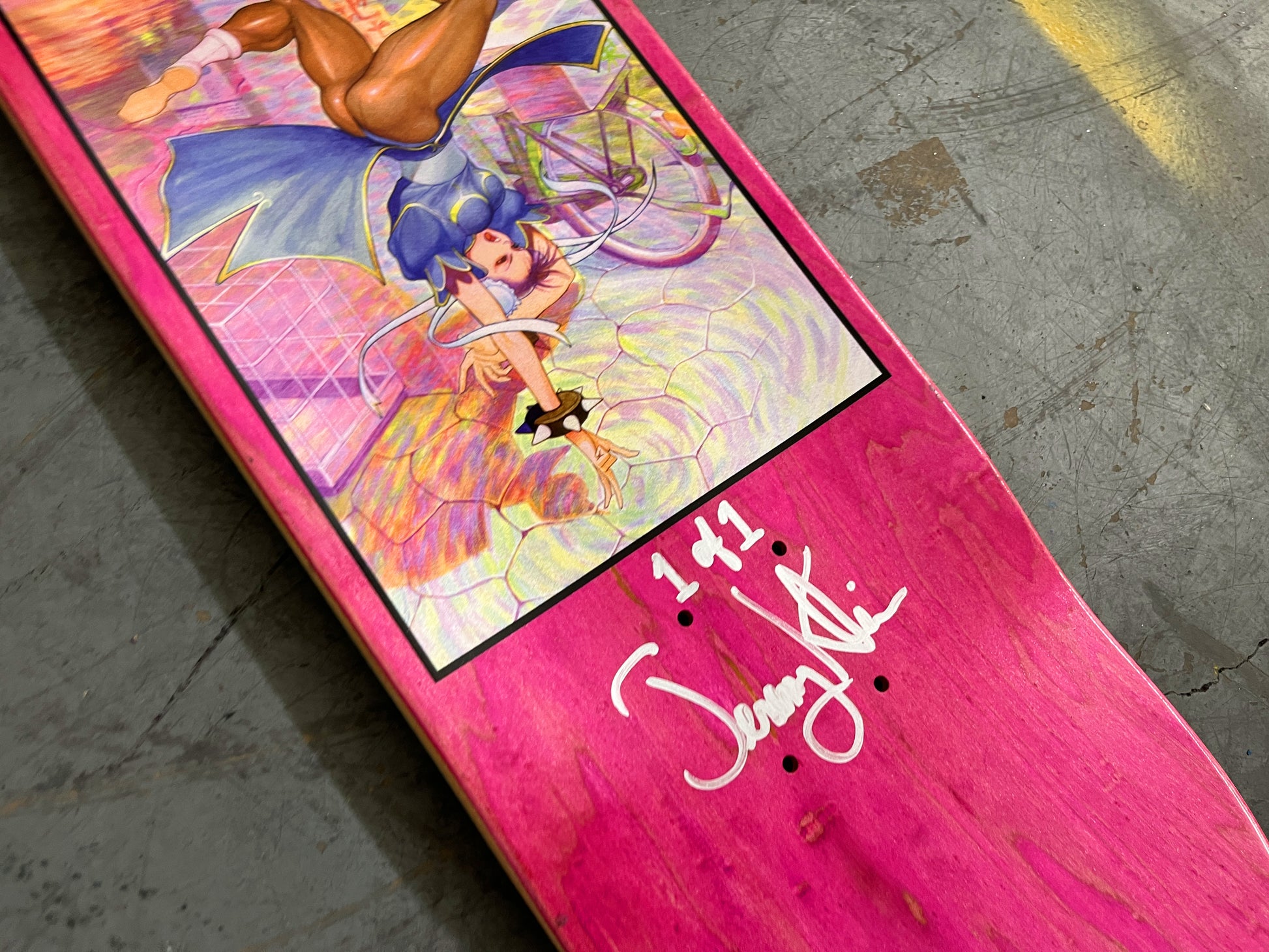 chun li 8.5 X 32.25 FLUORESCENT PINK MIXED PROCESS SIGNED 1 of 1