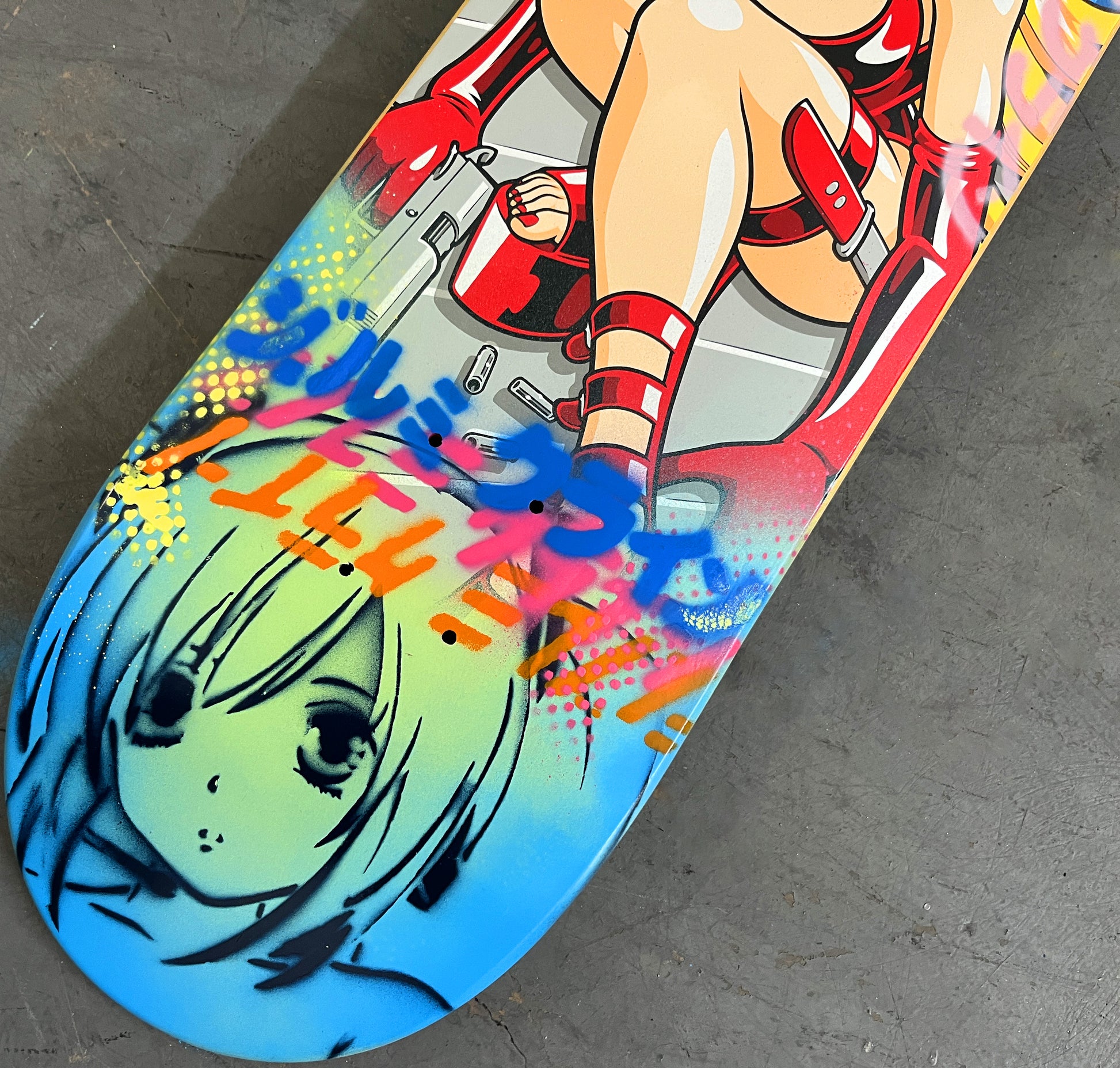 city hunter 8.25 X 32.25 BLUE/GREEN MIXED PROCESS SIGNED 1 of 1, heat transfer with hand spray paint, and signed on top. 1 of 1