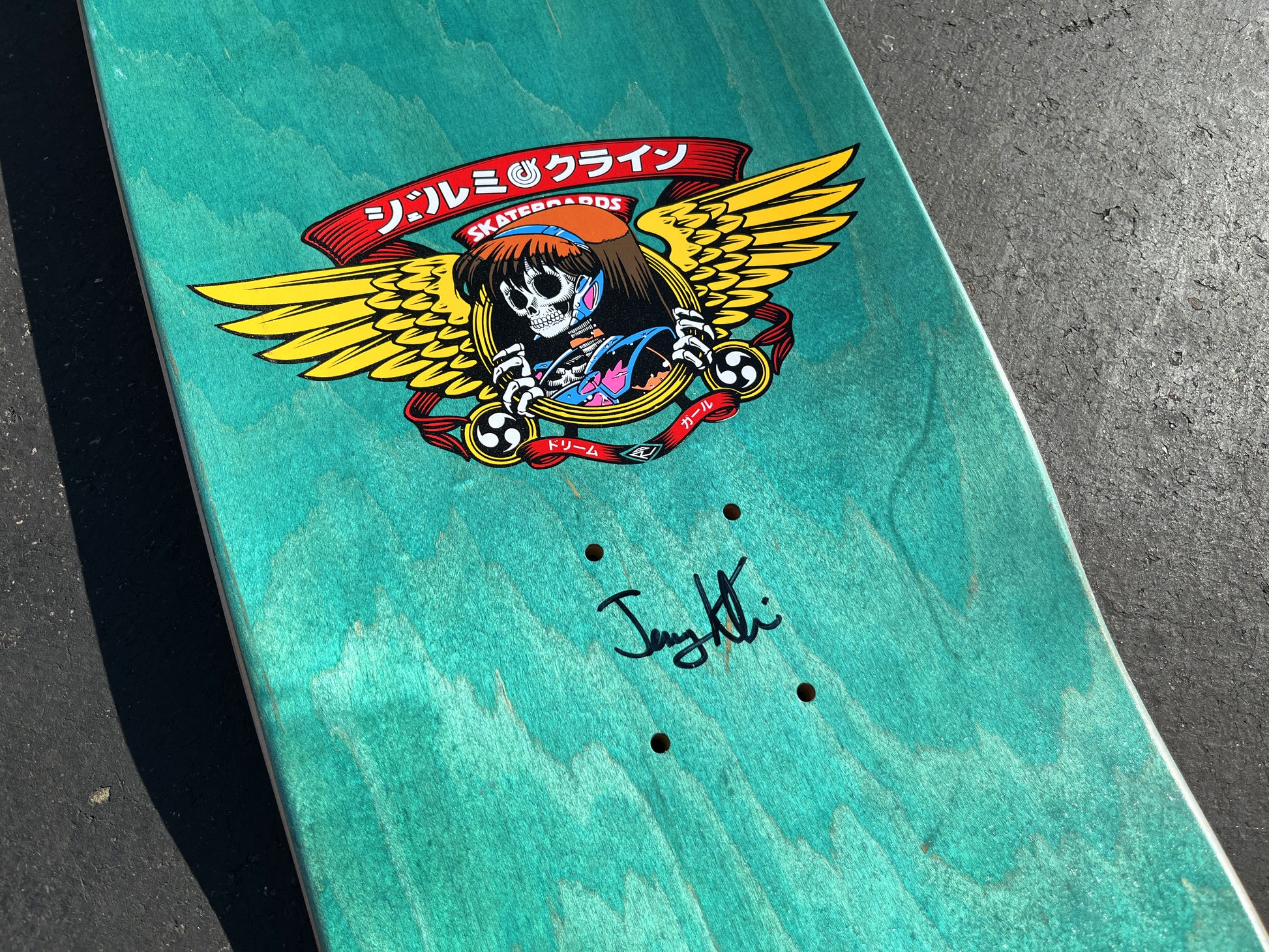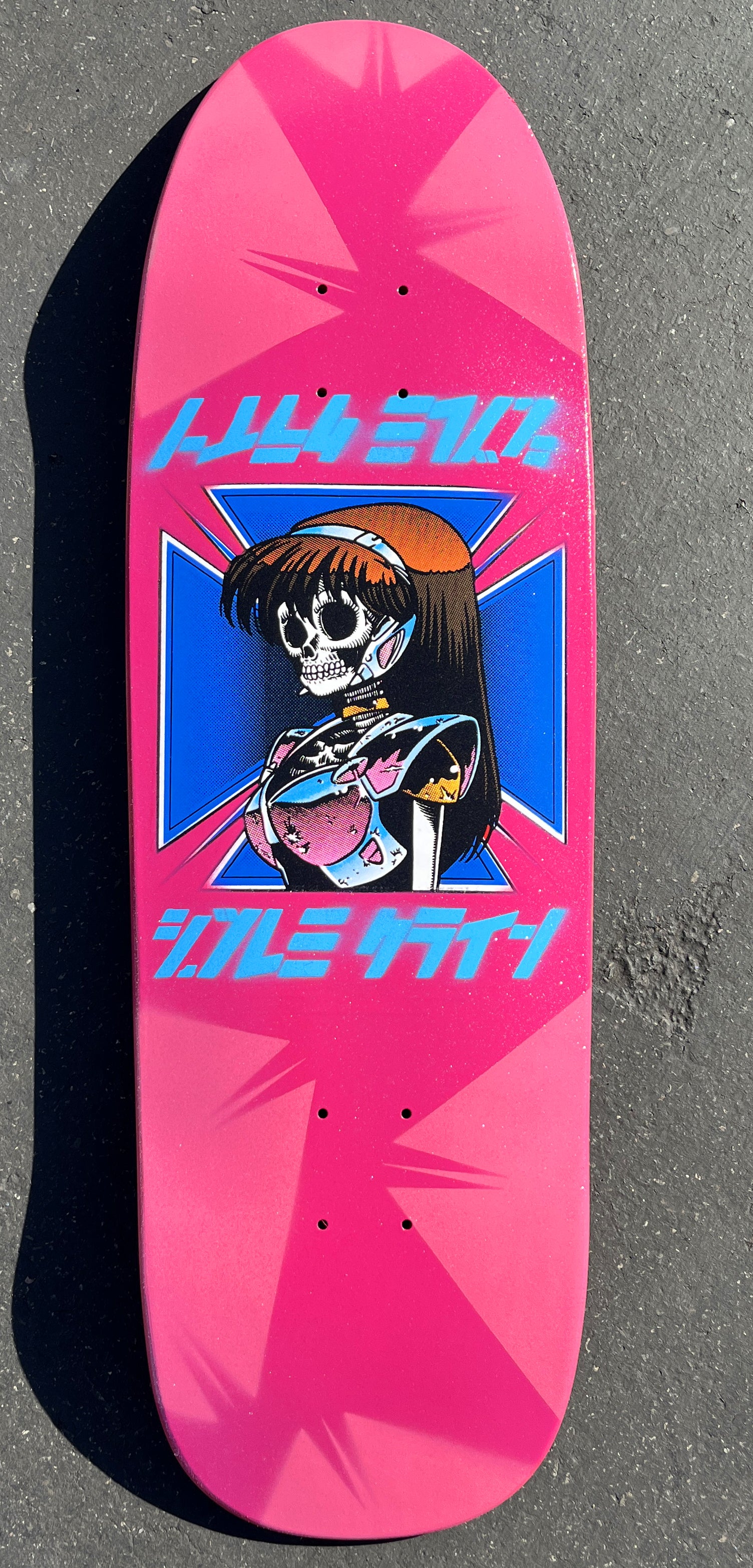 1 OF 1 dream hawk SPECIAL EDITION PINK GLITTER/PINK 9.5 X 31.75, hand screen printed. MIXED PROCESS HAND PAINTED BACKGROUND. THIS BOARD IS SIGNED
