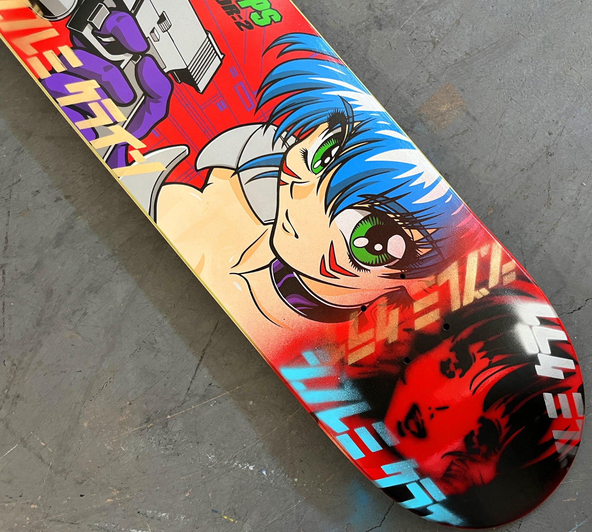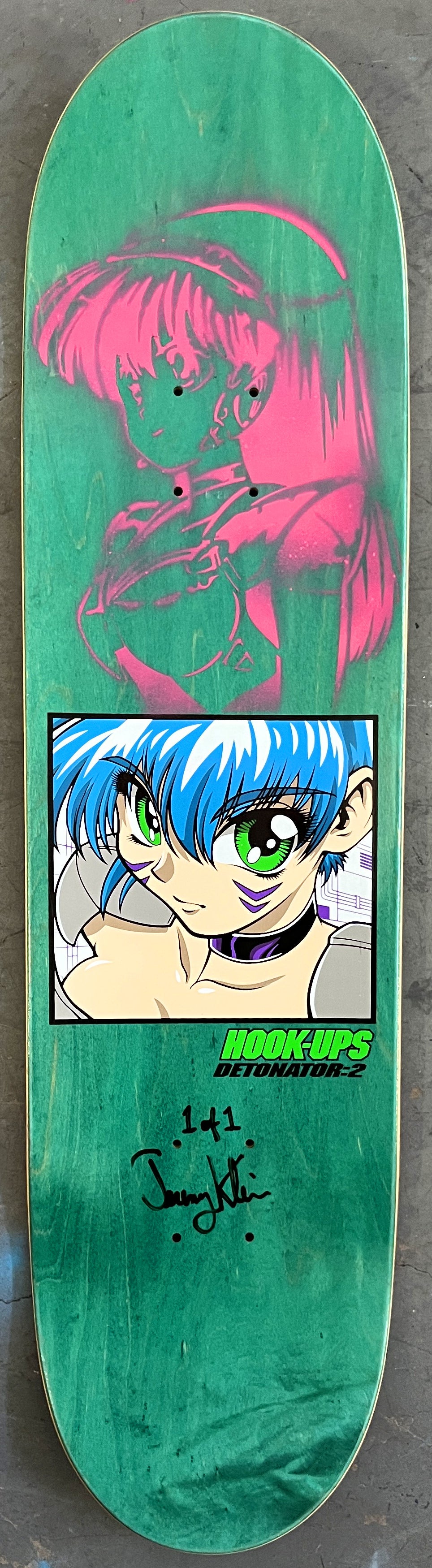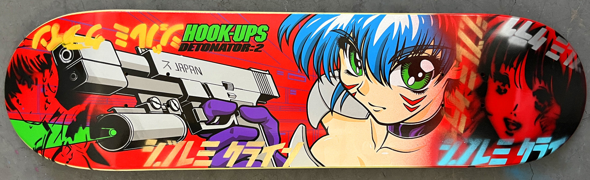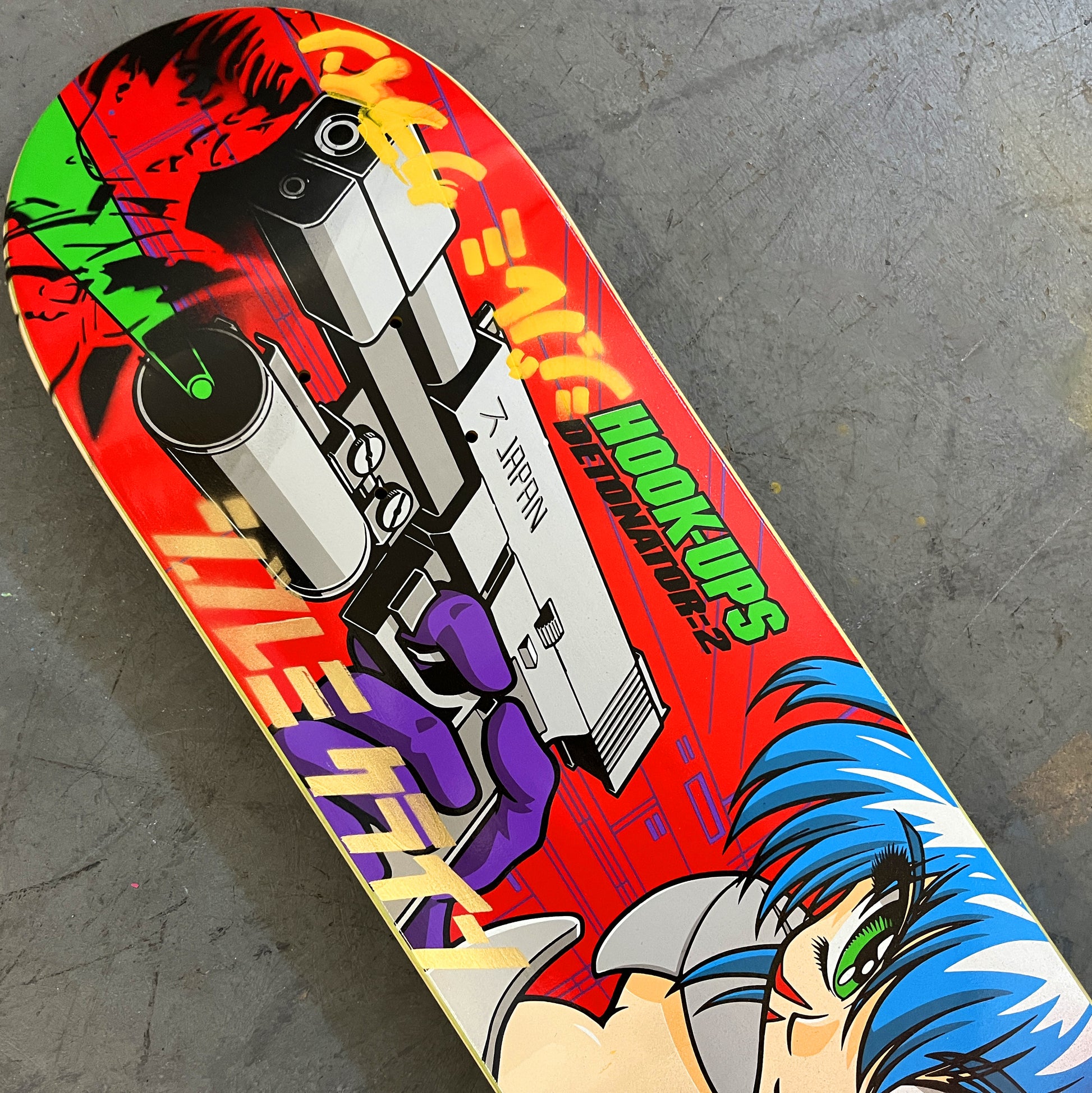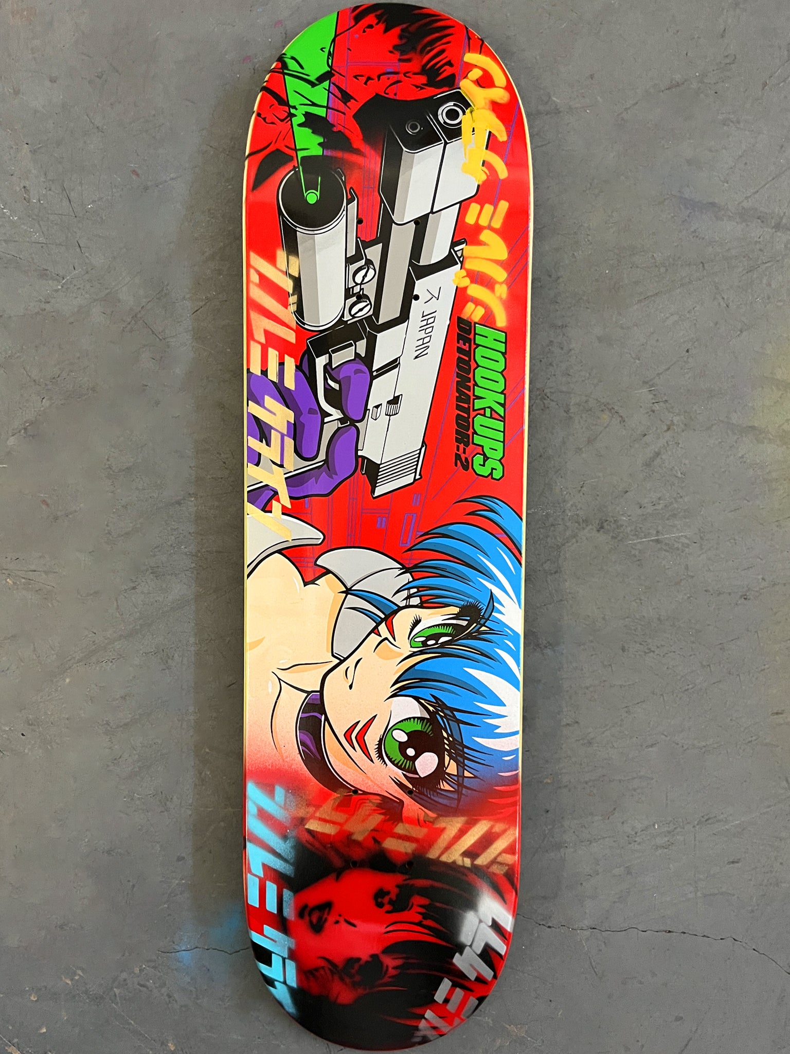 detonator 2 8.25 X 32.25 RED MIXED PROCESS SIGNED 1 of 1, heat transfer with hand spray paint, and signed on top. 1 of 1