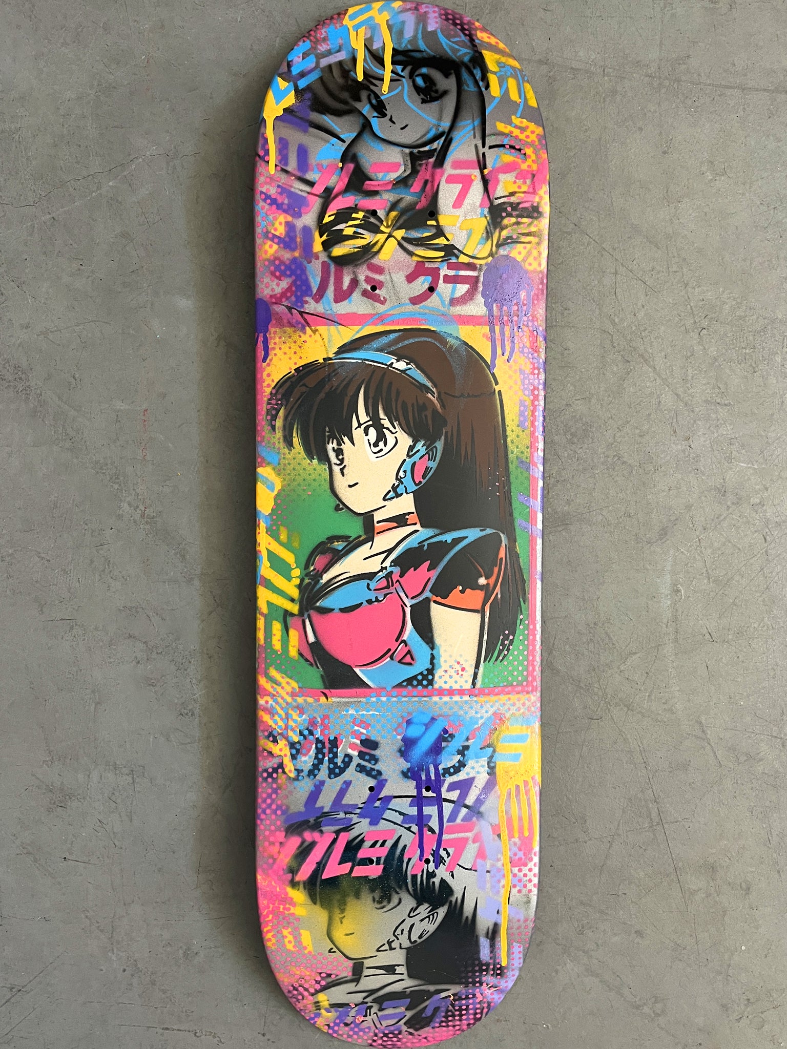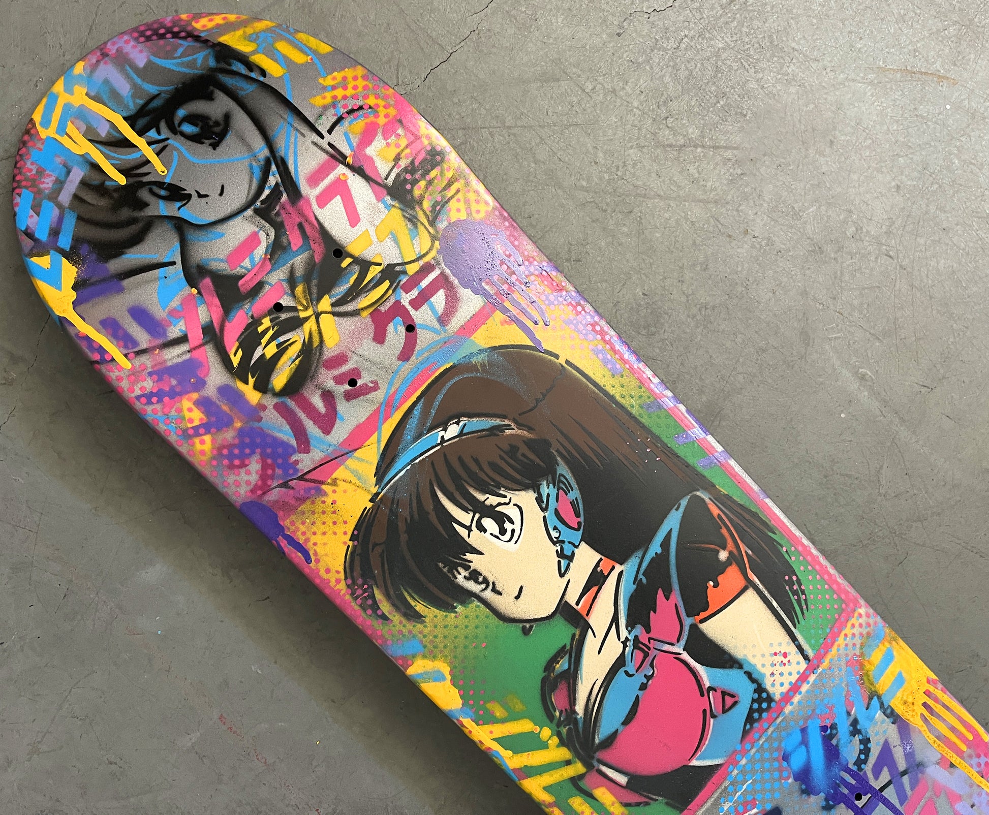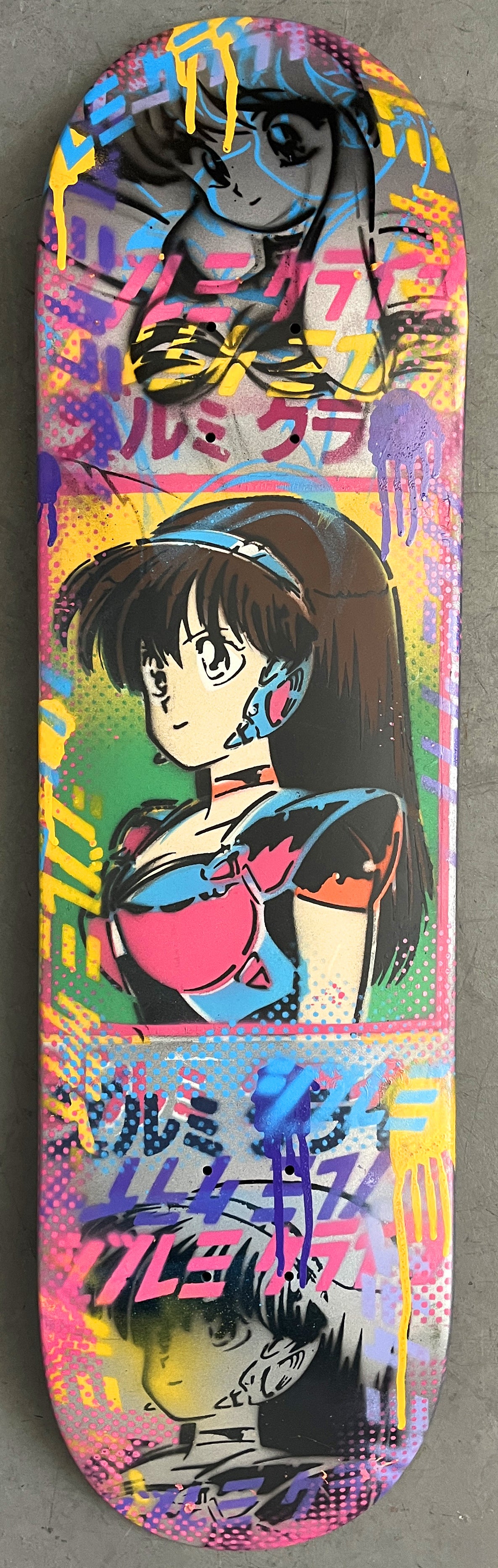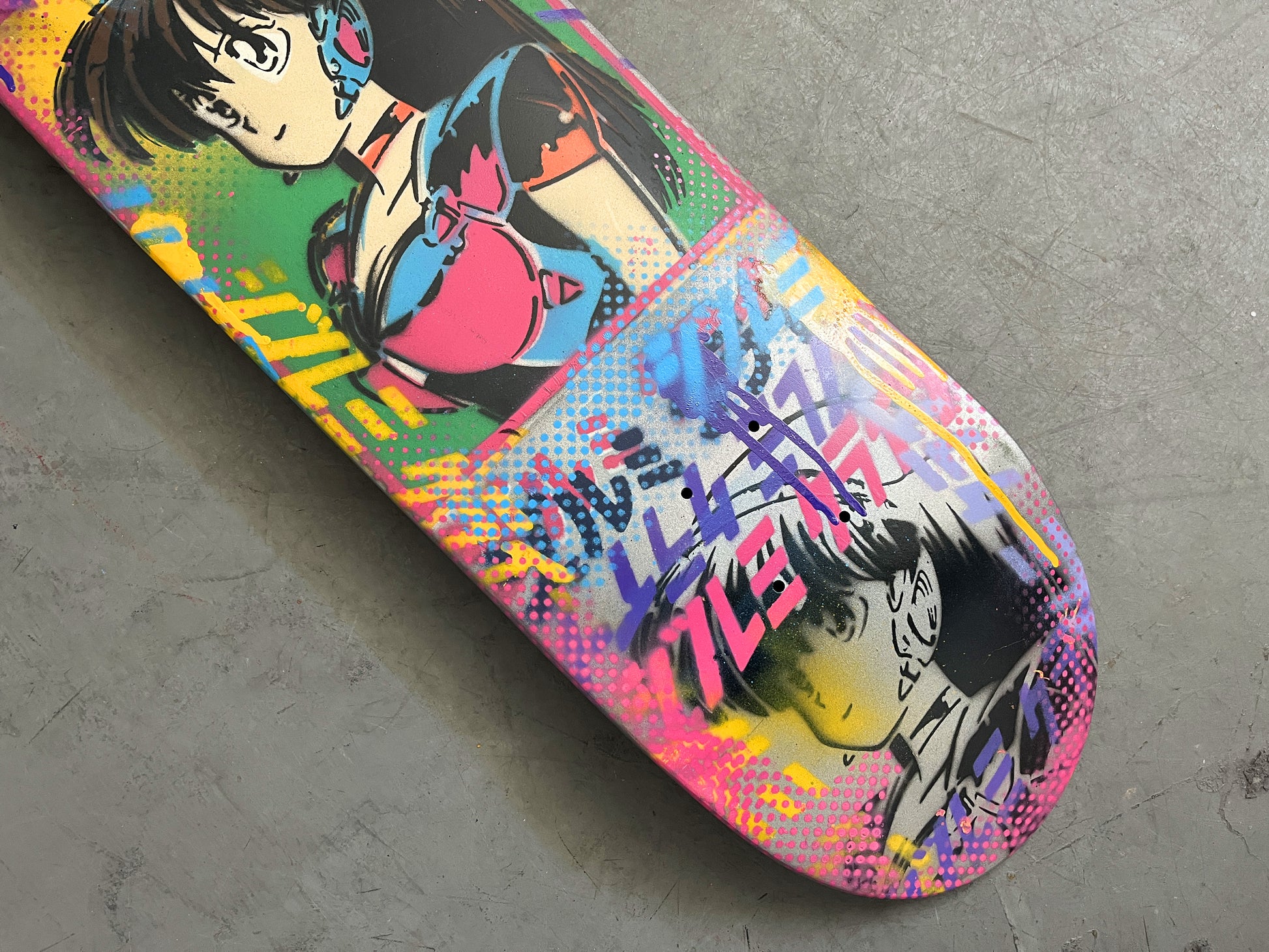 dream girl collage 8.5 X 32.25 METALLIC SILVER HAND PAINTED SIGNED 1 of 1, this board is completely hand painted and signed on top. 1 of 1
