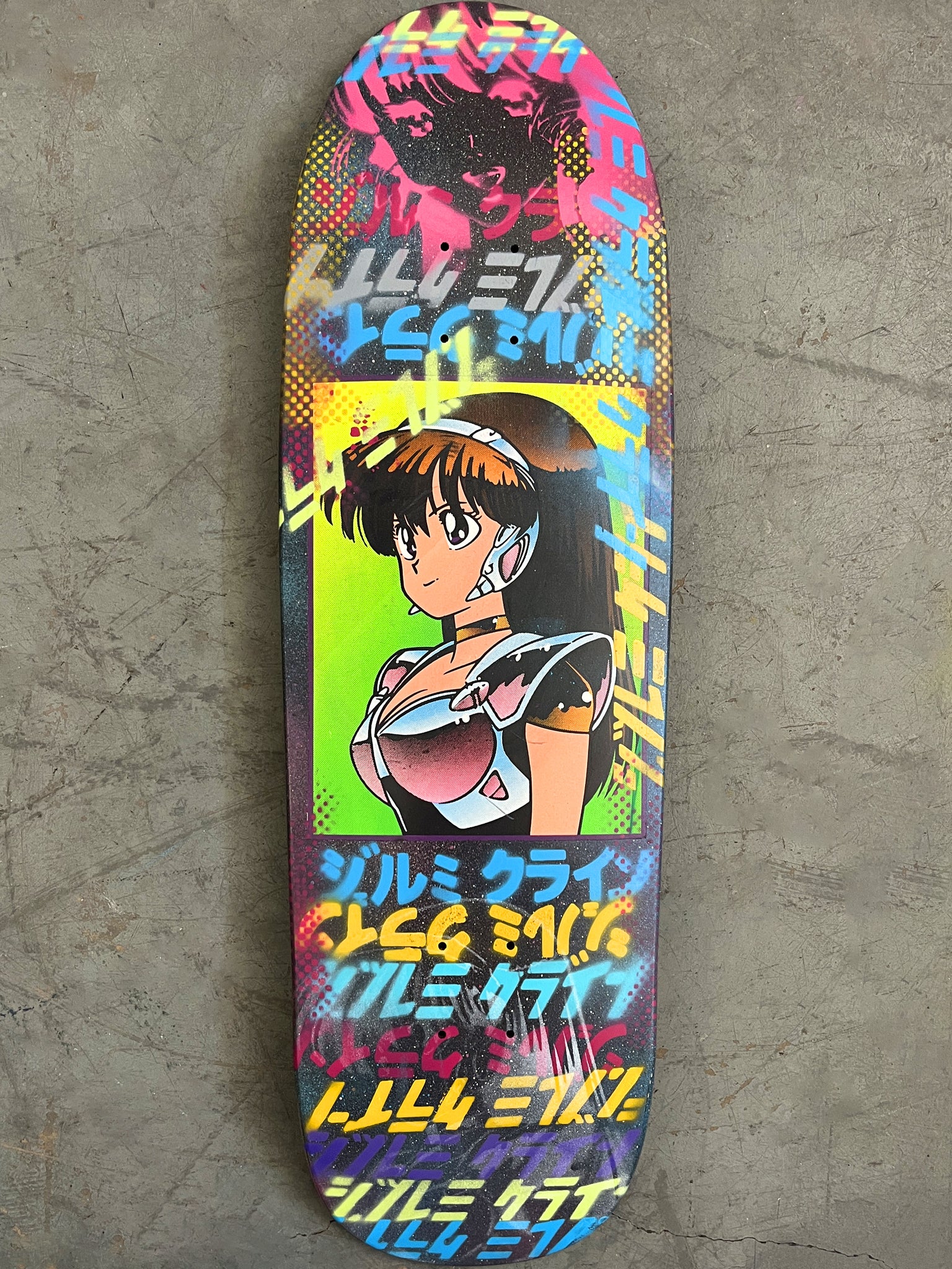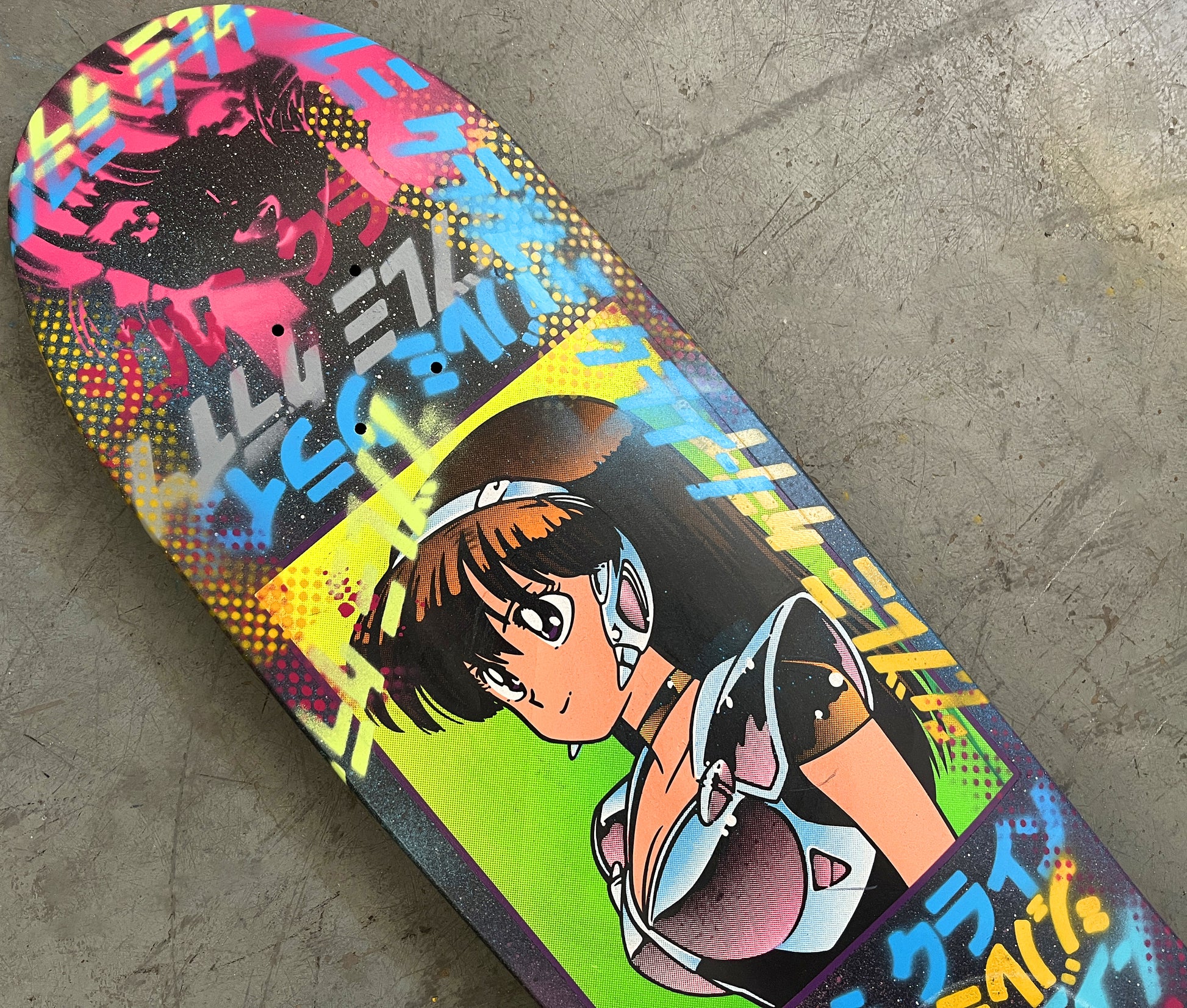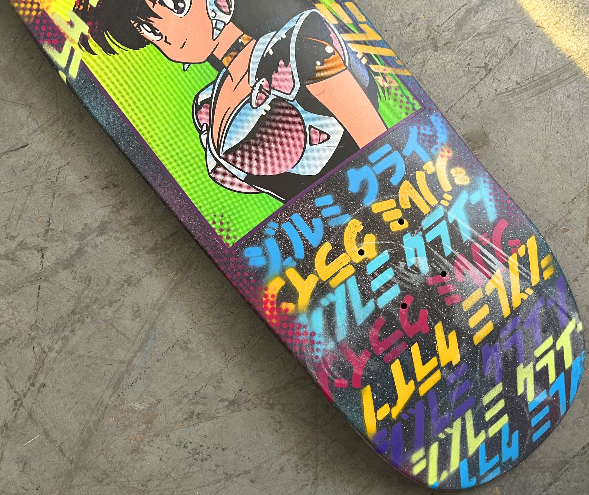 dream girl GALAXY II collage 9.5 X 31.75 1 OF 1, hand screen printed. MIXED PROCESS HAND PAINTED BACKGROUND. THIS BOARD IS SIGNED