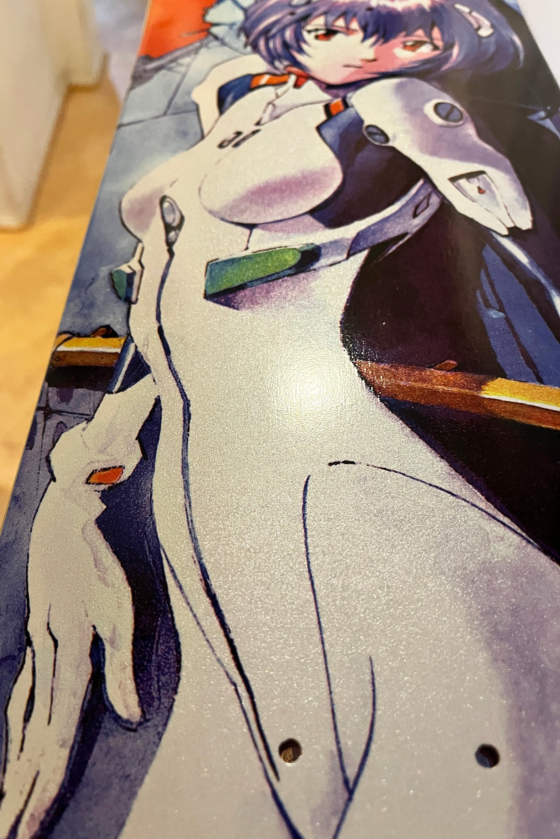 rei SPECIAL EDITION - 8.5 X 32.25, top color veneer may vary. full color top graphic.the whole board has pearlescent inks.