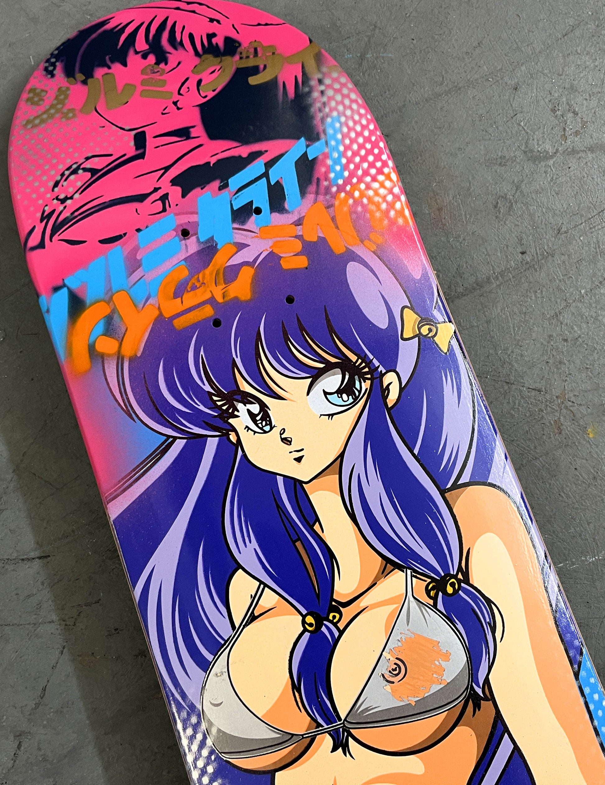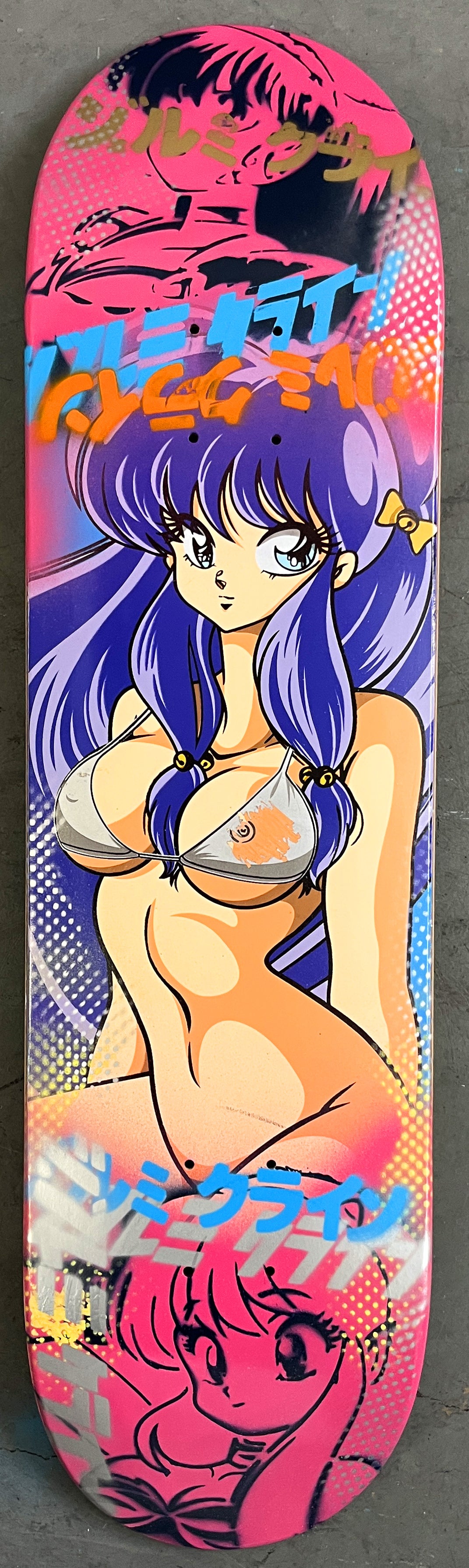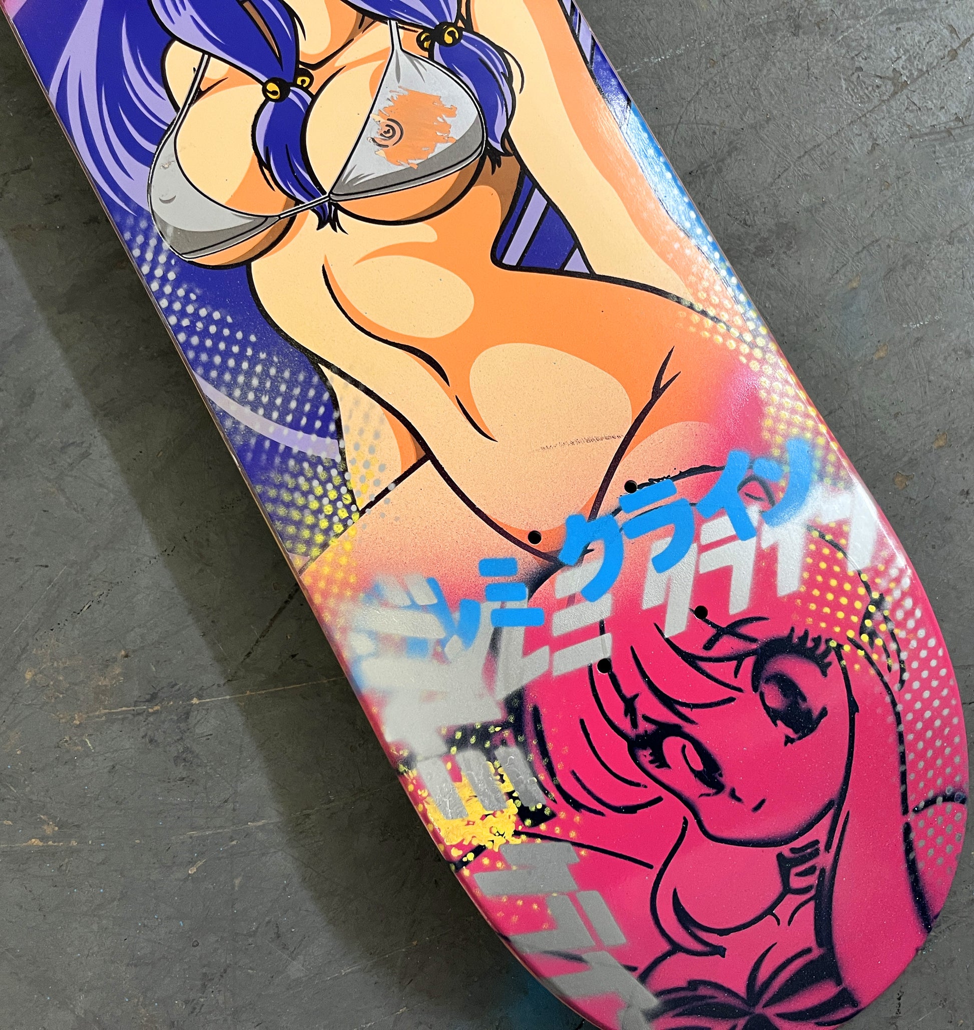 shampoo 8.25 X 32.25 PINK/BLUE/PURPLE SCRATCH OFF GRAPHIC MIXED PROCESS SIGNED 1 of 1, HAND SCREENED with hand spray paint, and signed on top. 1 of 1