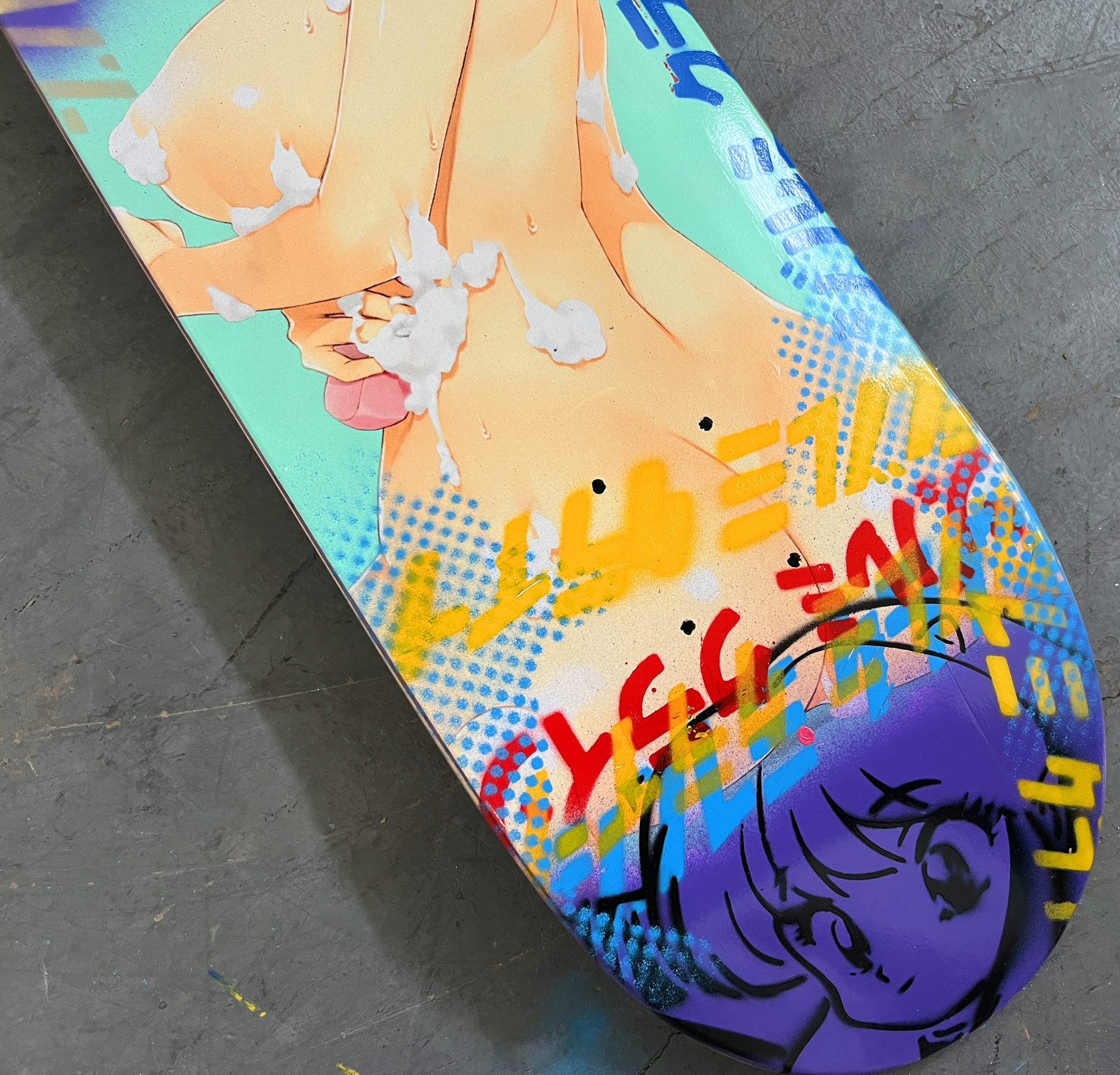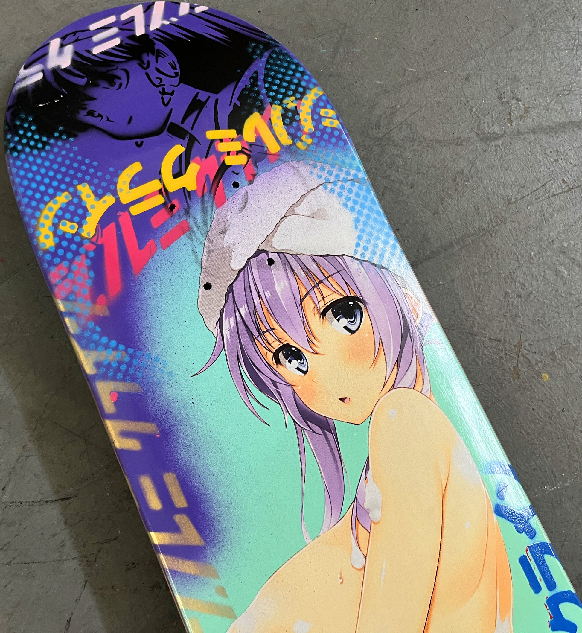 alice & friends 8.25 X 32.25 PINK/YELLOW MIXED PROCESS SIGNED 1 of 1, heat transfer with hand spray paint, and signed on top. 1 of 1