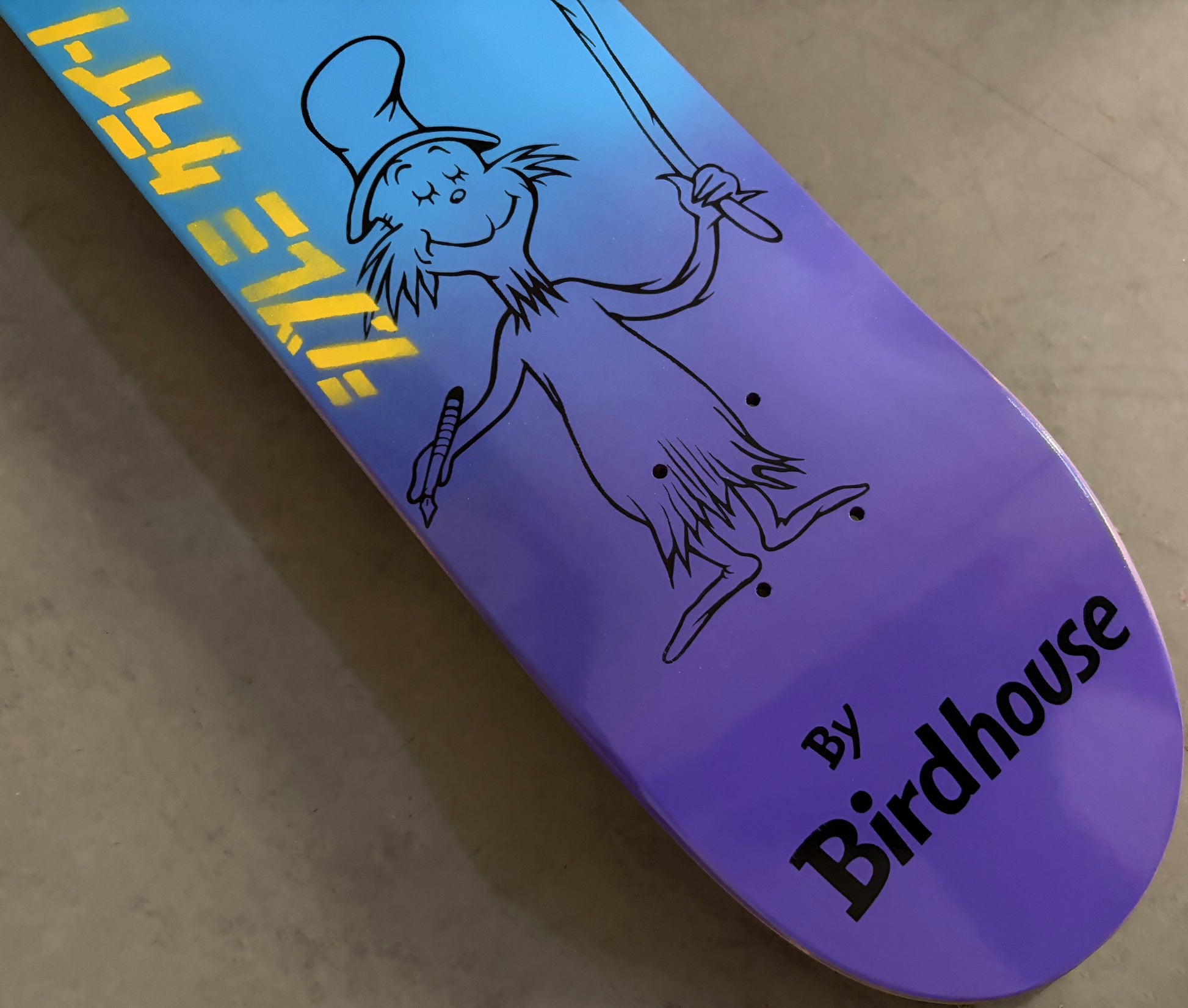SIGNED green eggs BLUE/PURPLE MIXED PROCESS 7.5 X 31.75 HAND SCREENED, FULL TOP GRAPHIC, 1 OF 1.