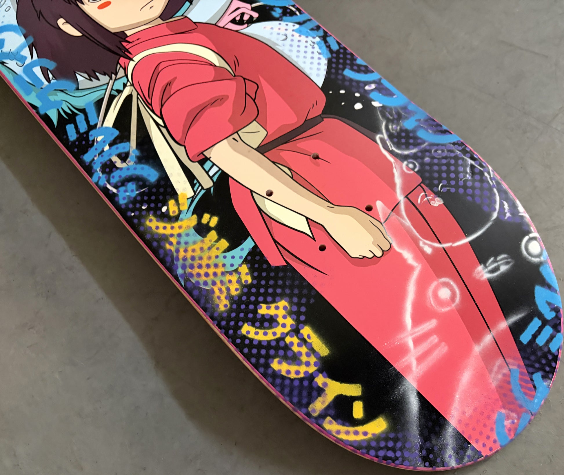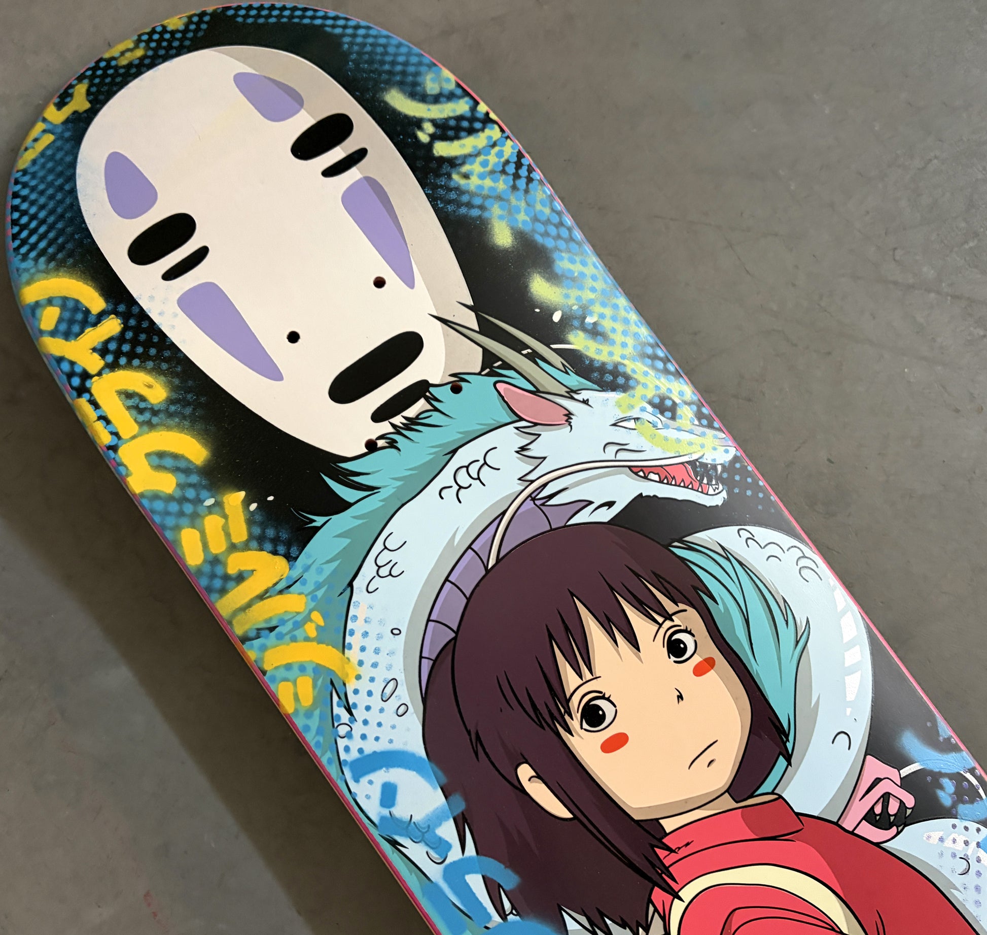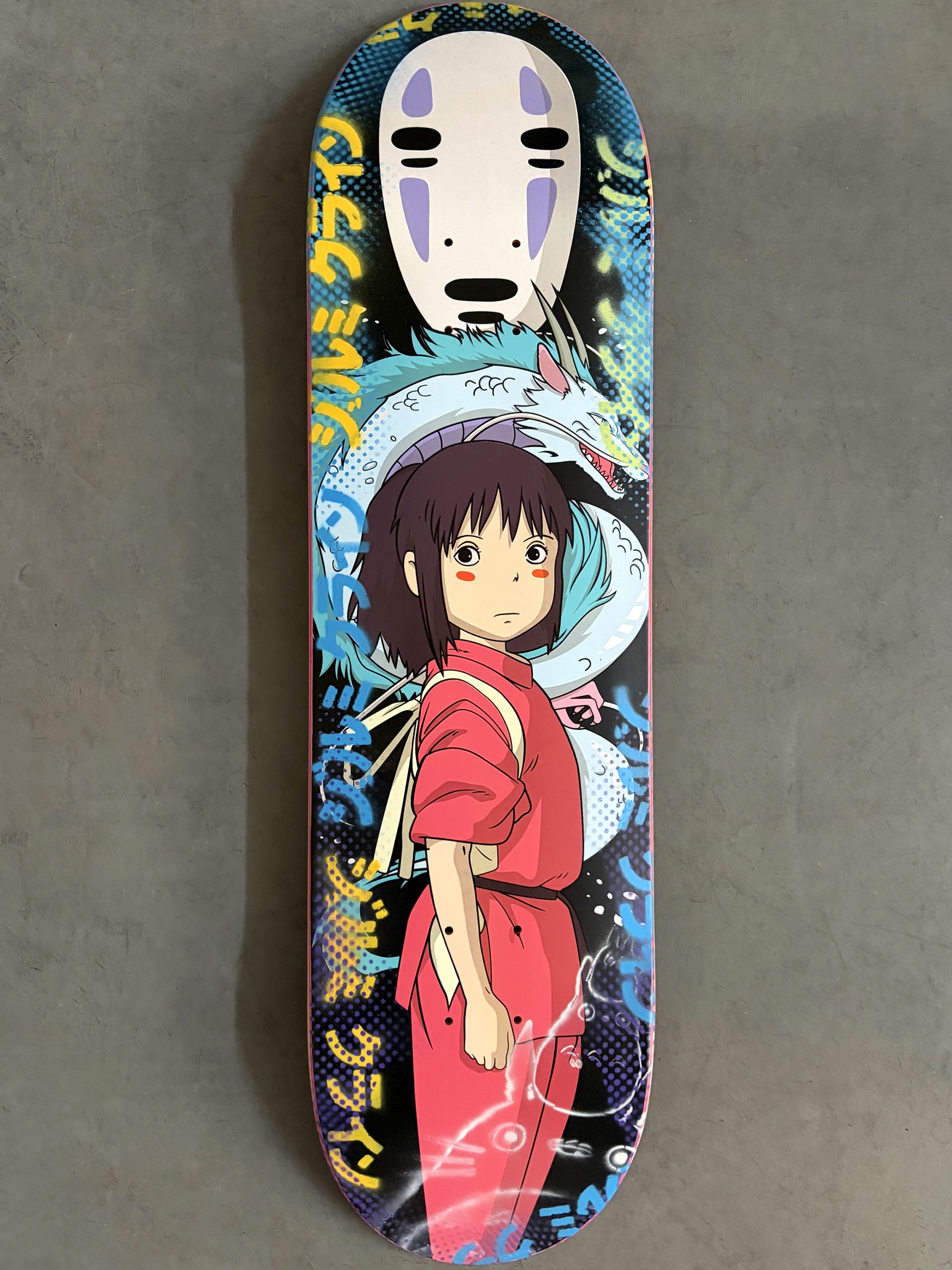 spirited away 8.5 X 32.25 COLLAGE #1 MIXED PROCESS SIGNED 1 of 1, hand screened with spray paint and signed on top. 1 of 1