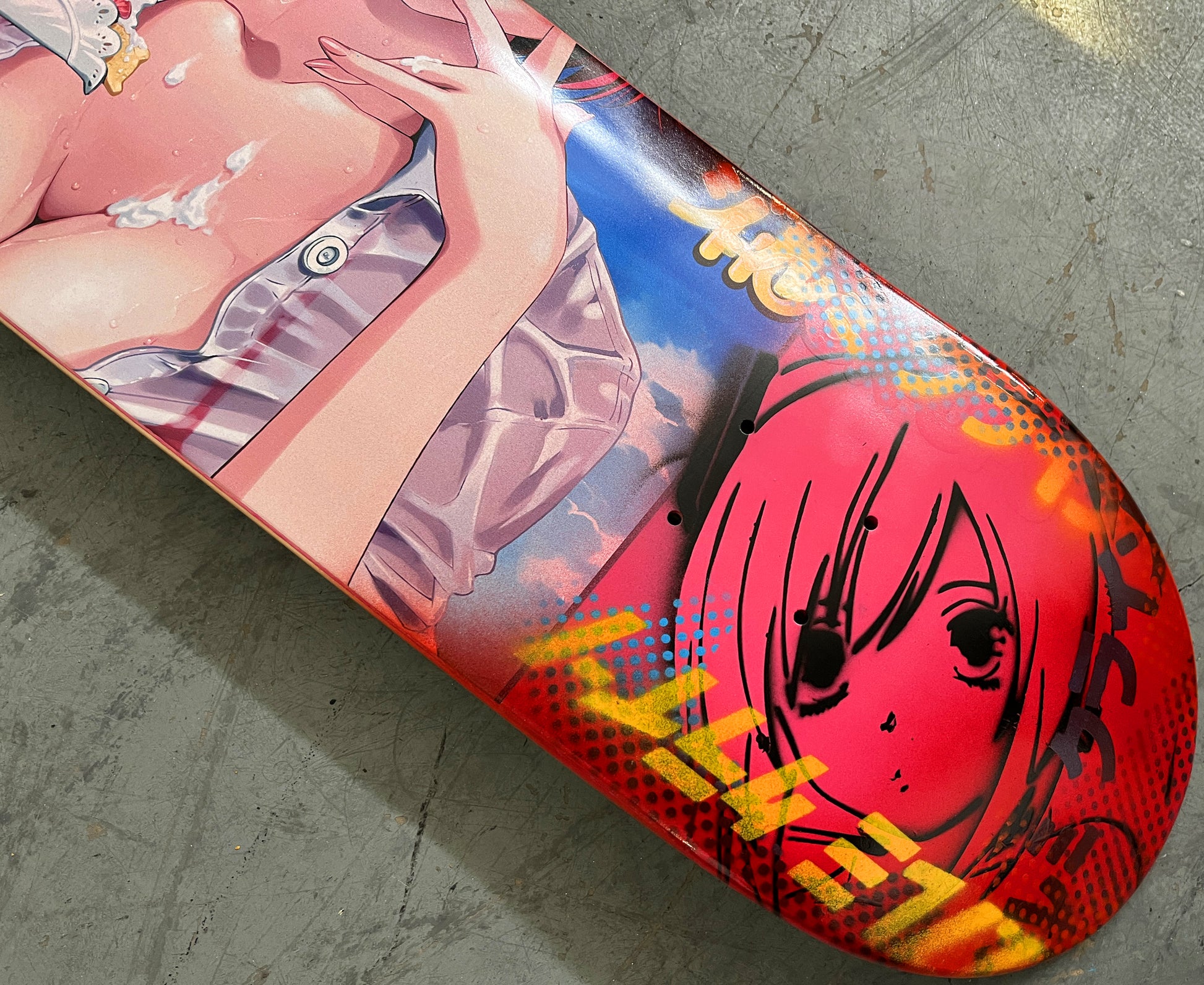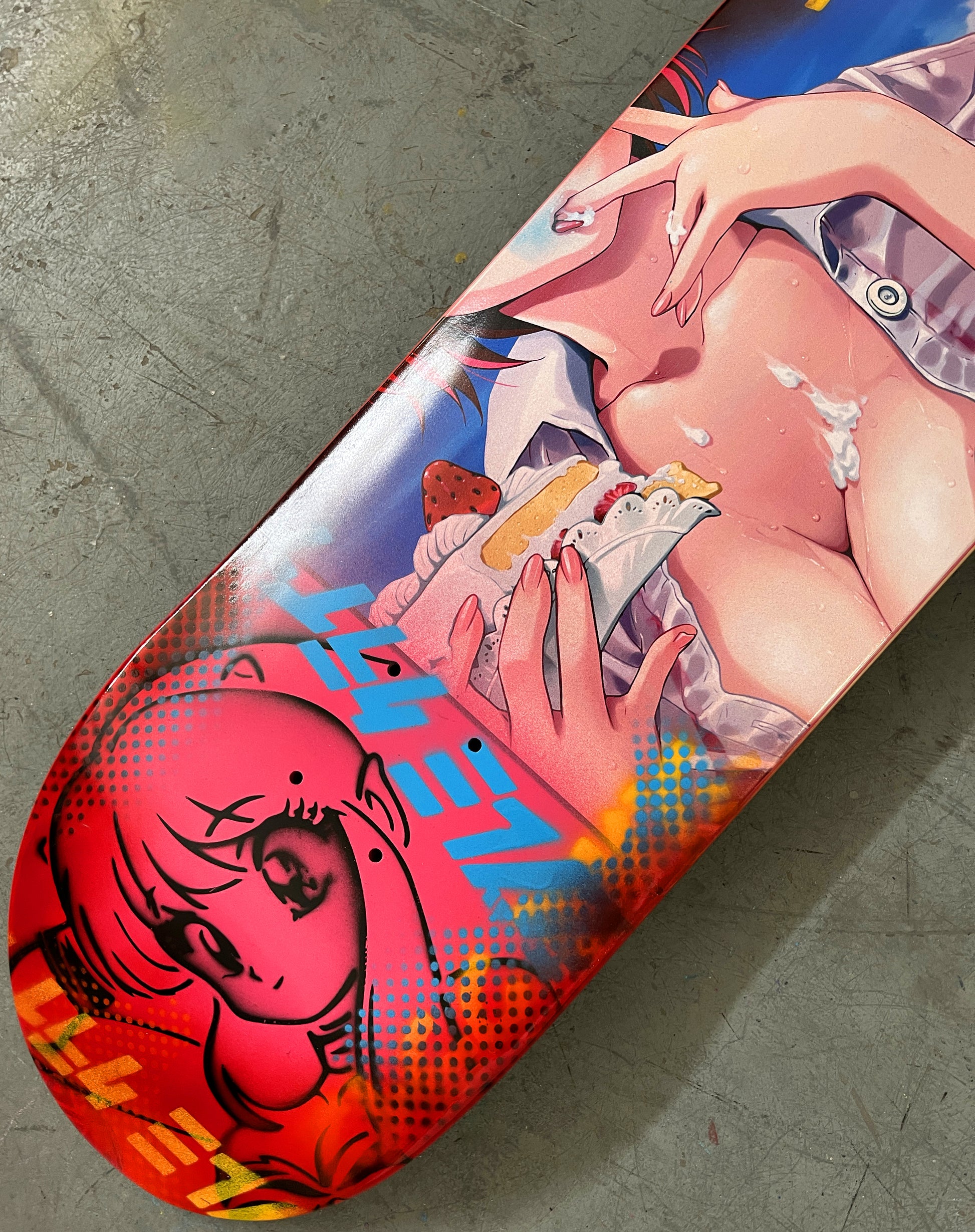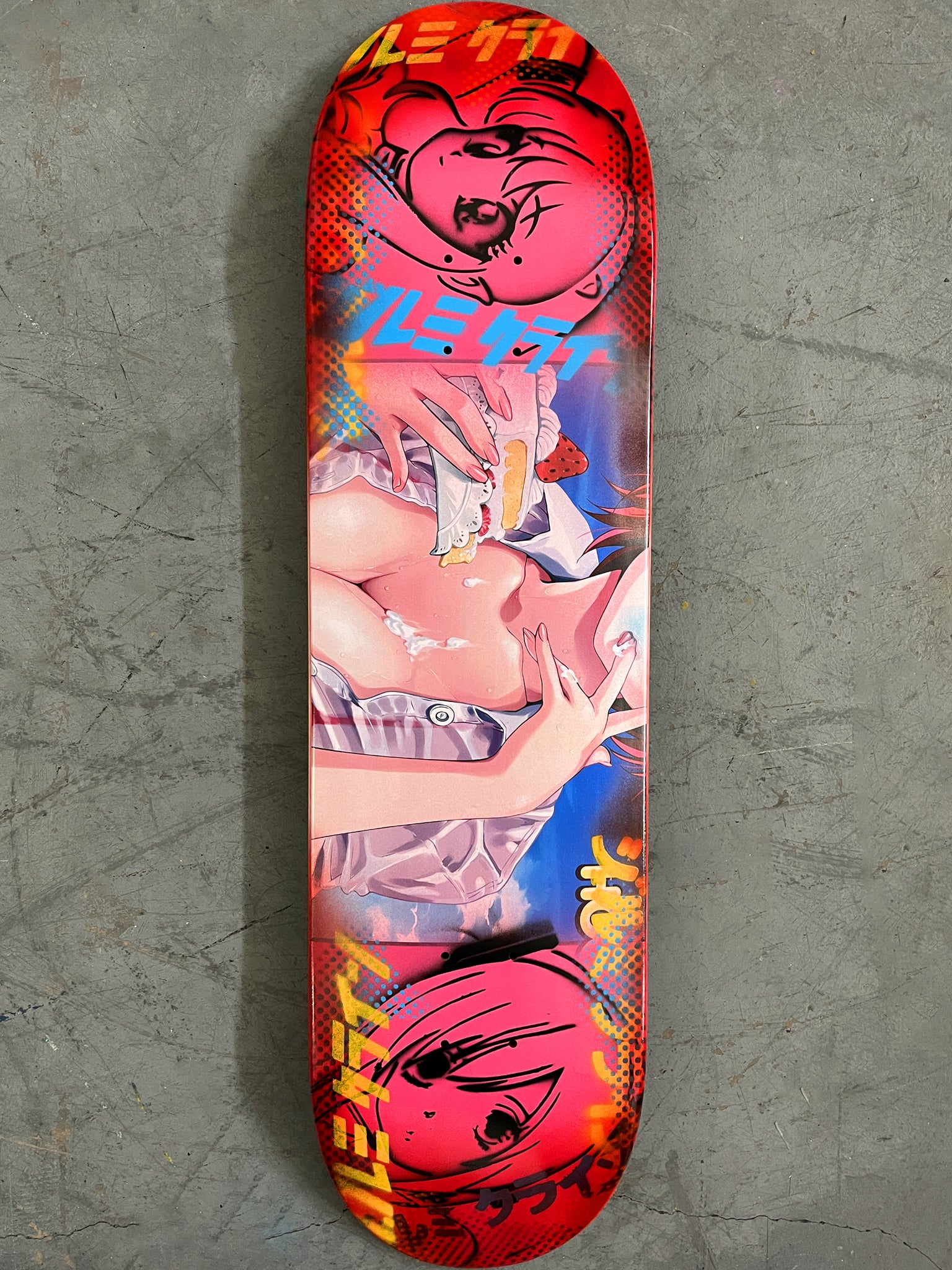 strawberry shortcake 8.5 X 32.25 PINK/RED ANODIZED MIXED PROCESS SIGNED 1 of 1, heat transfer with hand spray paint, and signed on top. 1 of 1