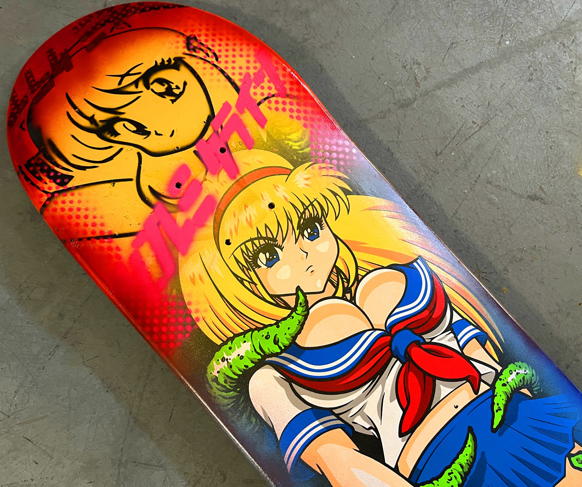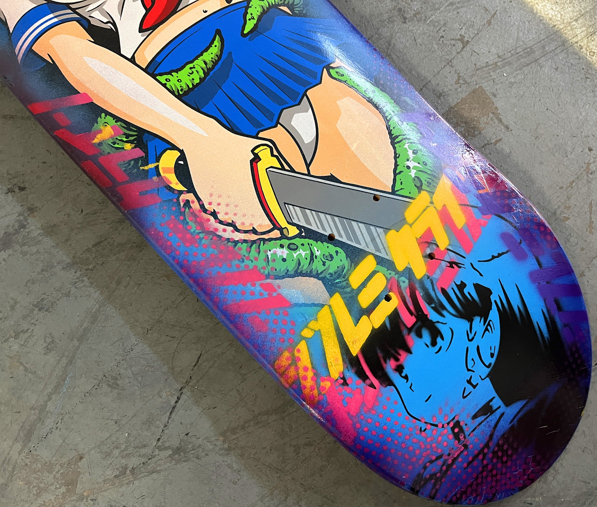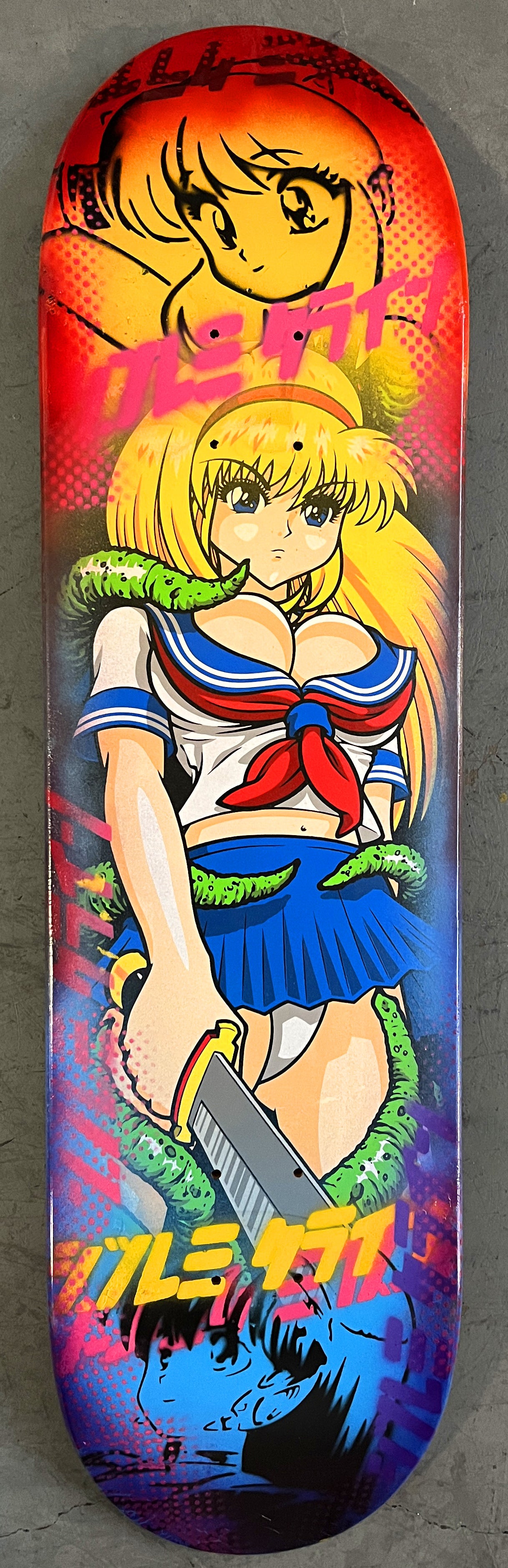 tentacle school girl 8.25 X 32.25 BLUE/YELLOW/RED ANODIZED MIXED PROCESS SIGNED 1 of 1