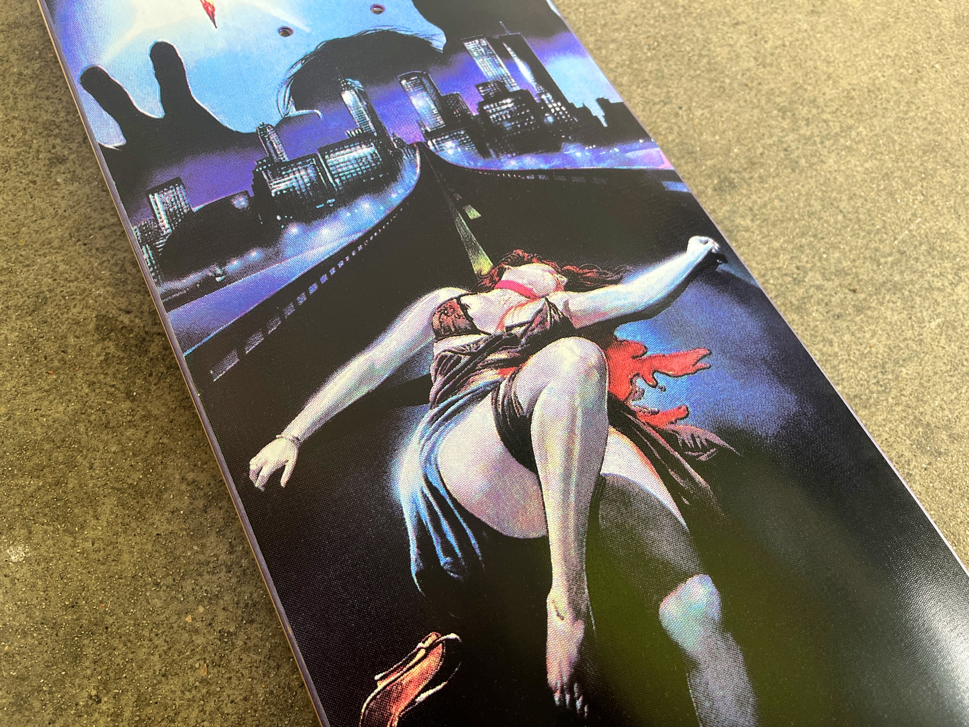 the tokyo ripper 8.5 X 32.25. full color top & bottom graphic, 4 color process screen printed by screaming squeegees.