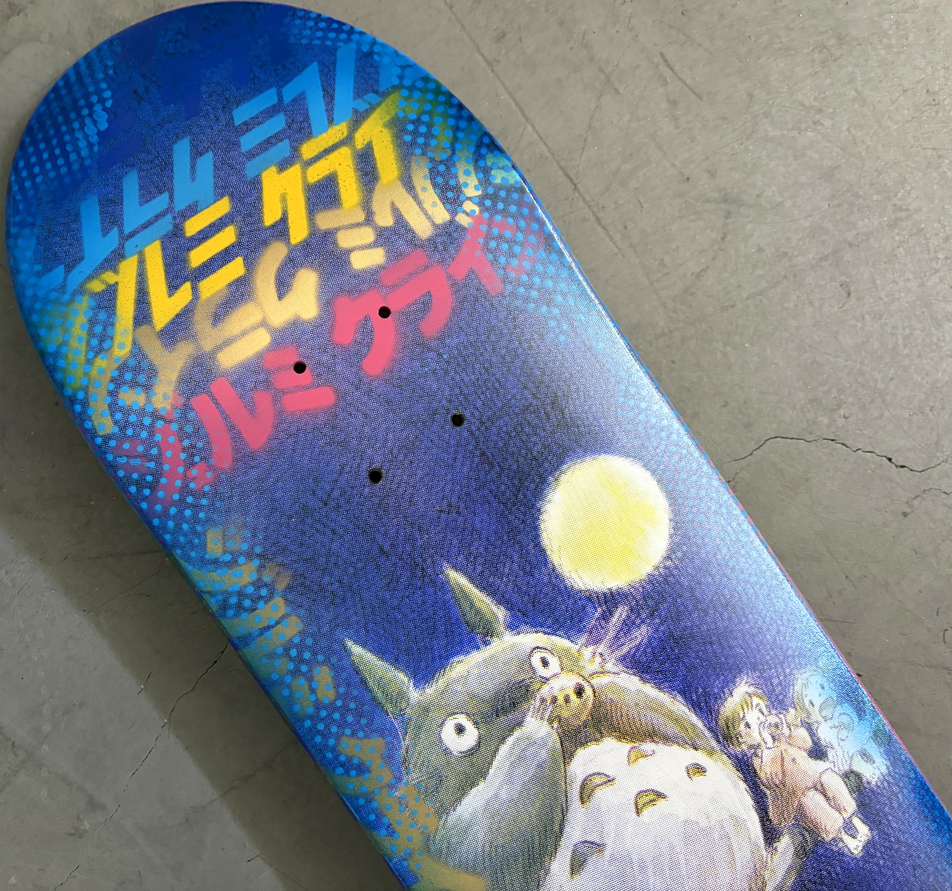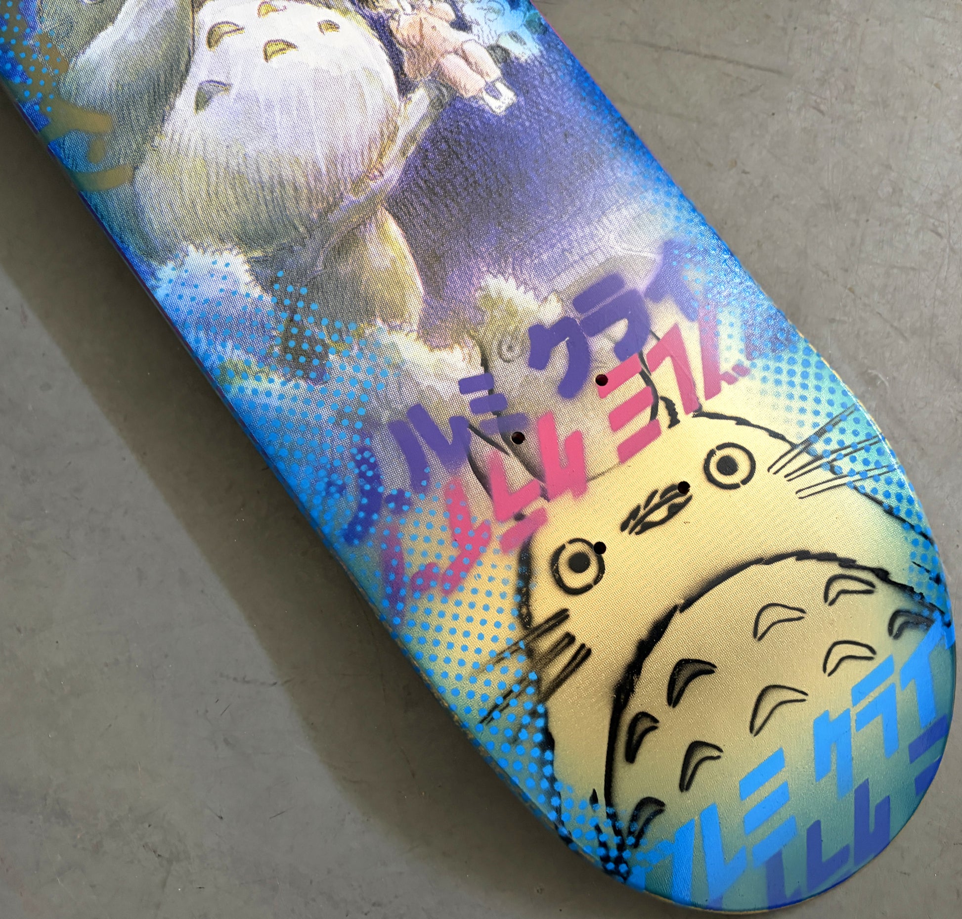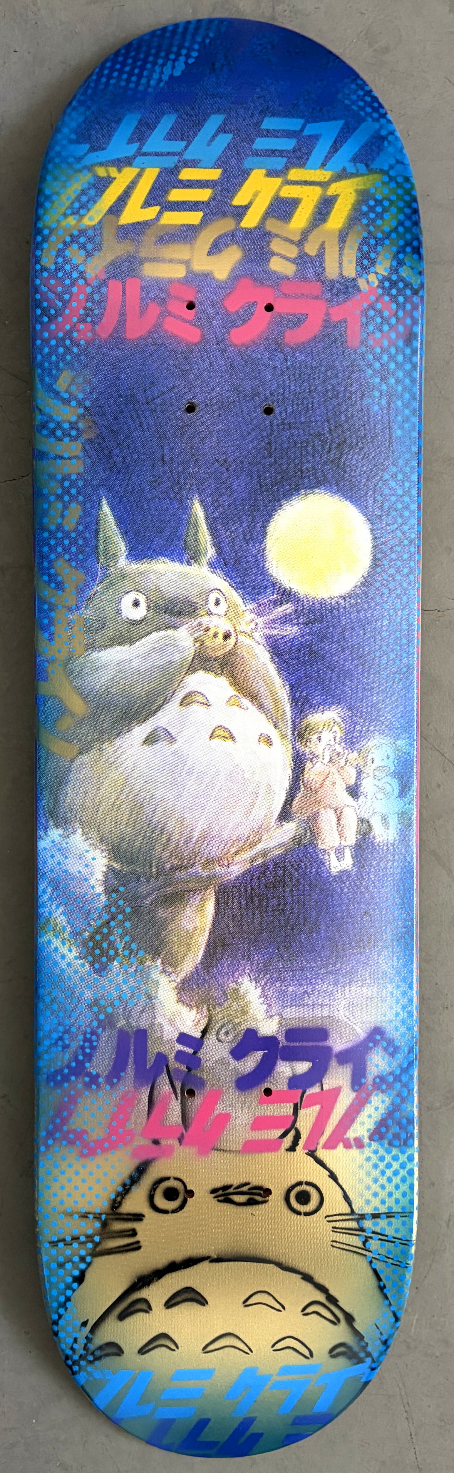 totoro special edition vol. 2 BLUE COLLAGE - 8.25 X 32.25 MIXED PROCESS SIGNED 1 of 1, hand screened with spray paint and signed on top. 1 of 1