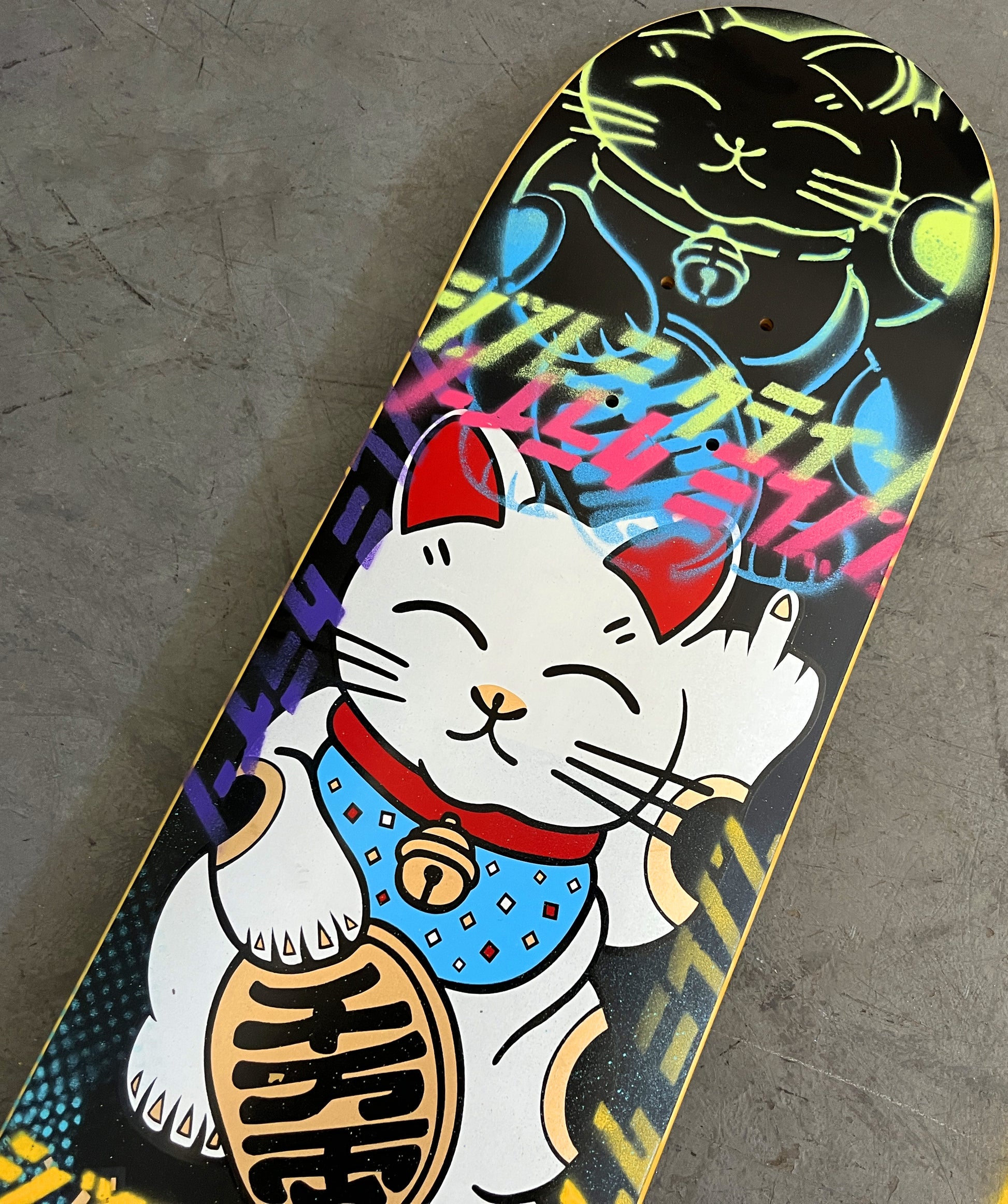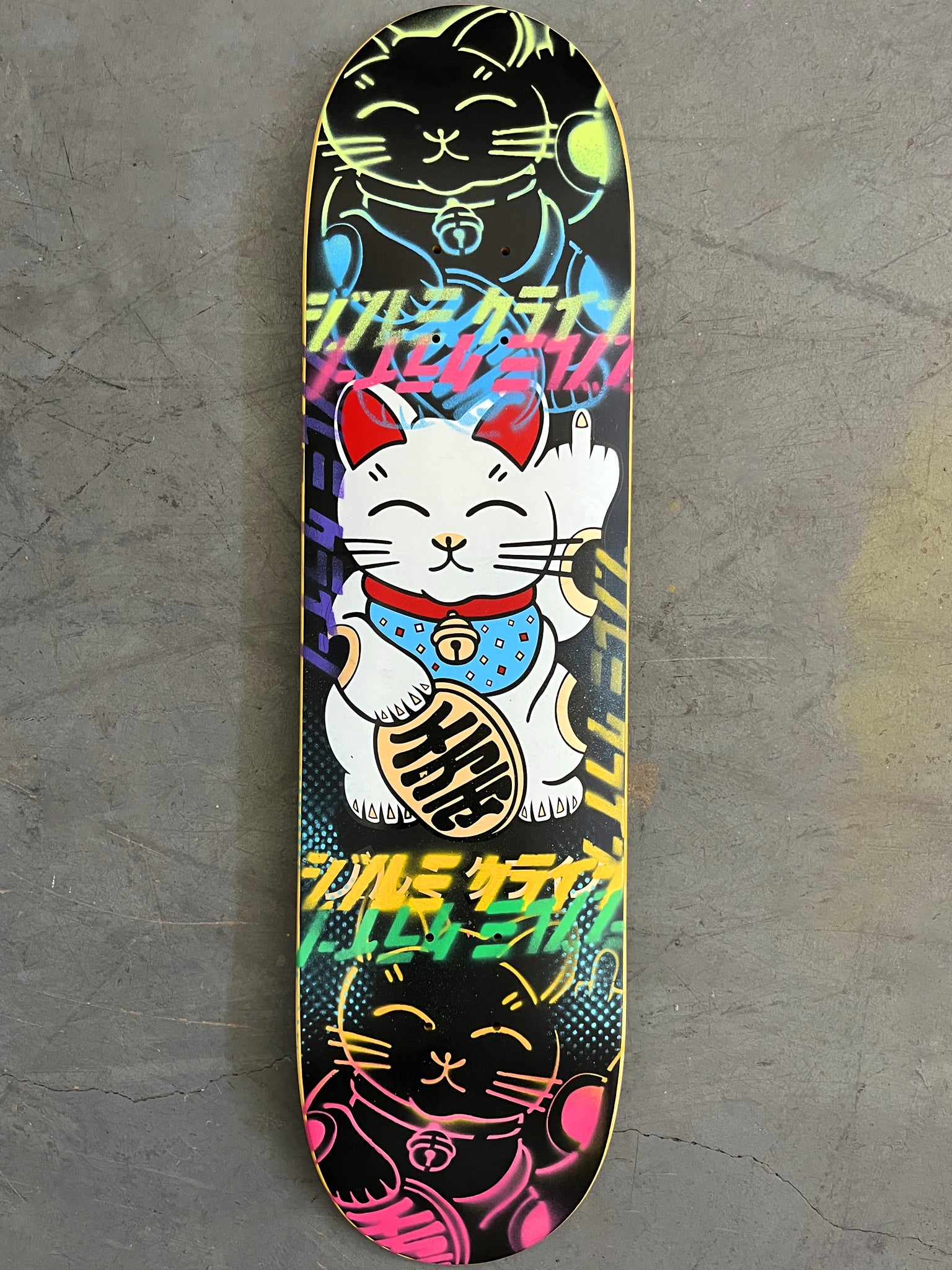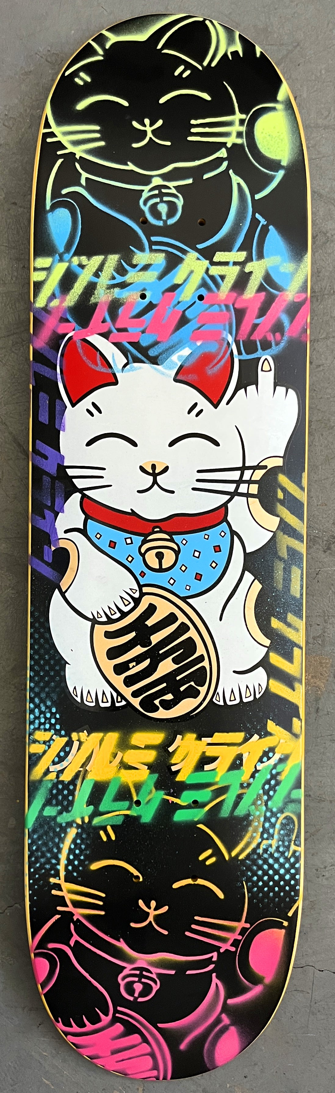 unlucky cat BLACK/YELLOW/BLUE/PURPLE/PINK 8.0 X 31.75 MIXED PROCESS 1 OF 1 SIGNED
