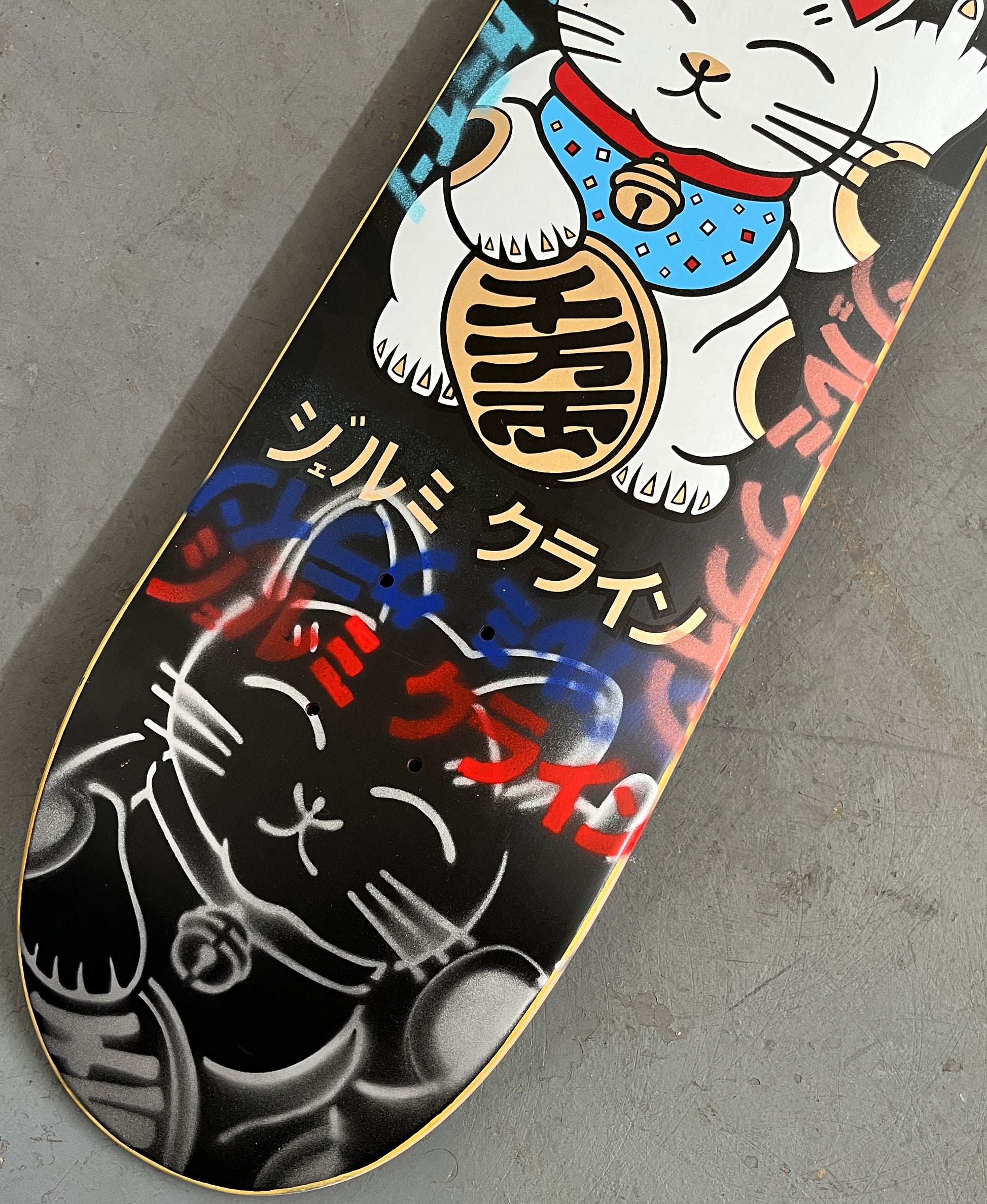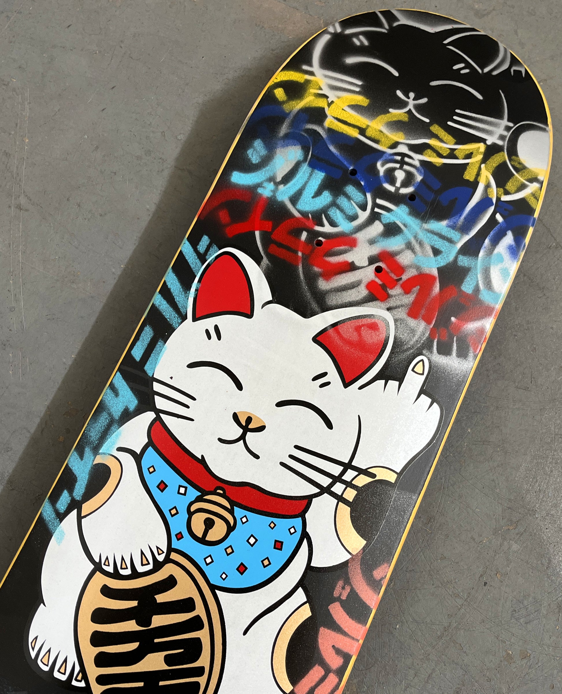 unlucky cat MATTE BLACK 8.0 X 31.75 MIXED PROCESS 1 OF 1 SIGNED, HAND SCREENED AND SPRAY PAINT
