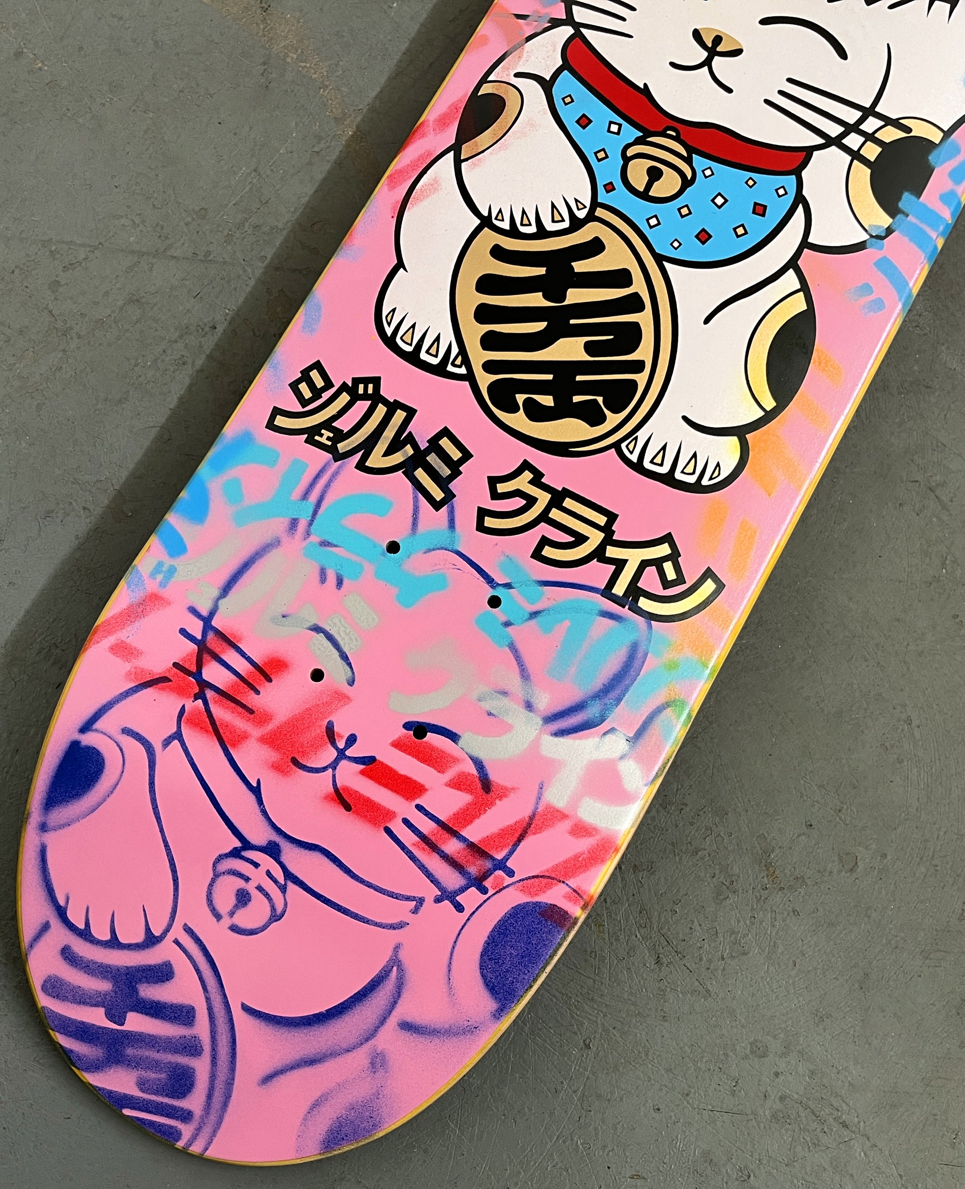 unlucky cat PINK 8.0 X 31.75 MIXED PROCESS 1 OF 1 SIGNED, HAND SCREENED AND SPRAY PAINT