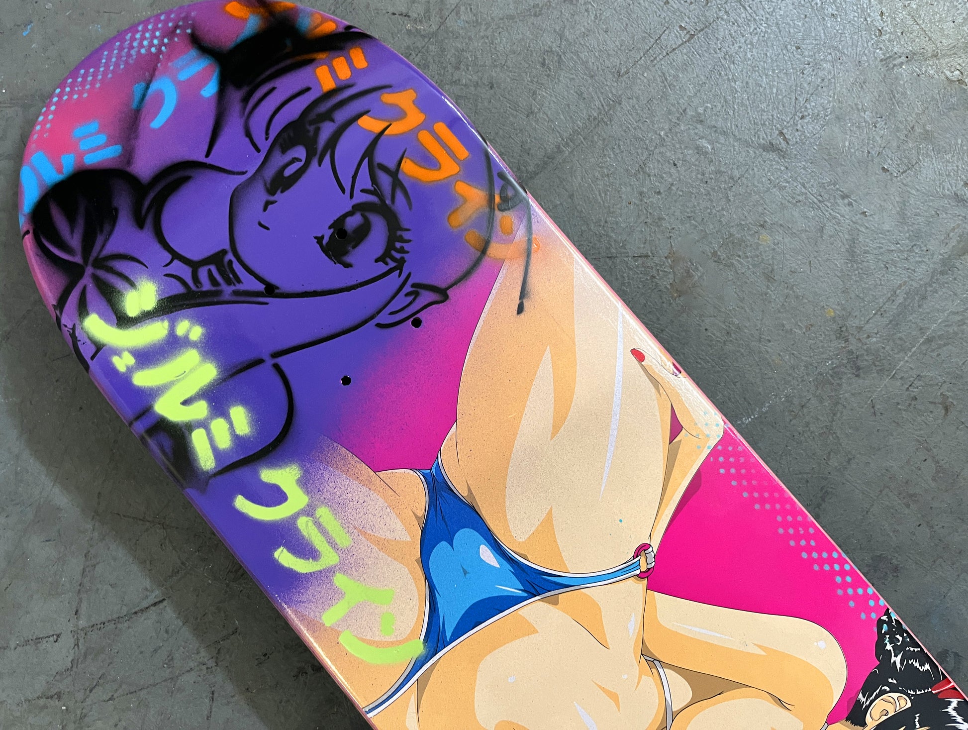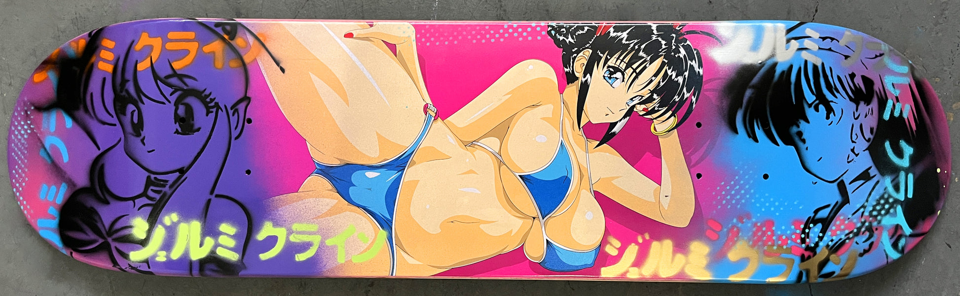 workout 8.25 X 32.25 PINK MIXED PROCESS SIGNED 1 of 1, heat transfer with hand spray paint, and signed on top. 1 of 1