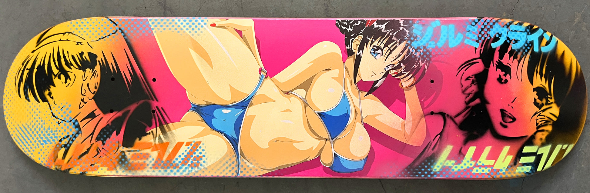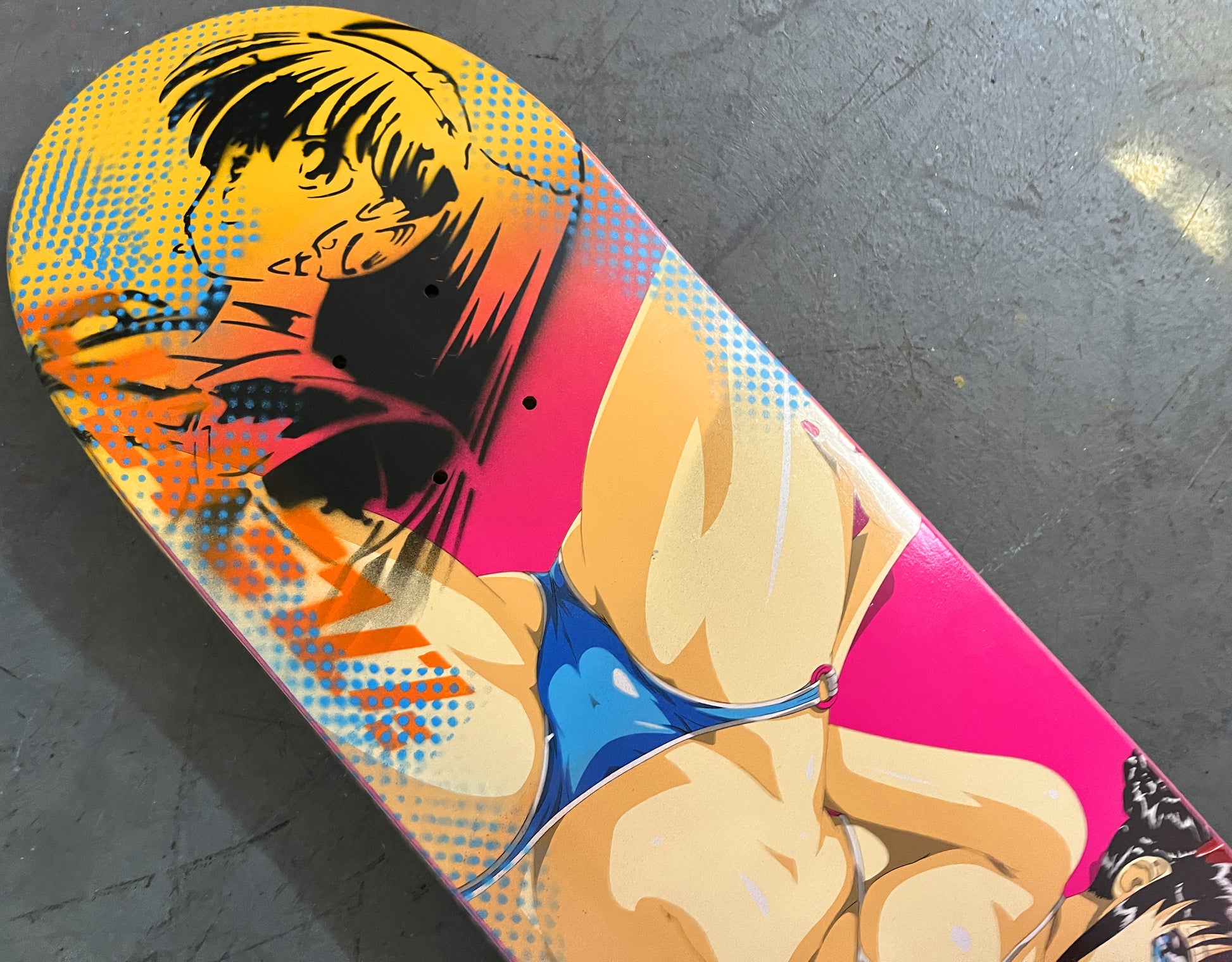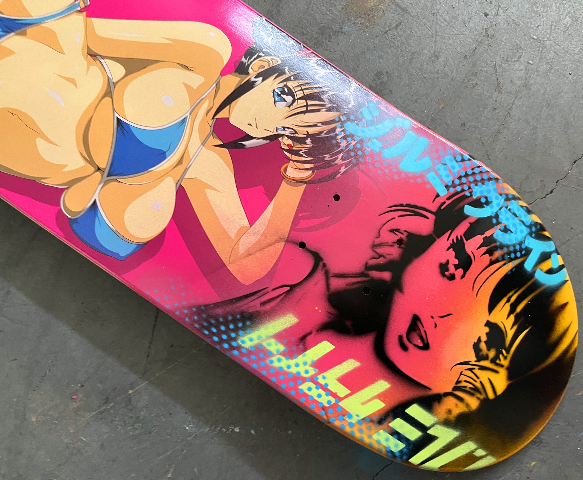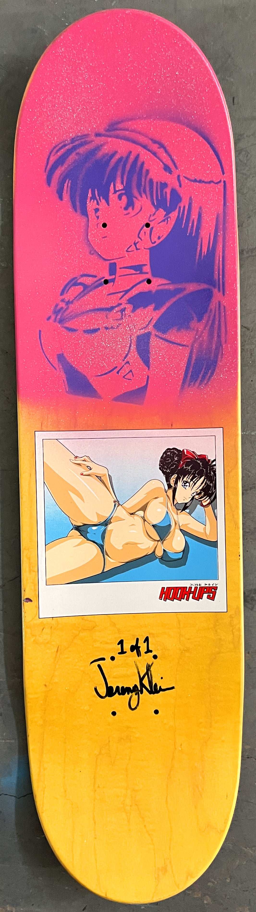 workout 8.5 X 32.25 YELLOW/RED MIXED PROCESS SIGNED 1 of 1, heat transfer with hand spray paint, and signed on top. 1 of 1