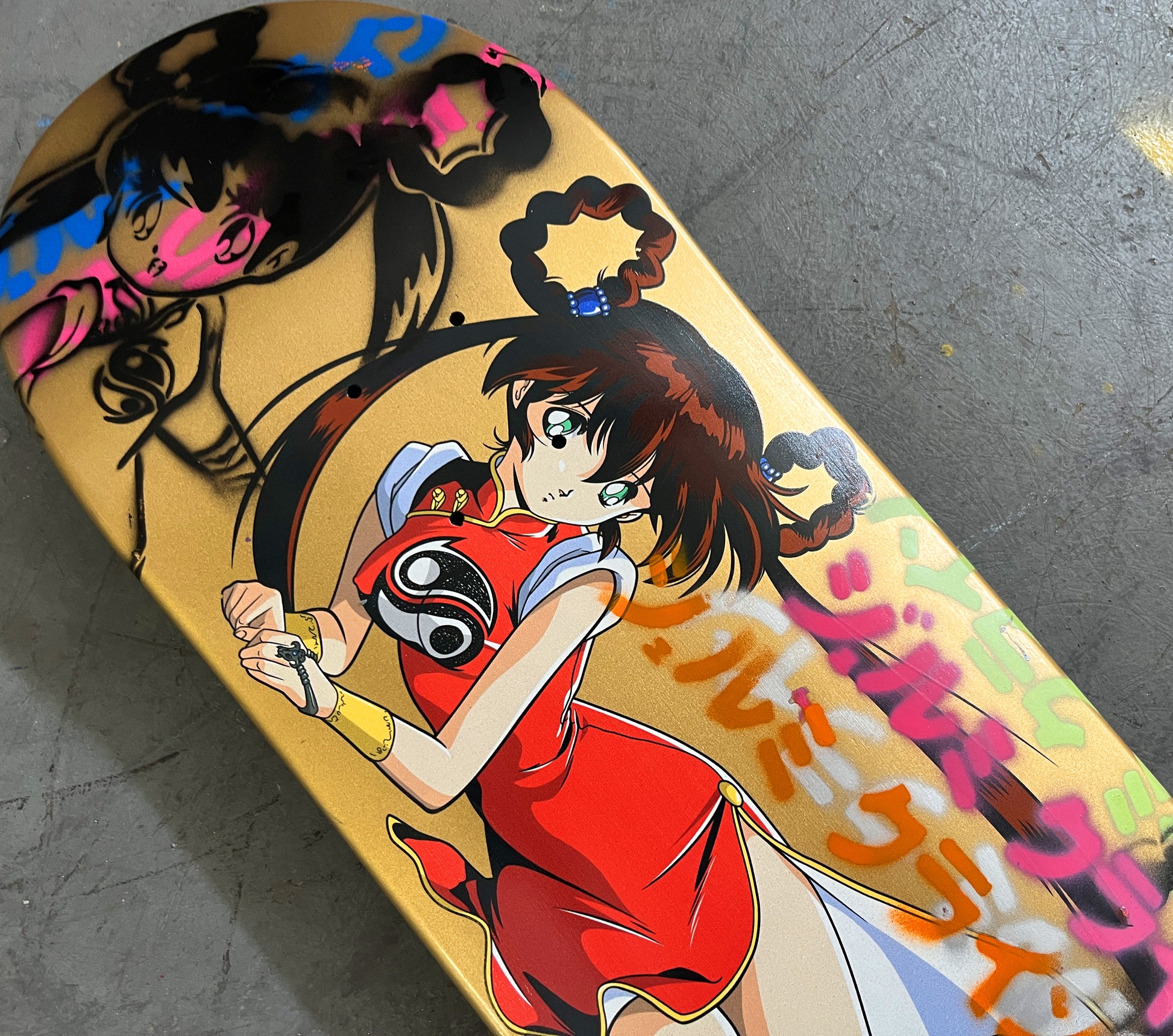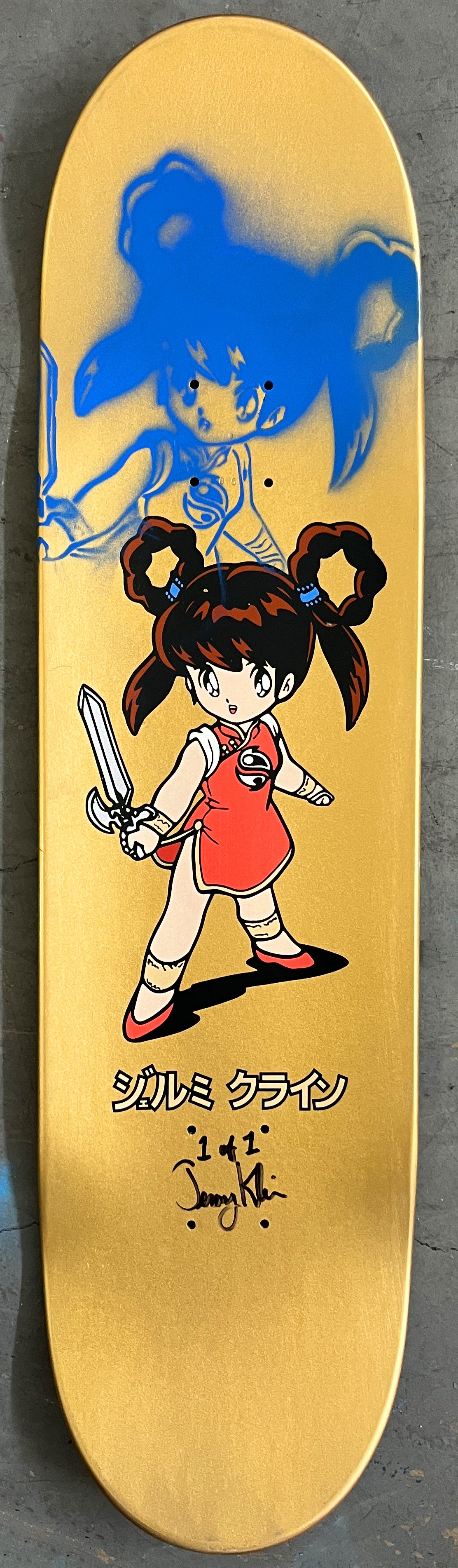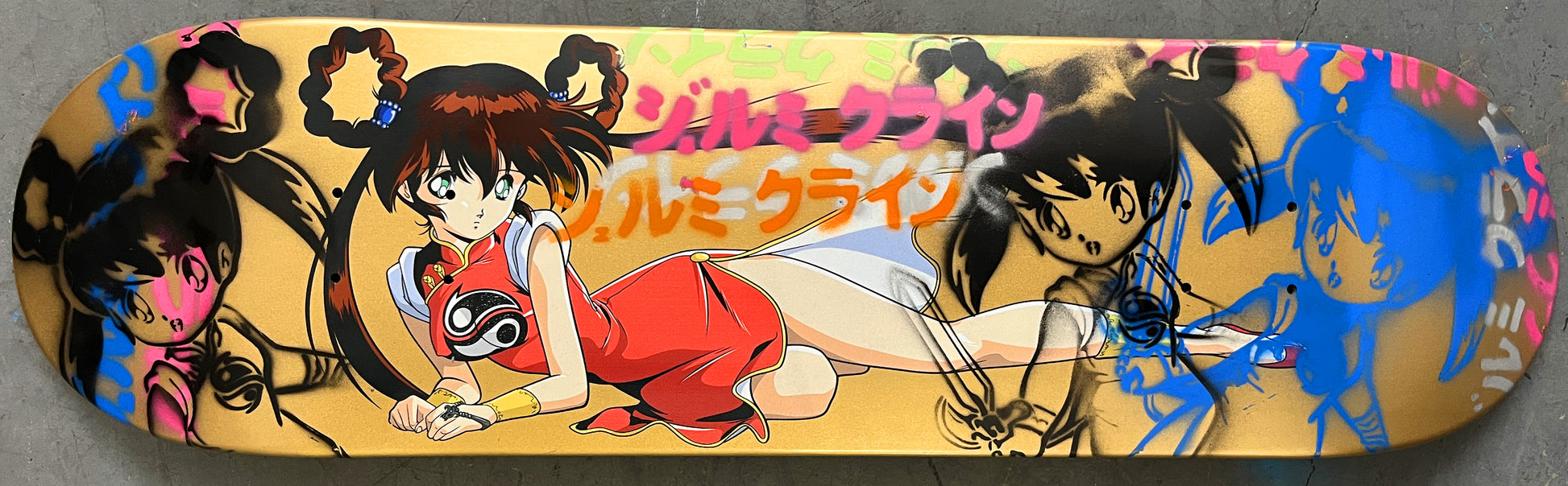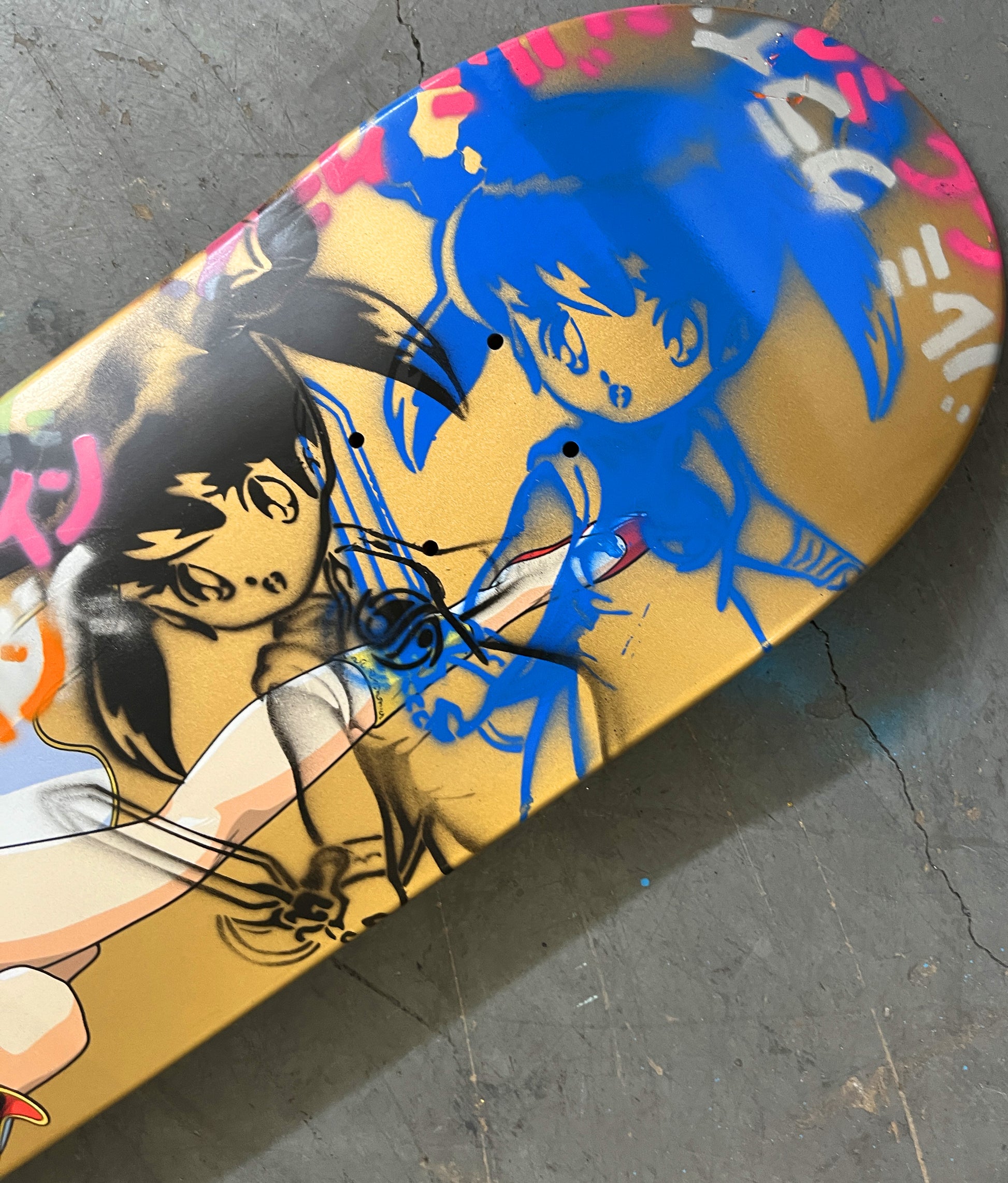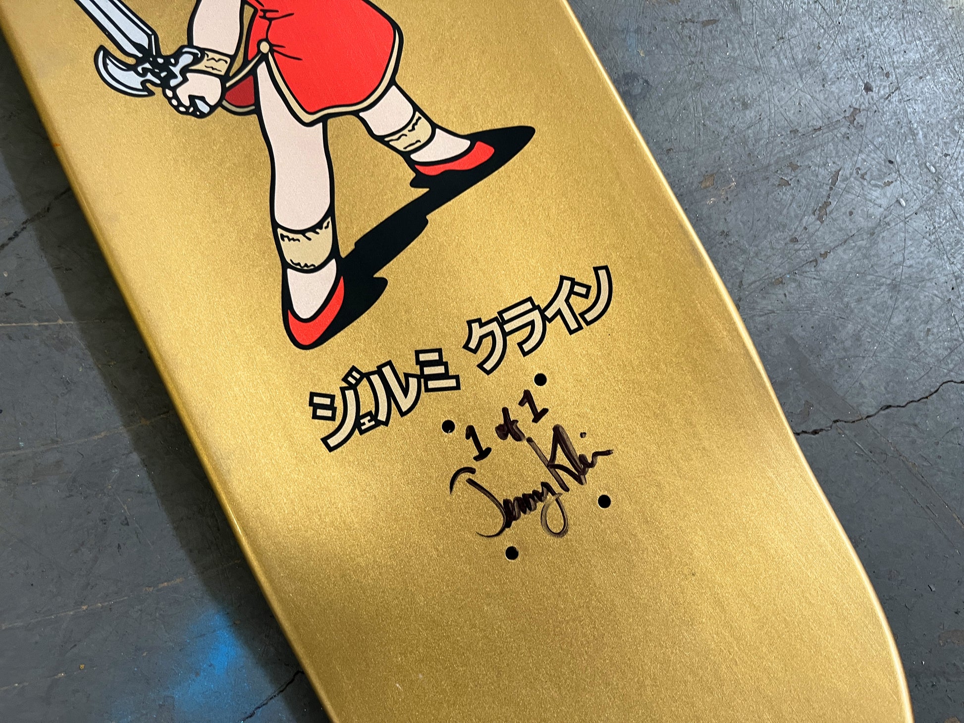 yoko 8.5 X 32.25 METALLIC GOLD MIXED PROCESS SIGNED 1 of 1, heat transfer with hand spray paint, and signed on top. 1 of 1